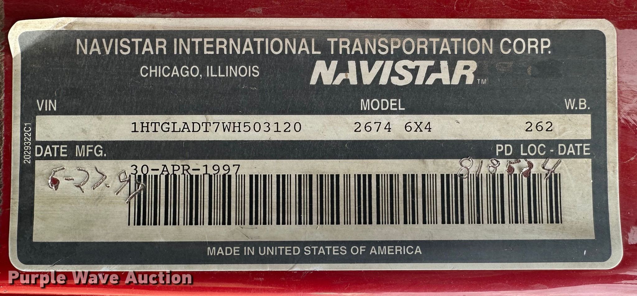 Purple Wave is selling a used Tank Truck or Water Truck in Kansas. This item is a 1998 International 2674 tank truck with the following: Miles: 241,796 on odometer, Hours: 12,140 on meter, VIN: 1HTGLADT7WH503120