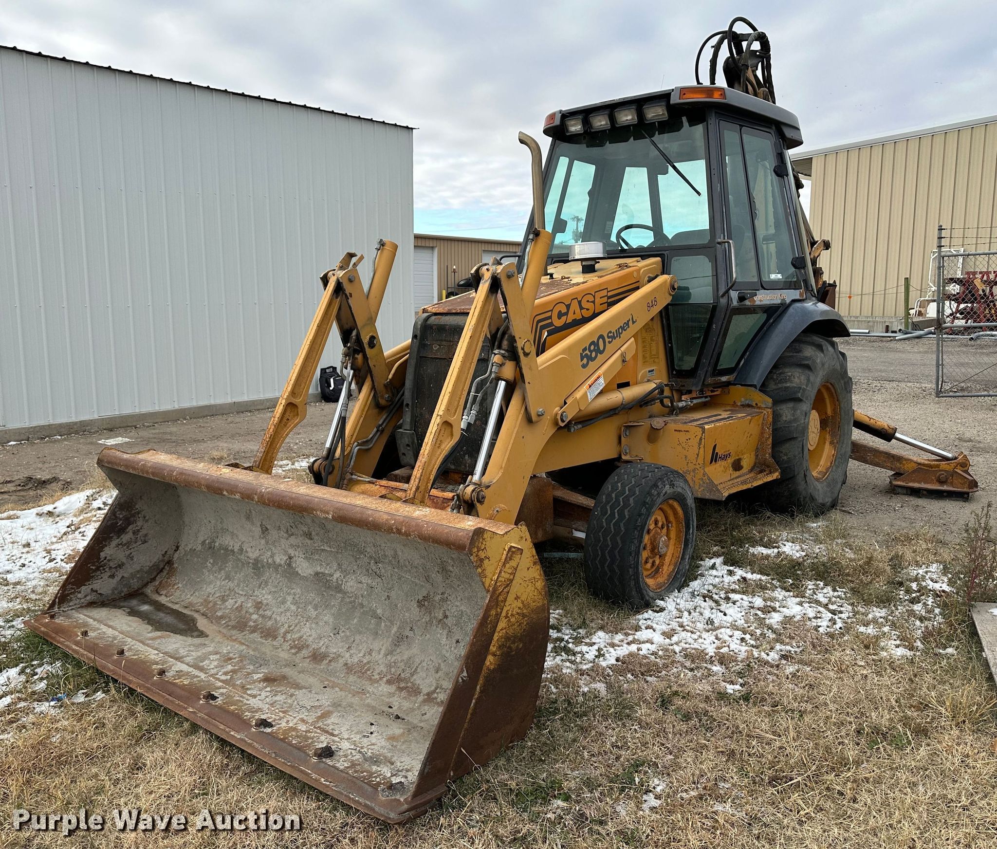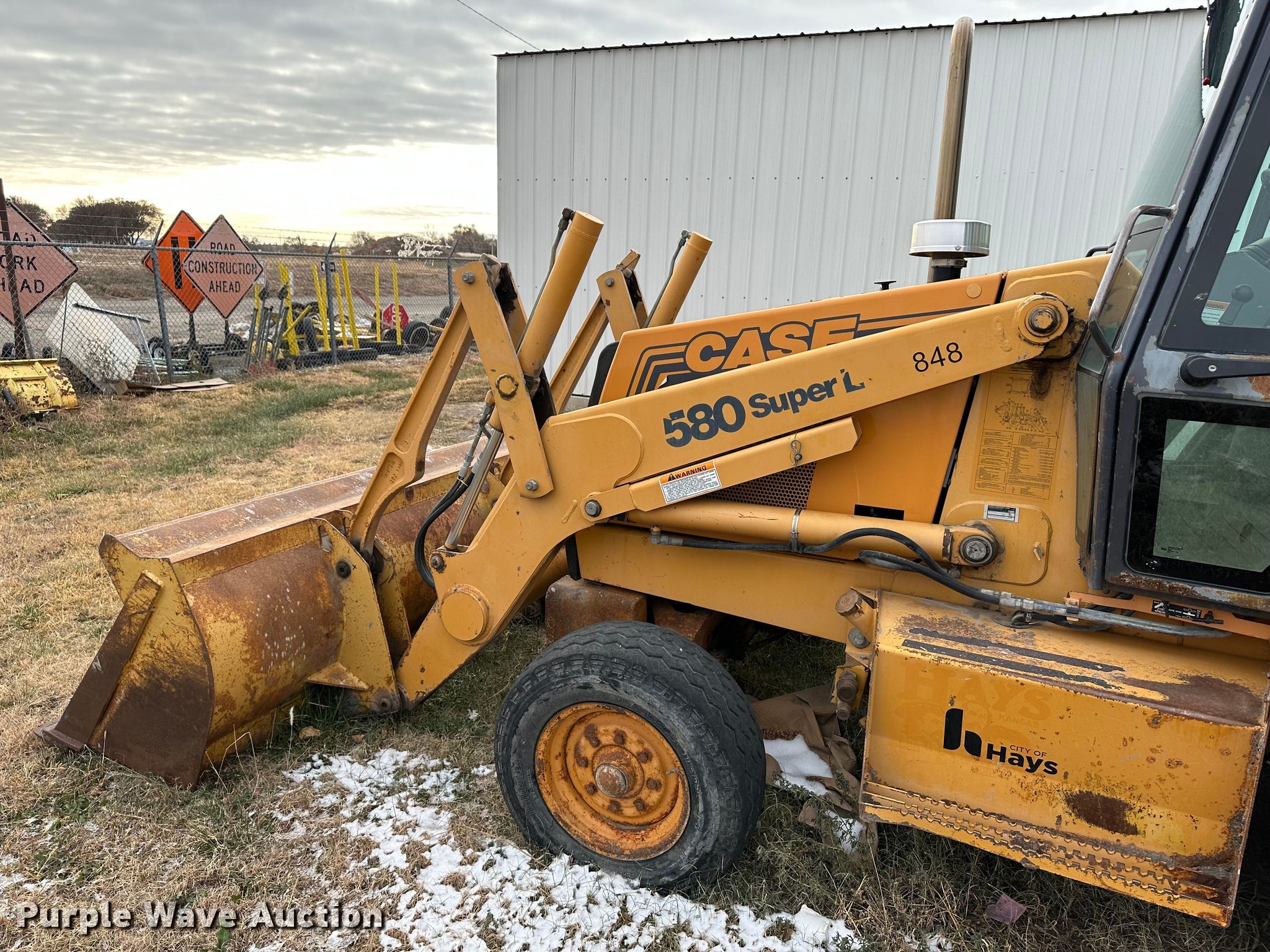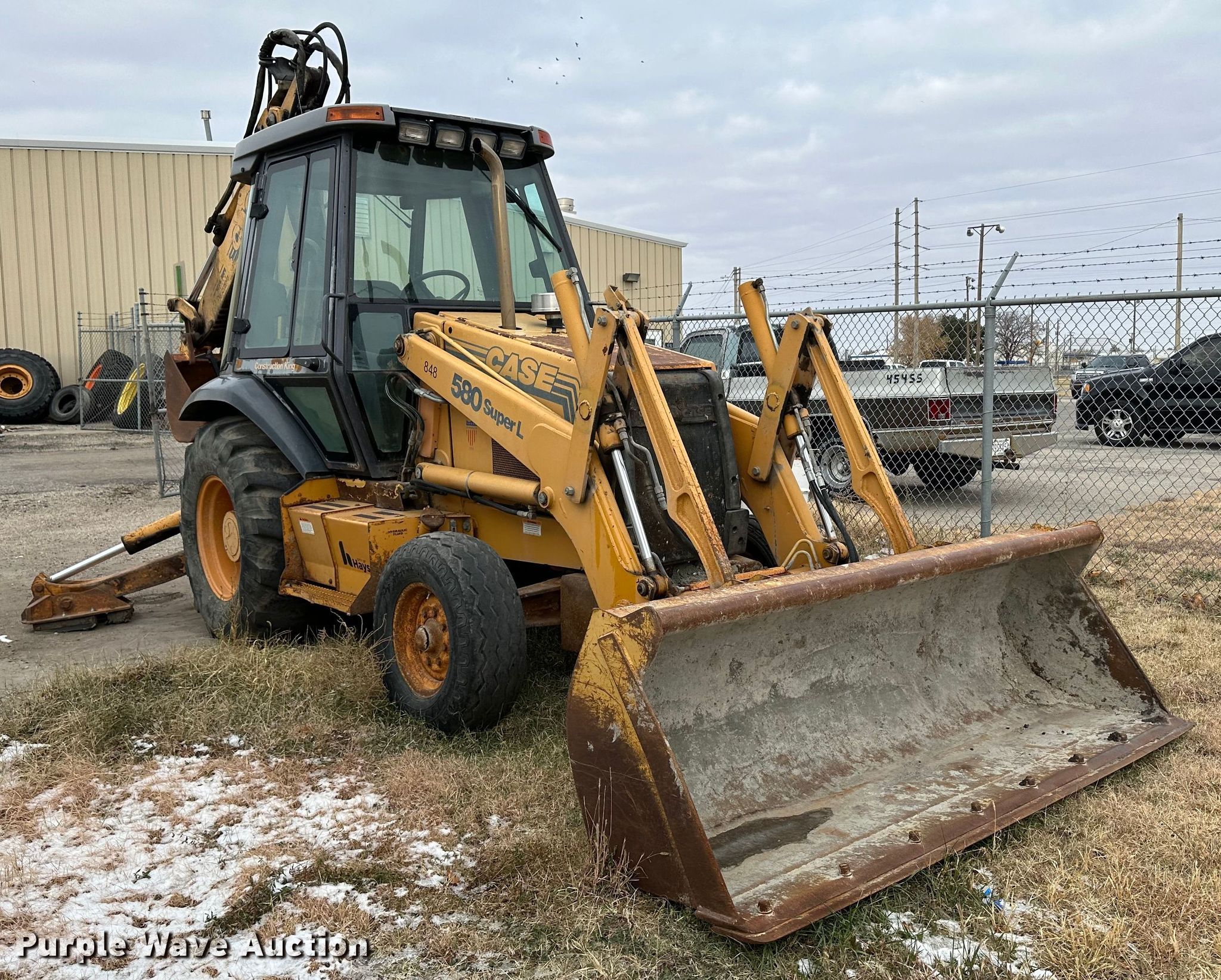 1997 Case 580 Super L backhoe. Hours: 9,712 on meter, Serial: JJG0199499. Engine Cummins, Cylinders: 4, Fuel type: Diesel. Transmission Shuttle shift, 4F - 4R. Operators station Enclosed cab, AC, Heat, Backhoe controls: Wobble stick / two stick. Features Loader Bucket Width: 92", Cutting edge: Bolt-on, Backhoe Extendable stick, Bucket Width: 23", Cutting edge: Weld-on, Teeth: 5.. Tires Front: 11L-16SL, Rear: 19.5L-24. Notes Dead battery, Transmission issues. City of Hays, KS. 1002 Vine St. Hays, KS 67601