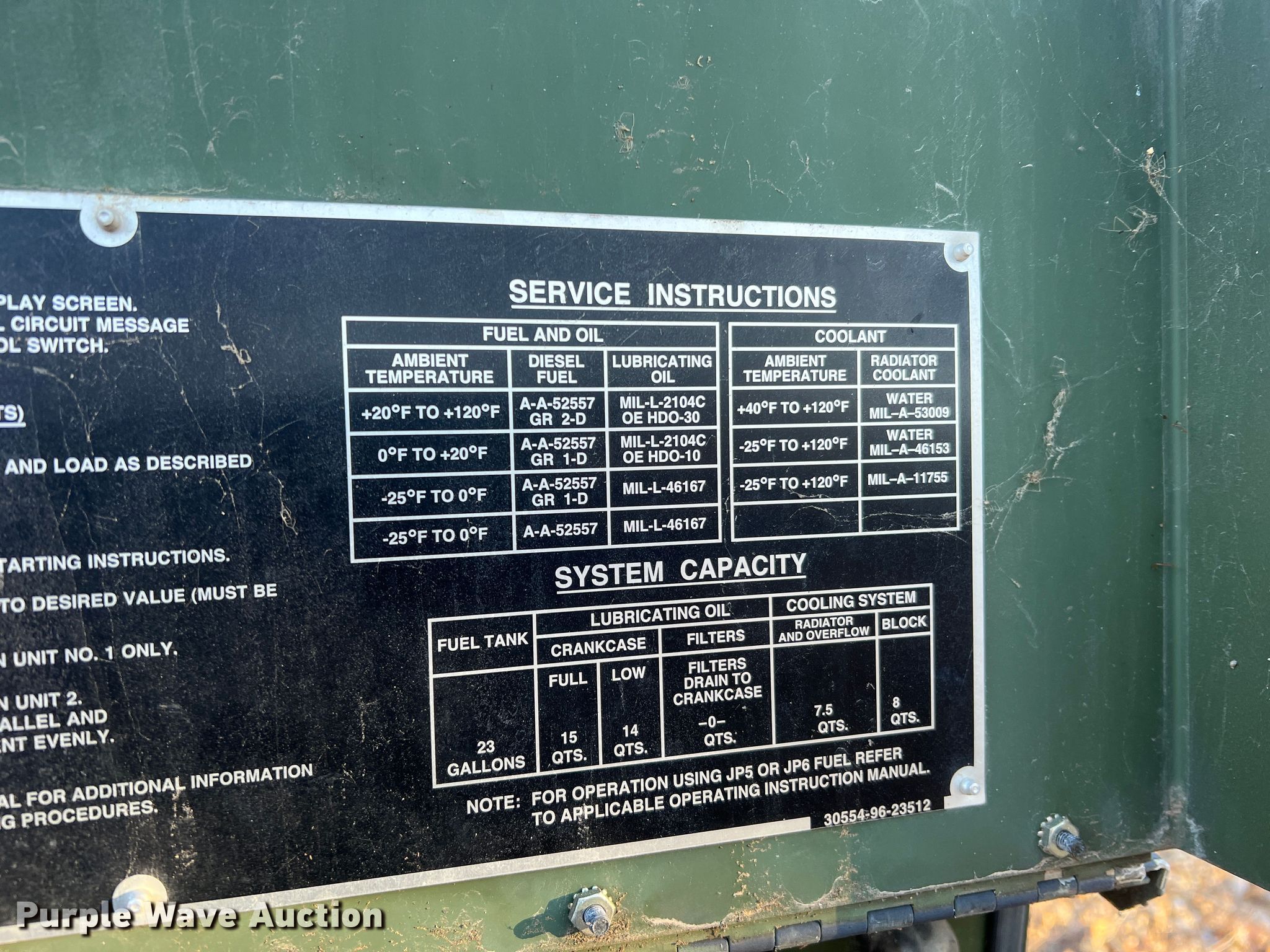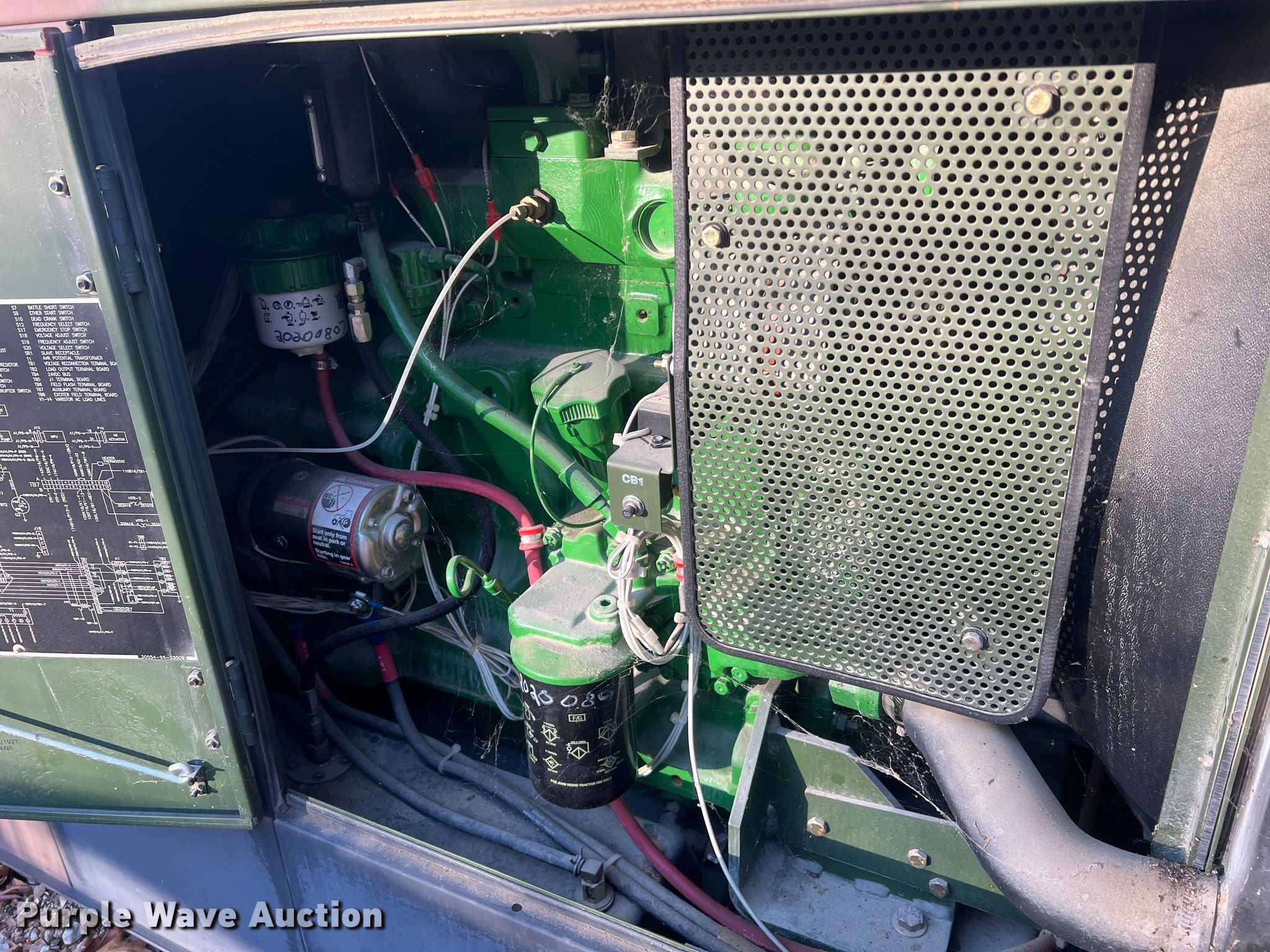 2008 Am General MEP-805B generator. Hours: 76 on meter, Serial: HX36620. Engine John Deere 4045TF151, Serial: PE4045T724221, Displacement: 4.5L, Cylinders: 4, Fuel type: Diesel, kW: 83. Features Generator Model: MEP-805B, kW: 30, Phase: Three, Electric start, Fuel tank, Skid mounted, Solar battery maintainer. Maries County Sheriff's Office. 631 Airport Drive. Vichy, MO 65580