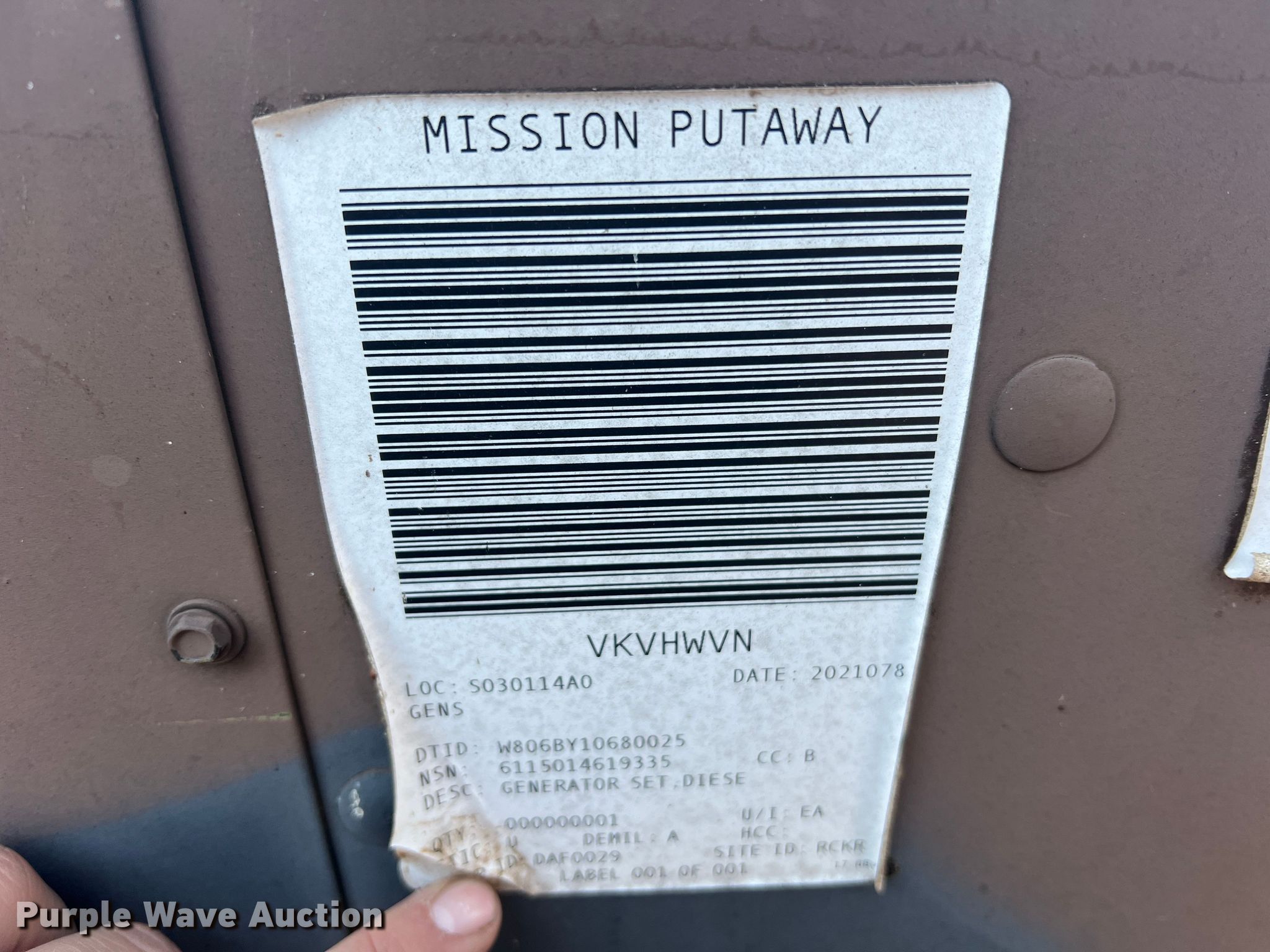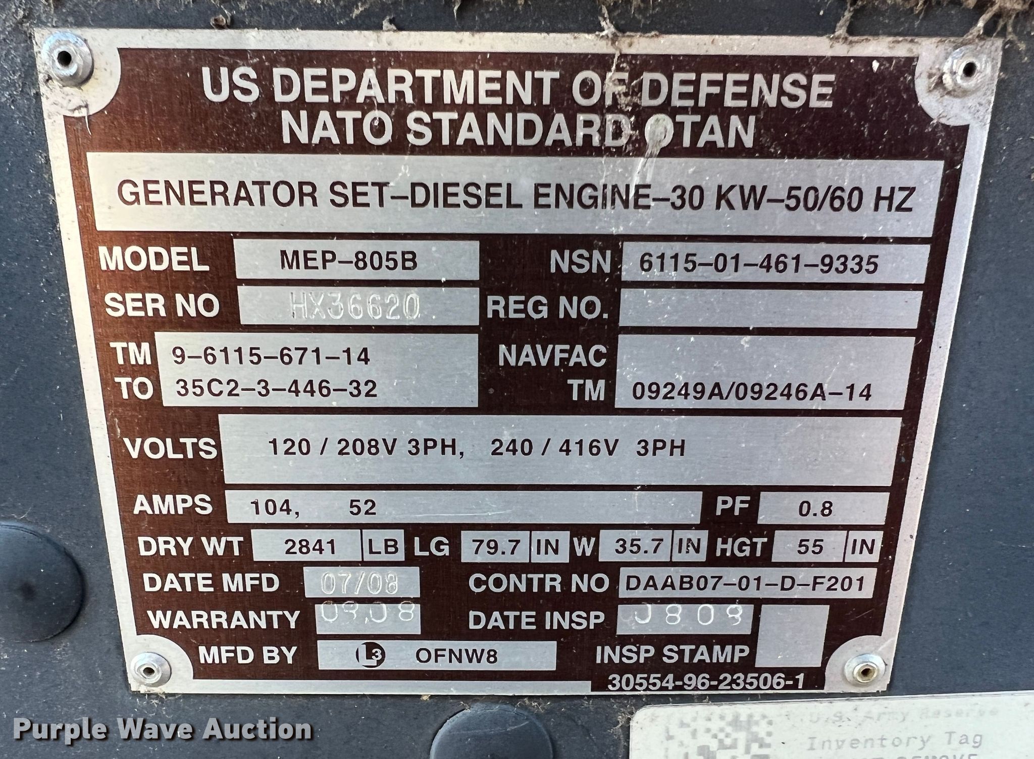 Purple Wave is selling a used Generator Set in Missouri. This item is a 2008 Am General MEP-805B generator with the following: Hours: 76 on meter, Serial: HX36620