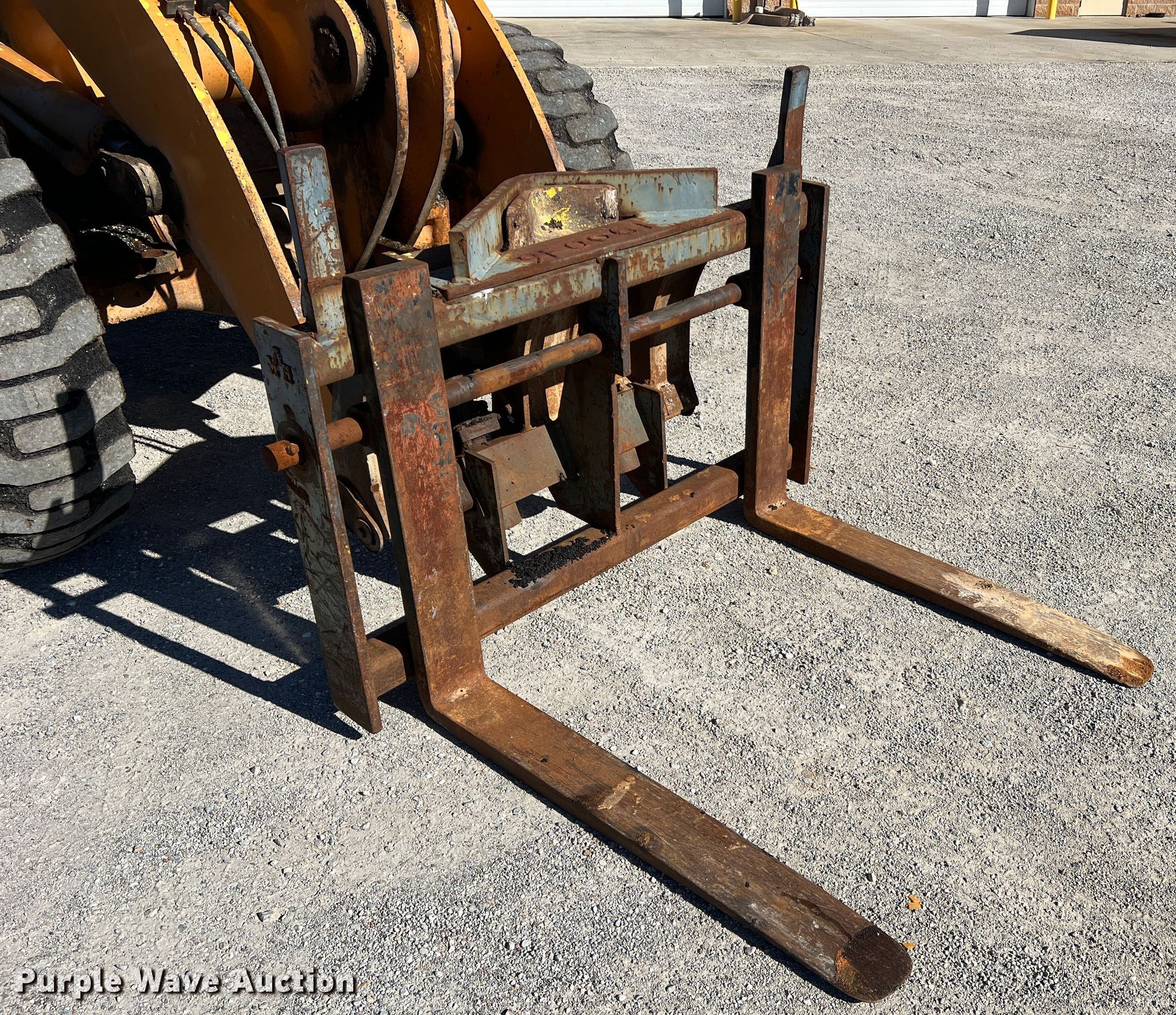2008 Case 521D wheel loader. Hours: 5,849 on meter, Serial: JEE0202029, Unit #: G9372. Engine Case, Cylinders: 4, Fuel type: Diesel. Transmission Powershift, 4F - 3R. Operators station EROPS, Heat, Bucket controls: Joystick. Features Quick coupler: Hydraulic, Bucket Width: 95", Cutting edge: Bolt-on, Forks Length: 46". Tires Size: 17.5-25. Missouri Department of Transportation (MODOT). 3956 E Main St. Willow Springs, MO 65793