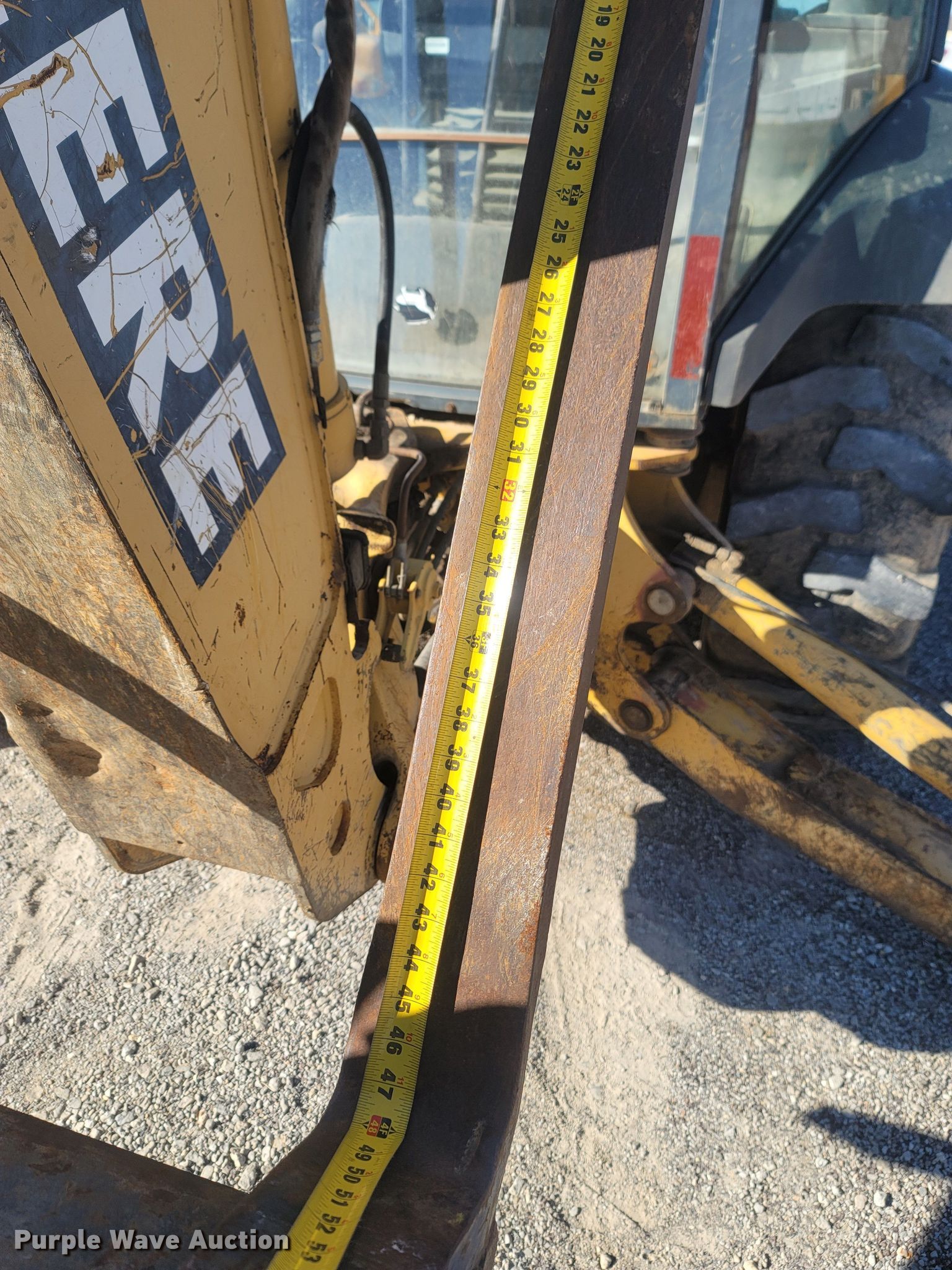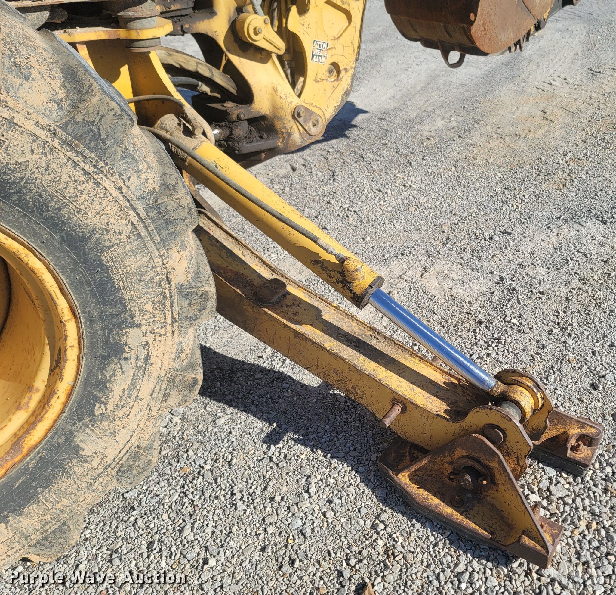 2002 John Deere 310SG backhoe. Hours: 5,954 on meter, Serial: T0310SG905248, Unit #: G8802. Engine John Deere, Cylinders: 4, Fuel type: Diesel. Transmission Shuttle shift, 4F - 4R. Chassis Four wheel drive, Differential lock. Operators station EROPS, AC, Heat, Backhoe controls: Wobble stick / two stick. Features Loader Quick coupler: Hydraulic, Bucket John Deere AT308966, Width: 92", Cutting edge: Bolt-on, Forks Length: 48", Backhoe Quick coupler: Manual, Thumb: Manual, Bucket Width: 23", Cutting edge: Weld-on, Teeth: 5.. Tires Front: 12.5-80-18, Rear: 19.5L-24. Notes Rear tire leak, Outriggers leak, Possible backhoe coupler issue, will not release unless curled in. Missouri Department of Transportation (MODOT). 3956 E Main St. Willow Springs, MO 65793
