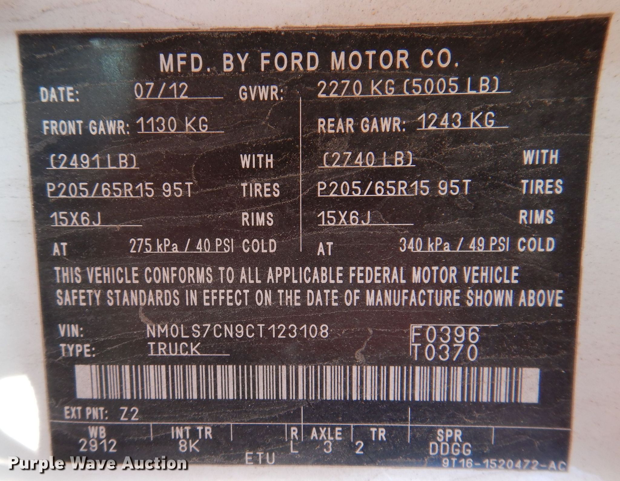 - VIN: NM0LS7CN9CT123108