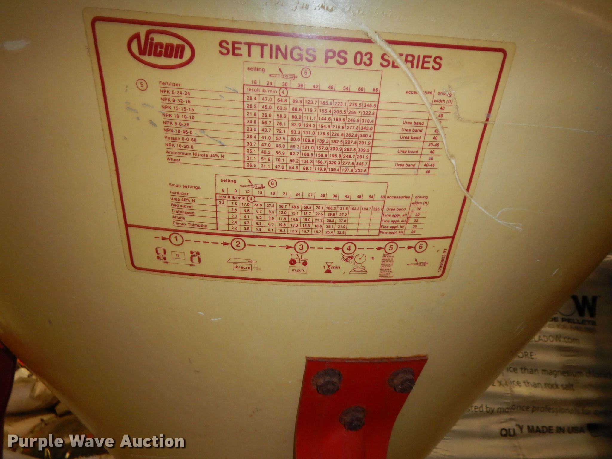 Purple Wave is selling a used Applicator Attach. in Kansas. This item is a Vicon PS03 spreader with the following: 540 PTO, Two point hitch, Cart not included