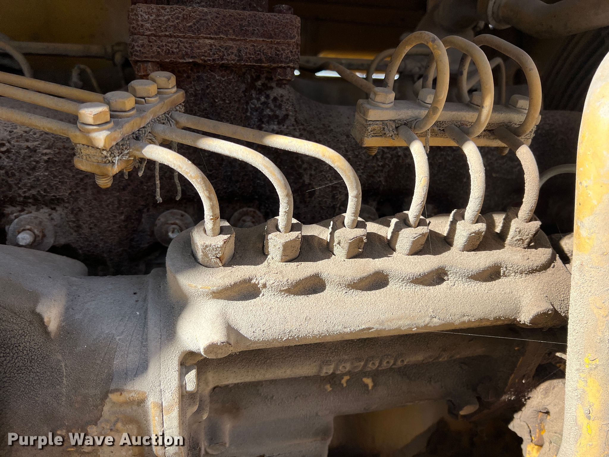 1970 Caterpillar 120 rigid frame motor grader. Hours: Unknown, Serial: 10R1025. Engine Cylinders: 6, Fuel type: Diesel. Transmission Powershift, 6F - 2R. Operators station Enclosed cab, Hydraulic control valves: 6. Features Moldboard total length: 12' 0". Tires Size: 13.00-24TG. Notes Dead battery, Unknown operating condition. City of Skiatook. 200 North Haynie Avenue. Skiatook, OK 74070