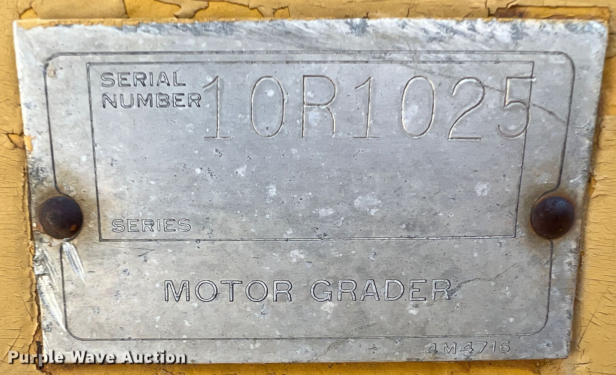 Purple Wave is selling a used Motor Grader in Oklahoma. This item is a 1970 Caterpillar 120 rigid frame motor grader with the following: Hours: Unknown, Serial: 10R1025