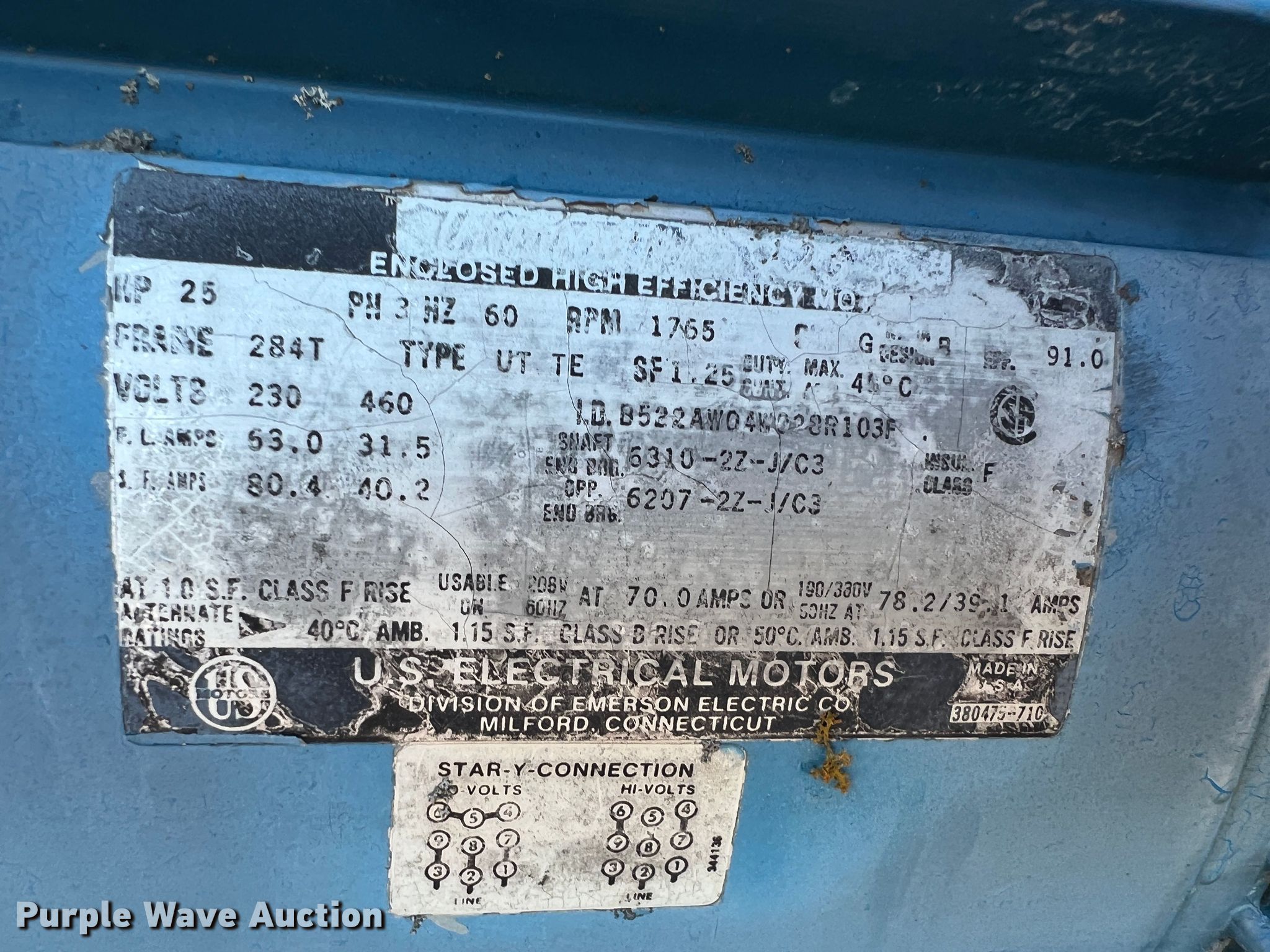 Purple Wave is selling a used Pump in Oklahoma. This item is a Crown P04LAVB411 pump with the following: Three phase, 460V, 25HP, Serial: 472326-0194