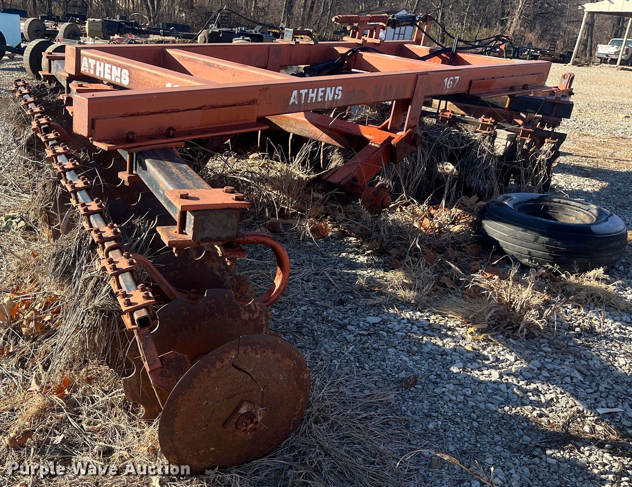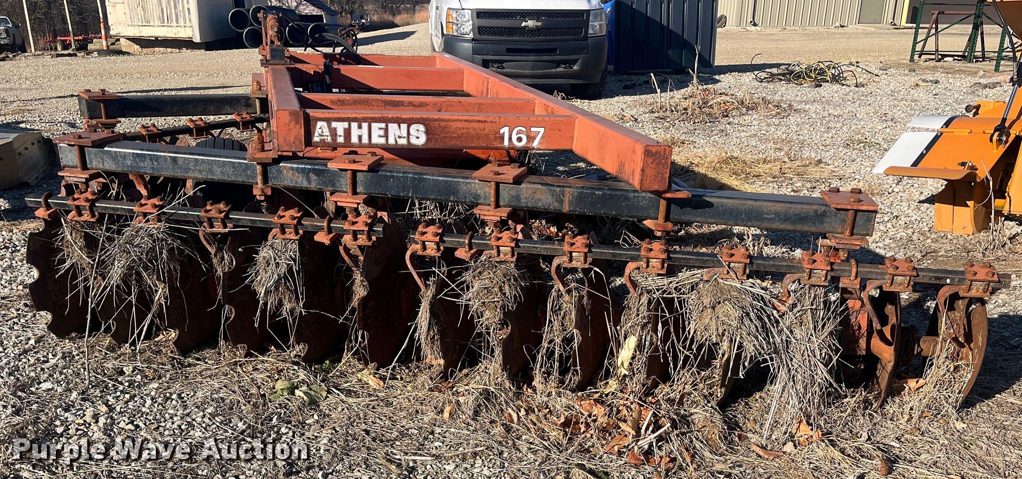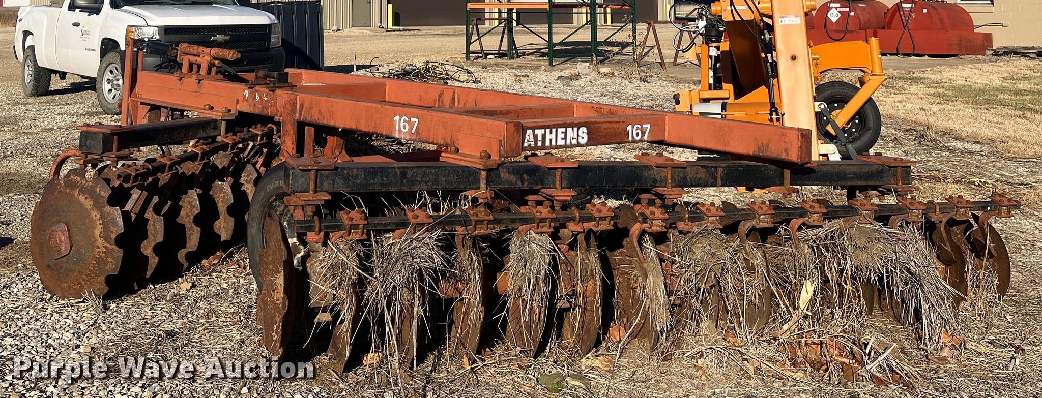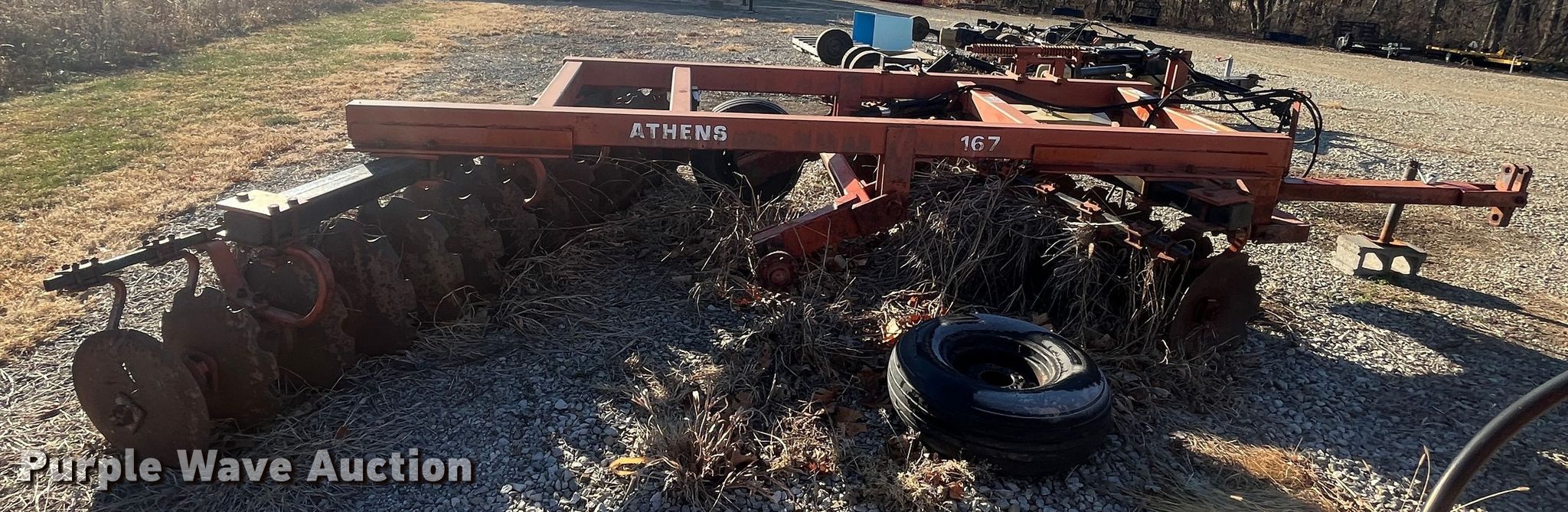 Purple Wave is selling a used Disk in Kansas. This item is a Athens 167 off-set disk with the following: Overall width: 11' 8"