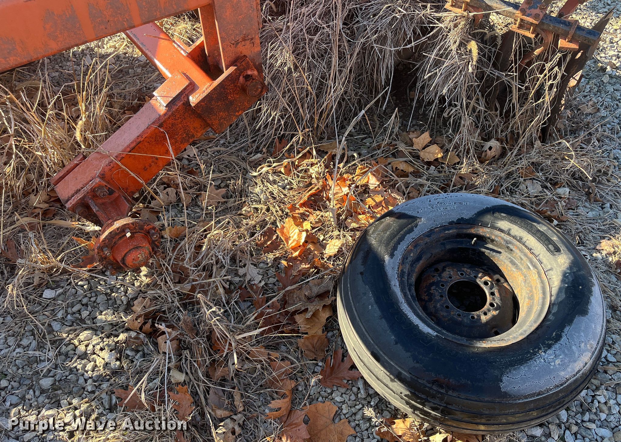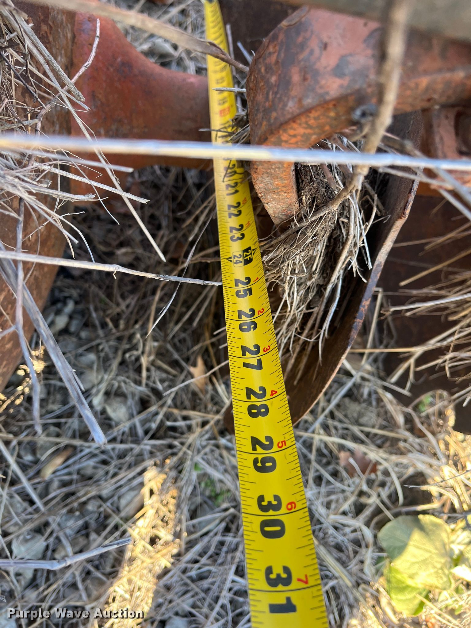 Athens 167 off-set disk. Overall width: 11' 8". Features Front blades Diameter: 24", Spacing: 10.5", Rear blades Diameter: 24", Spacing: 10.5", Disk scrapers, Operation Hydraulic lift. Tires Tire size: 11L-15. Kansas Department of Wildlife and Parks. 206 North 1600 Road. Lecompton, KS 66050