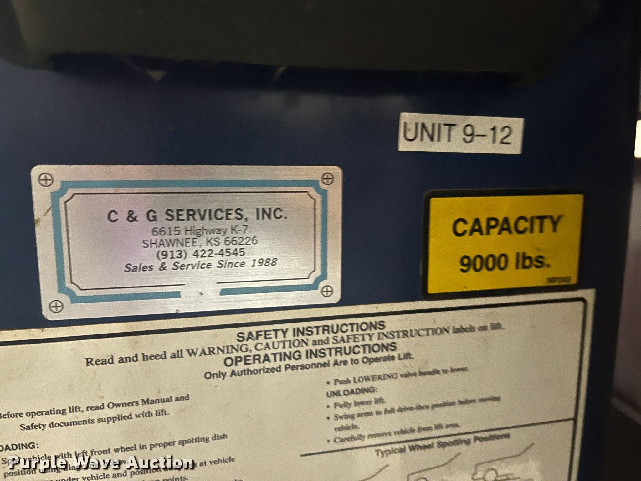 Purple Wave is selling a used Tools in Kansas. This item is a Rotary lift SPOA9A302 automotive lift with the following: 9,000 lb capacity, 2 HP, Single phase, Serial: OPC01B0079
