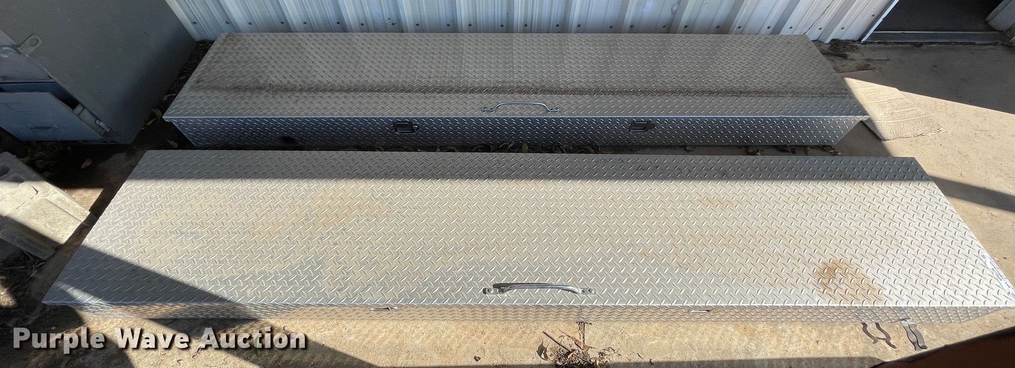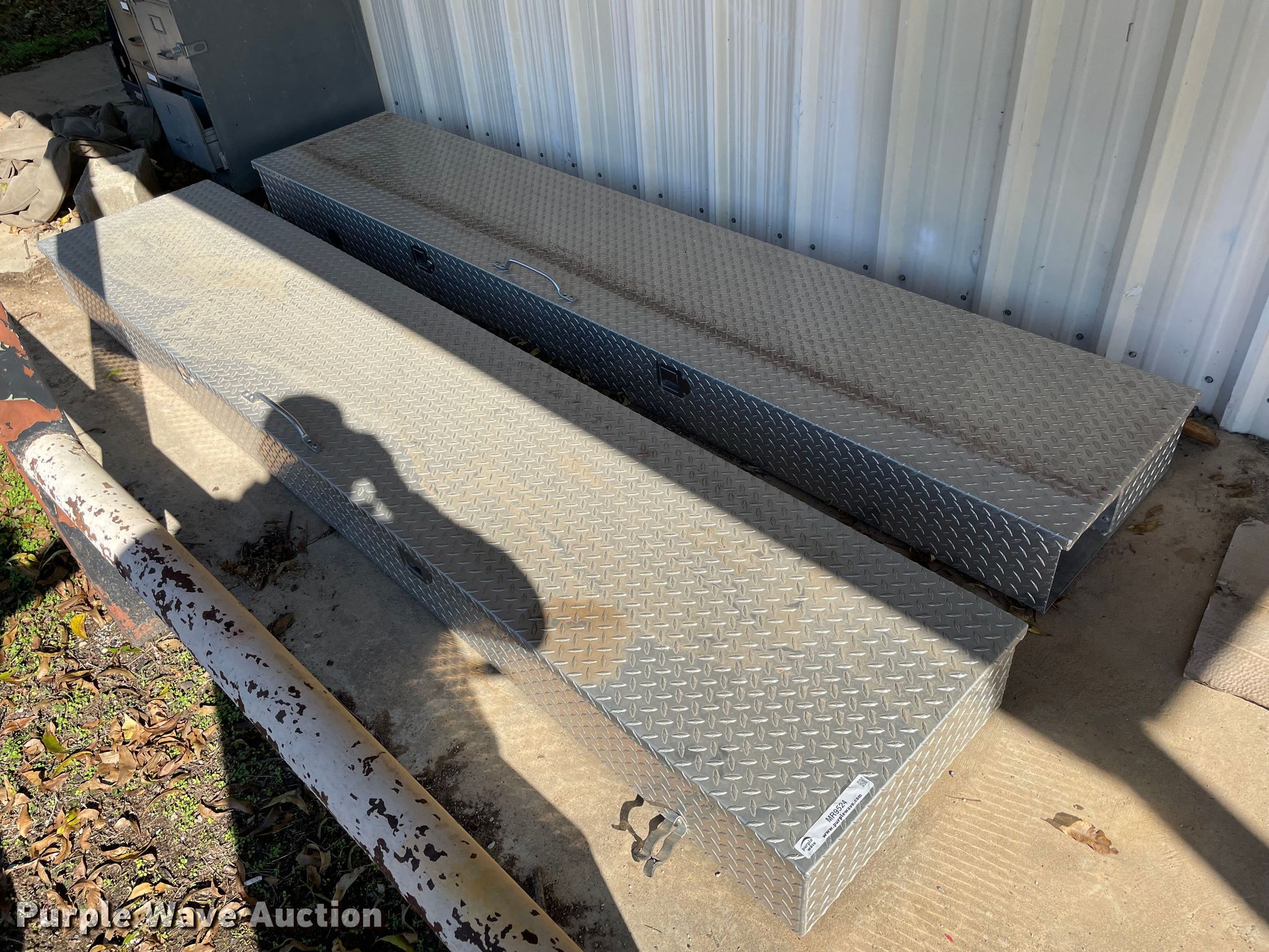 Purple Wave is selling a used Automotive Parts or Acces. in Oklahoma. This item is a (2) toolboxes with the following: 9'10"L x 23"W x 9"H