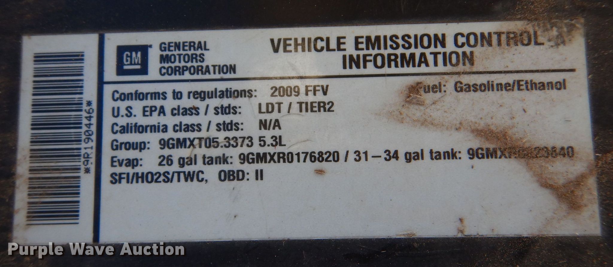 2009 Chevrolet Tahoe Police SUV. Miles: 117,144 on odometer, VIN: 1GNEC030X9R190446, Unit #: CI19555. Engine Displacement: 5.3L V8 OHV, Cylinders: 8, Fuel type: Gas. Transmission Automatic. Interior AC, Heat, Seat: Power driver, Power passenger, Power windows, Power locks, Cruise control. Tires Size: 265/60R17. Notes Dash warning indicator: Air bag. Oklahoma title. Title distribution may be delayed up to 30 days from verification of funds. Public Works Department. 700 Lakeview Drive. Woodward, OK 73801