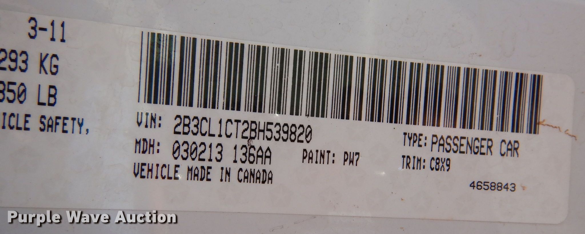 • VIN: 2B3CL1CT2BH539820