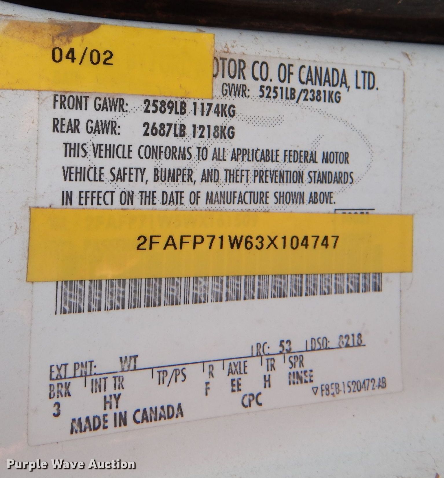 Purple Wave is selling a used Passenger Vehicle in Oklahoma. This item is a 2003 Ford Crown Victoria Police Interceptor with the following: Miles: 105,025 on odometer, VIN: 2FAFP71W63X104747, Unit #: CI359656