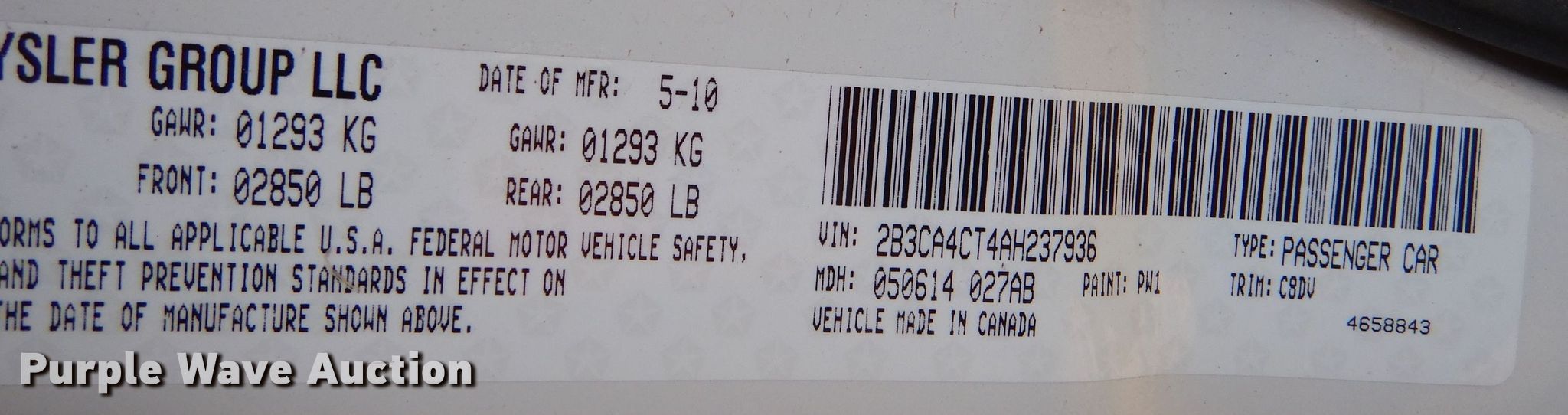 • VIN: 2B3CA4CT4AH237936