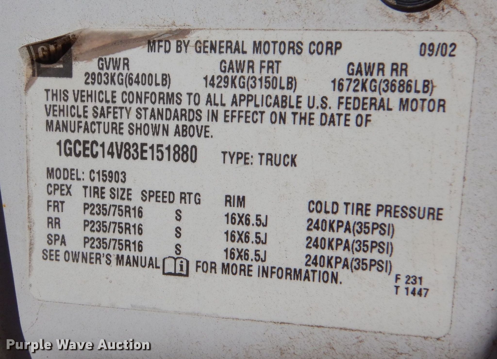 Purple Wave is selling a used 1/2 Ton Pickup or Van in Oklahoma. This item is a 2003 Chevrolet Silverado 1500 pickup truck with the following: Miles: Unknown, VIN: 1GCEC14V83E151880