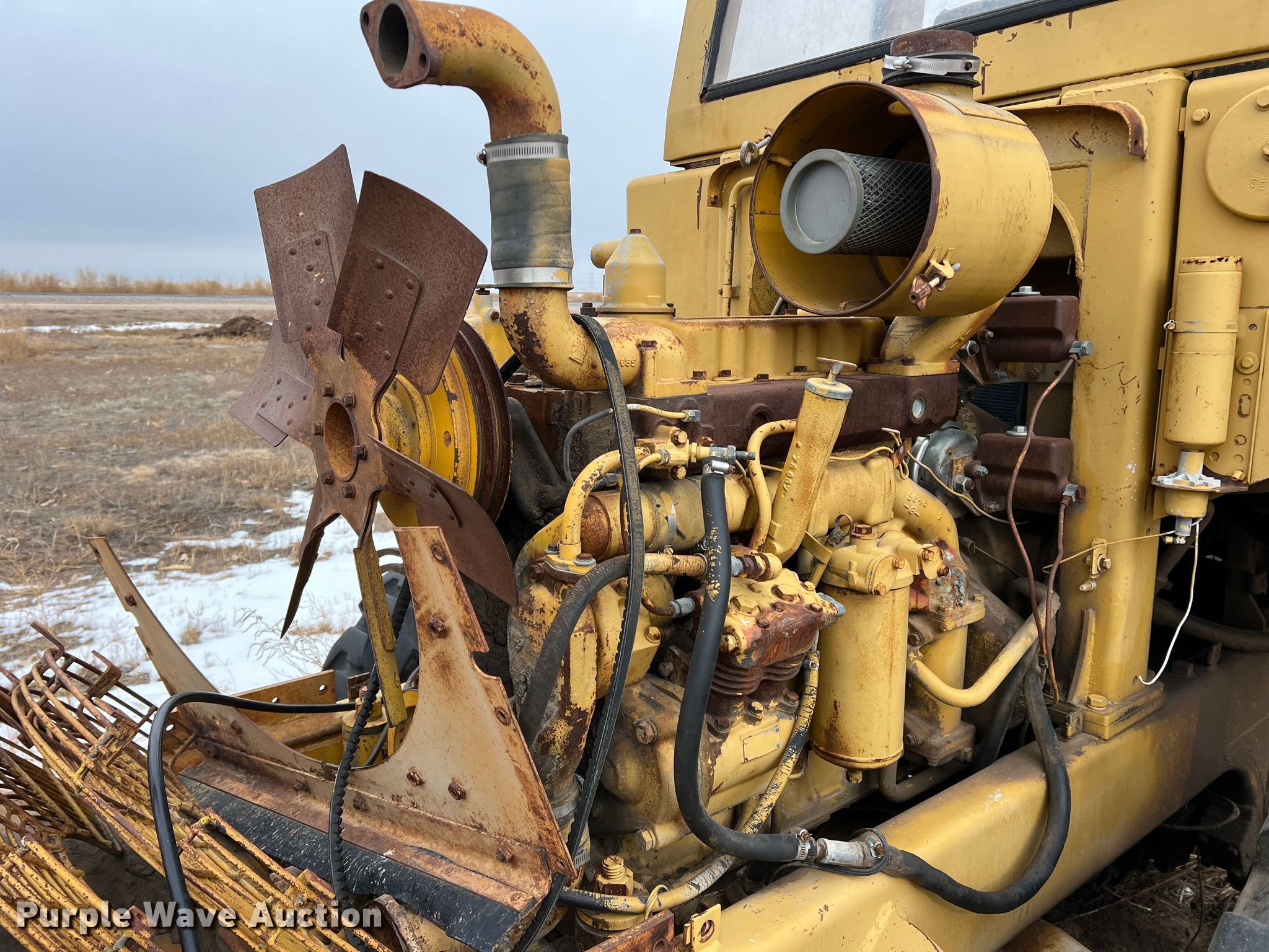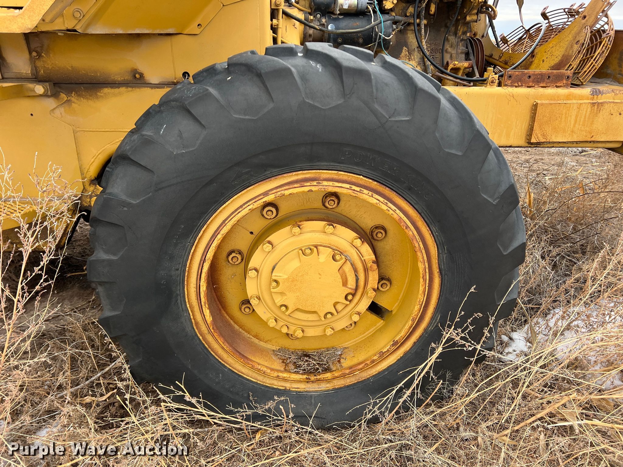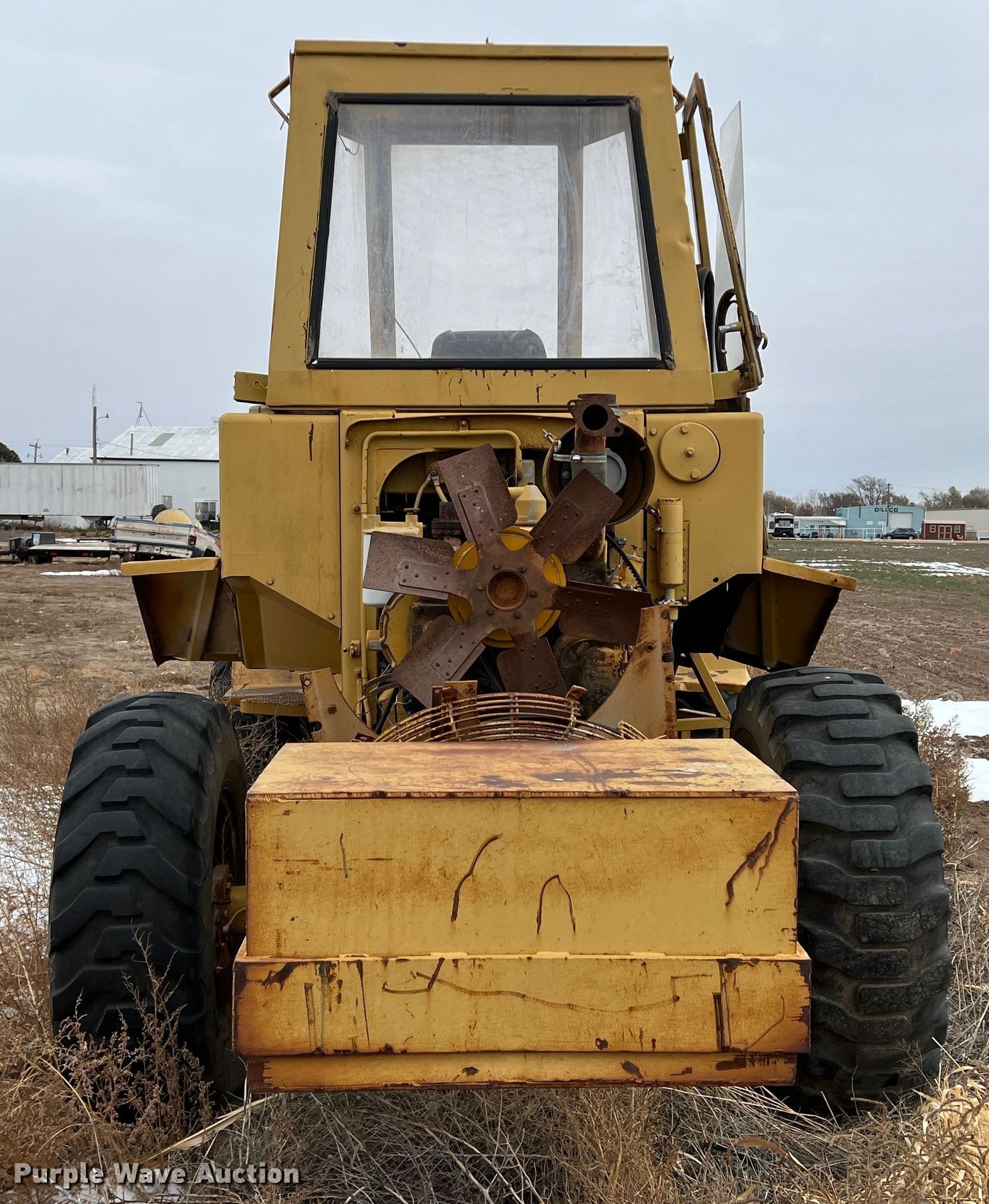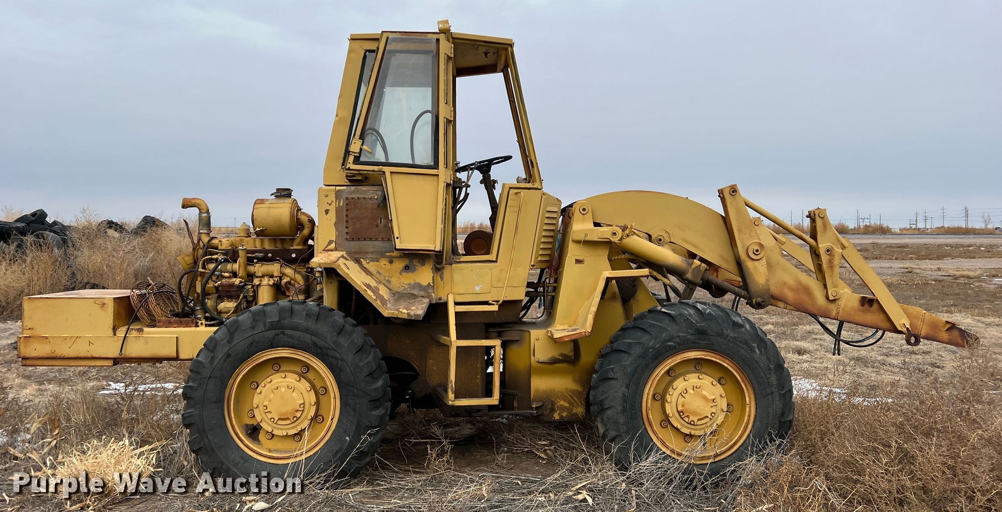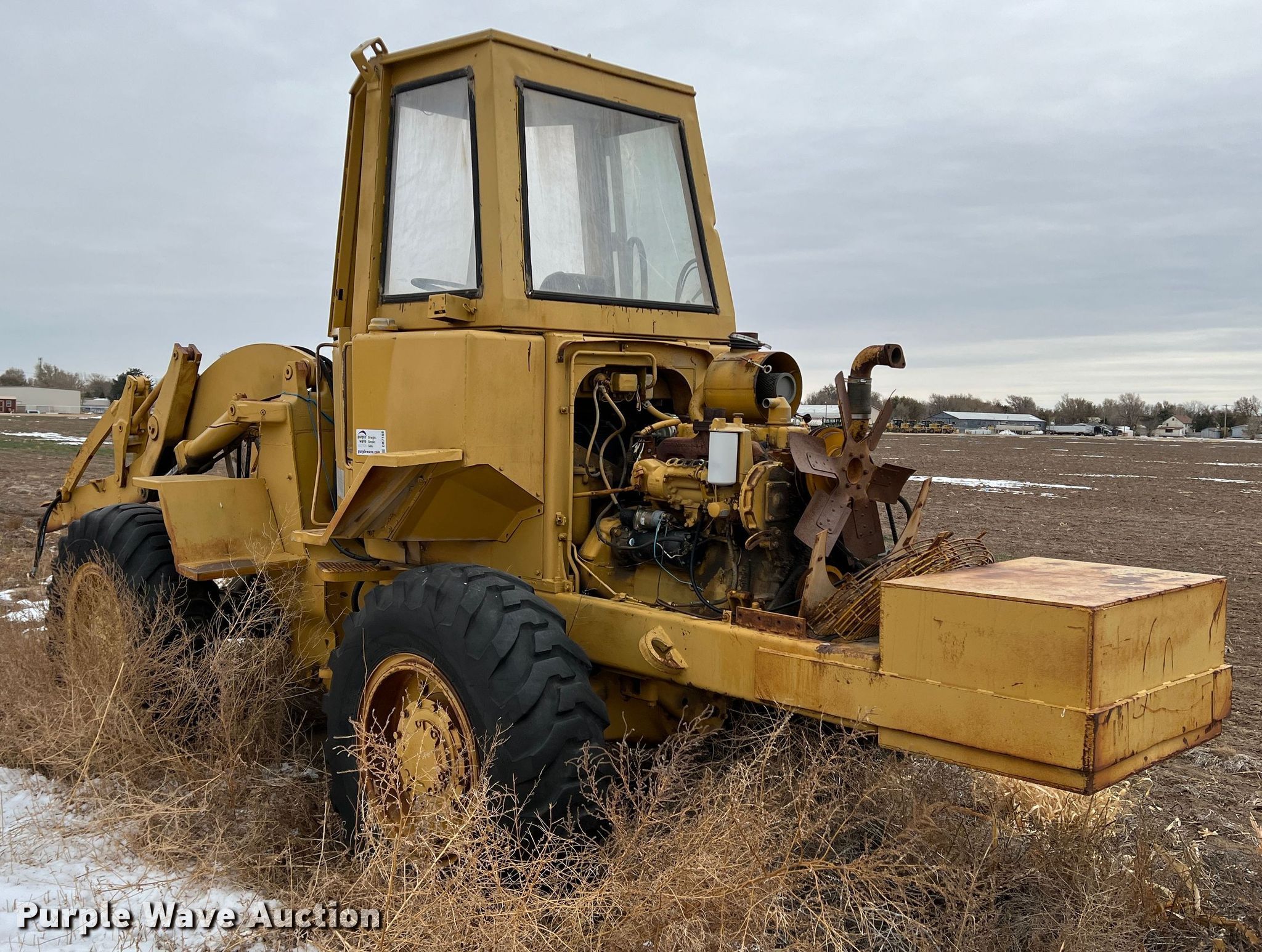 1970 Caterpillar 920 wheel loader. Hours: Unknown, Serial: 62K2131. Engine Cylinders: 4, Fuel type: Diesel. Transmission Powershift, 4F - 3R. Operators station Enclosed cab, Heat, Bucket controls: Two-lever. Features Auxiliary hydraulics: Front. Tires Size: 15.5-25. Notes Glass cracked/missing, Non-operational unit. Premier Alfalfa Inc.. 319 W City Limits St. Hugoton, KS 67951
