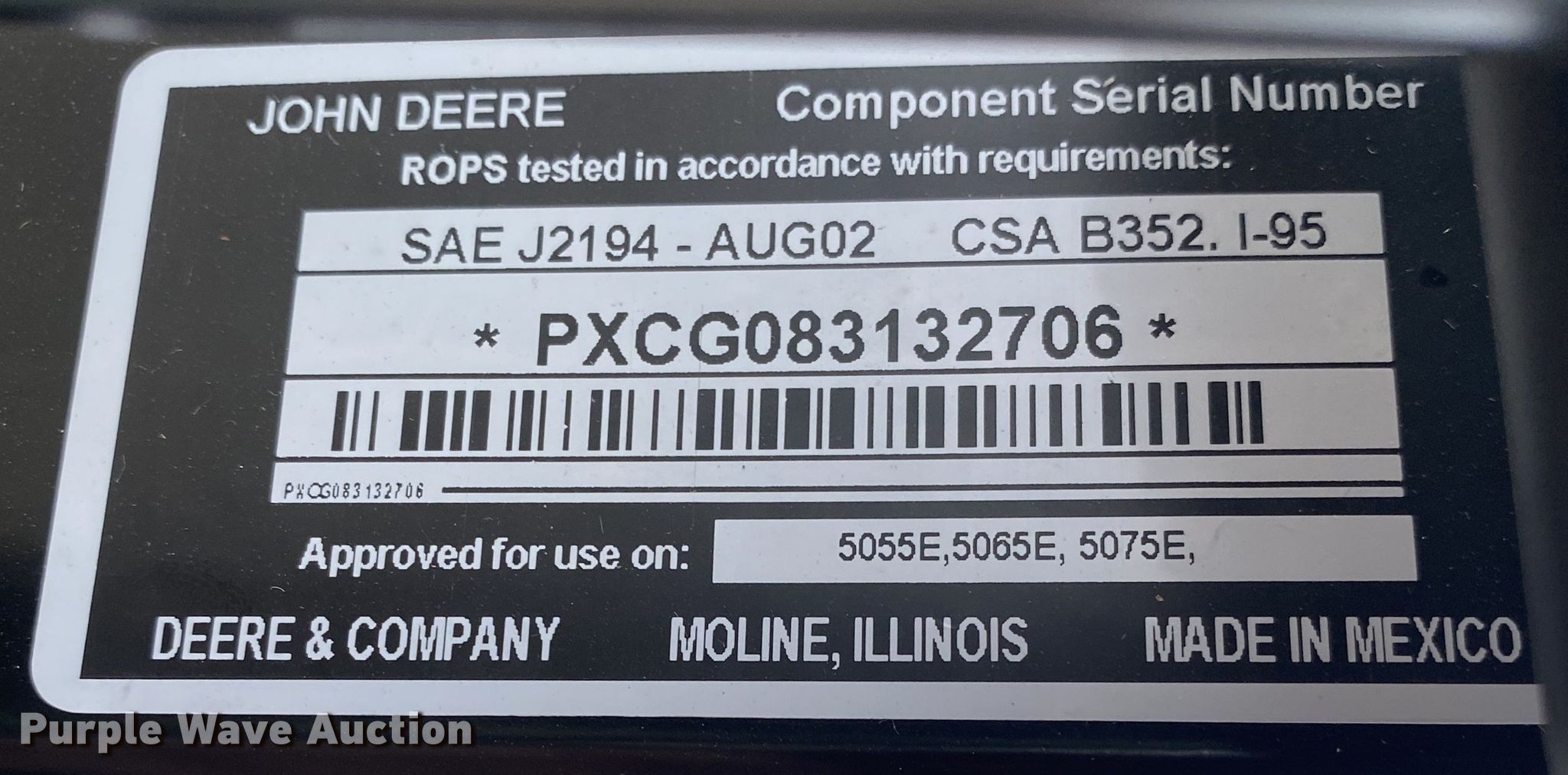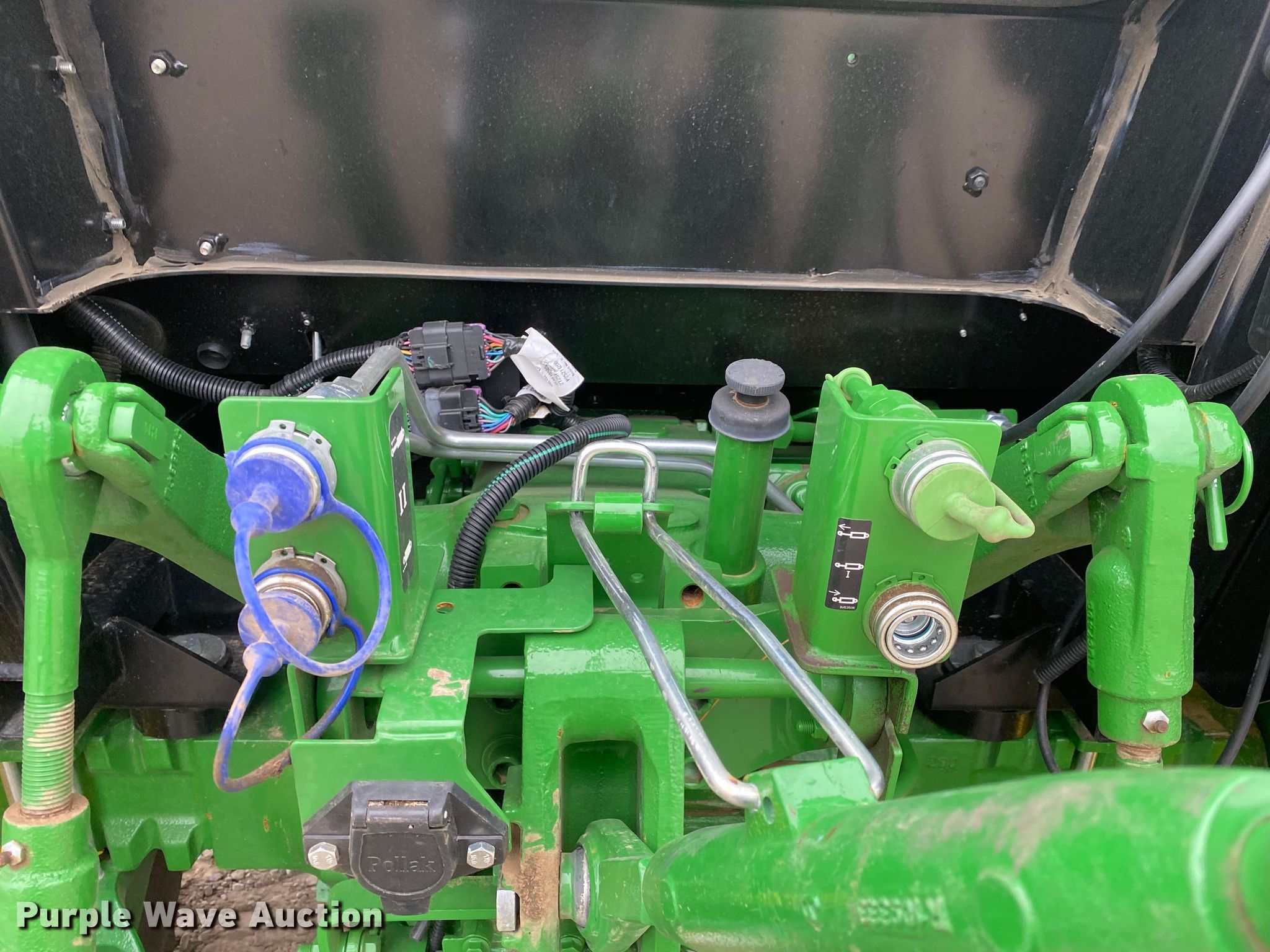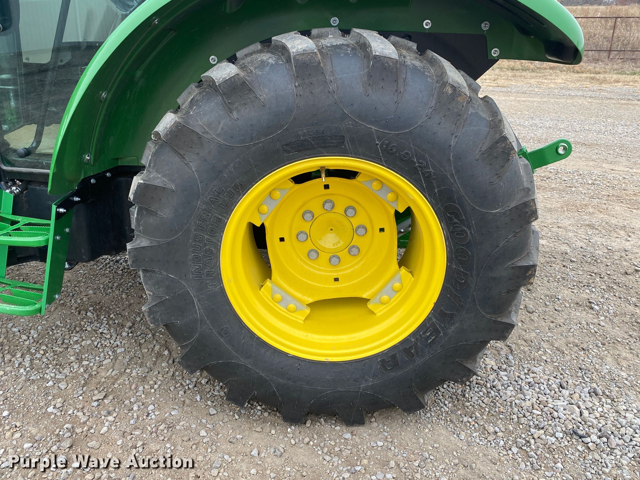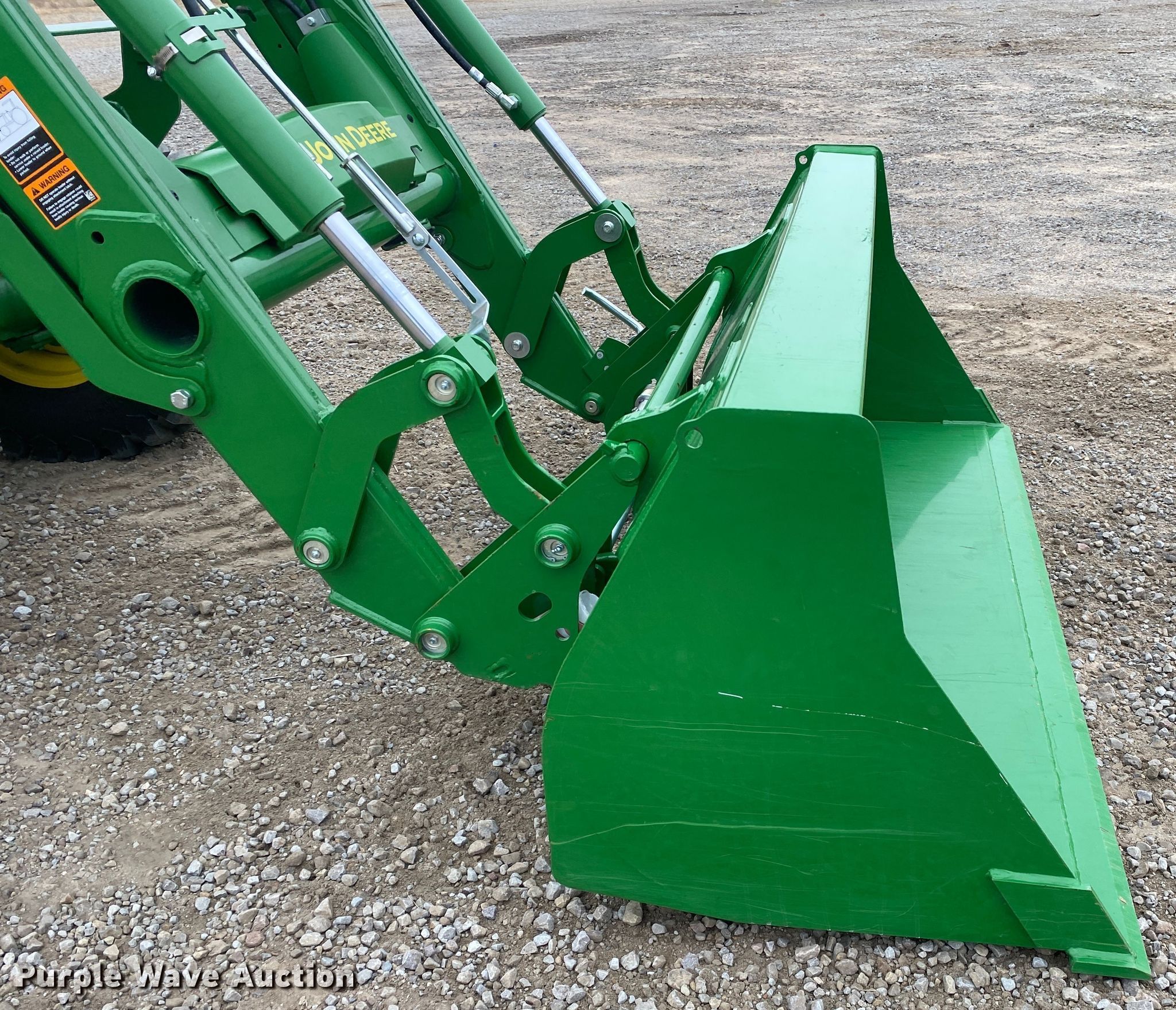 2022 John Deere 5065E MFWD tractor. Hours: 47 on meter, Serial: 1PY5065EJNN409471. Engine John Deere 3029, Serial: PY3029U059460, Displacement: 2.9L, Cylinders: 3, Fuel type: Diesel. Transmission Synchro, 12F - 12R, Left-hand reverser, Differential lock. Operators station AC, Heat. Features PTO: 540, Three point Top link, Seven pin outlet, Rear: 2, Loader John Deere 520M, Controls: Joystick, Bucket Width: 73".. Tires Front: 12.5/80-18 NHS, Rear: 16-9-24. Arkoma, OK 74901