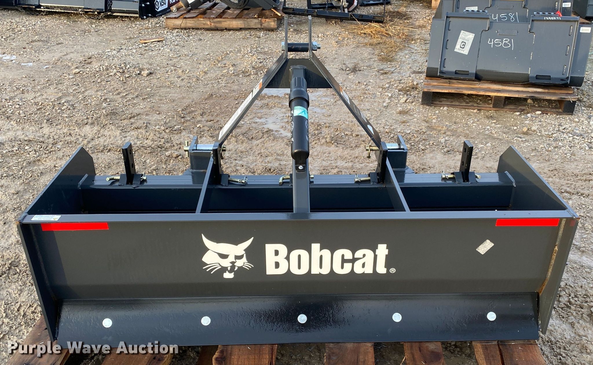 Purple Wave is selling a used Ag Equip. Other in Oklahoma. This item is a Bobcat 60 box blade with the following: Width: 5', Hitch: Three point, Serial: B4UH00799