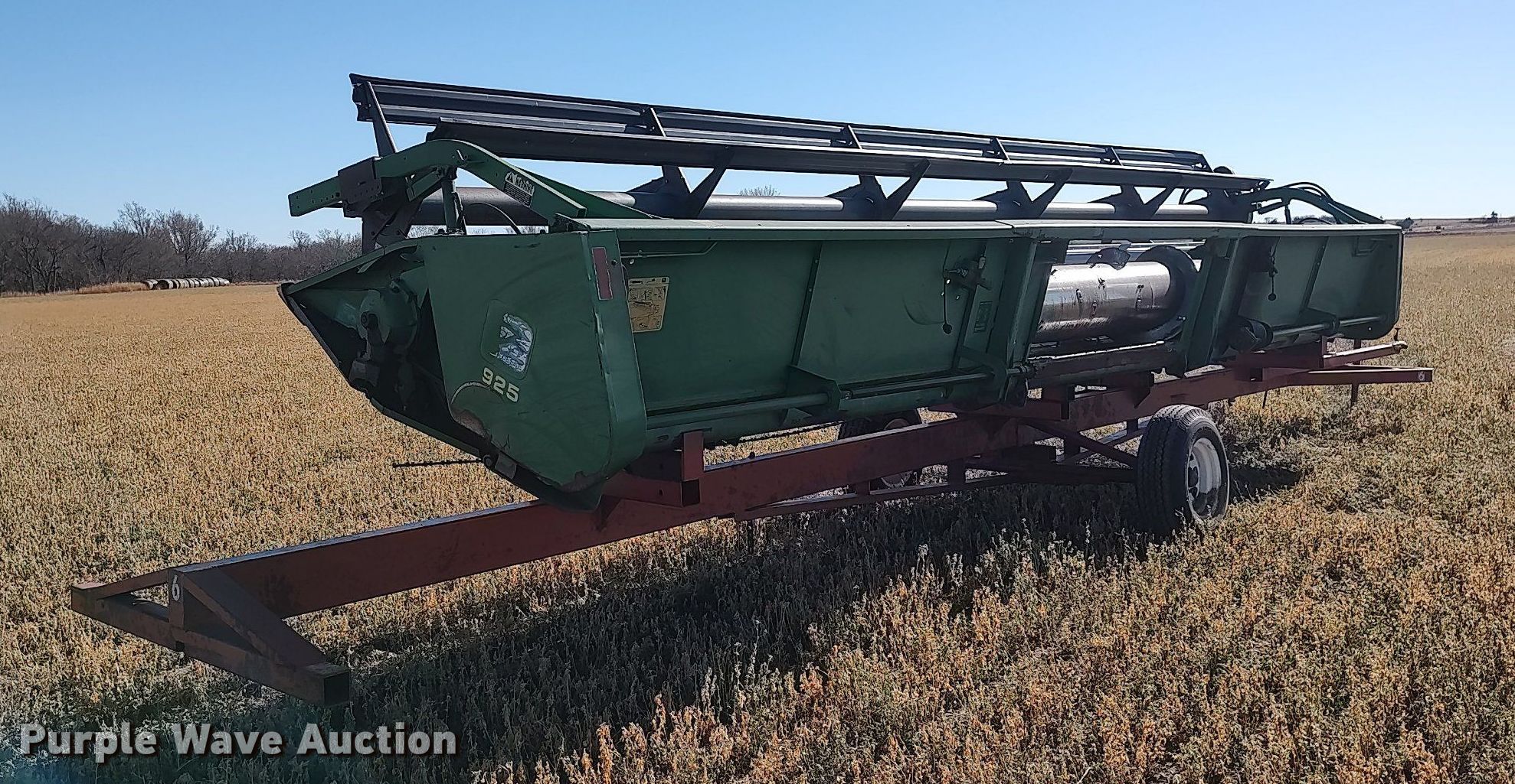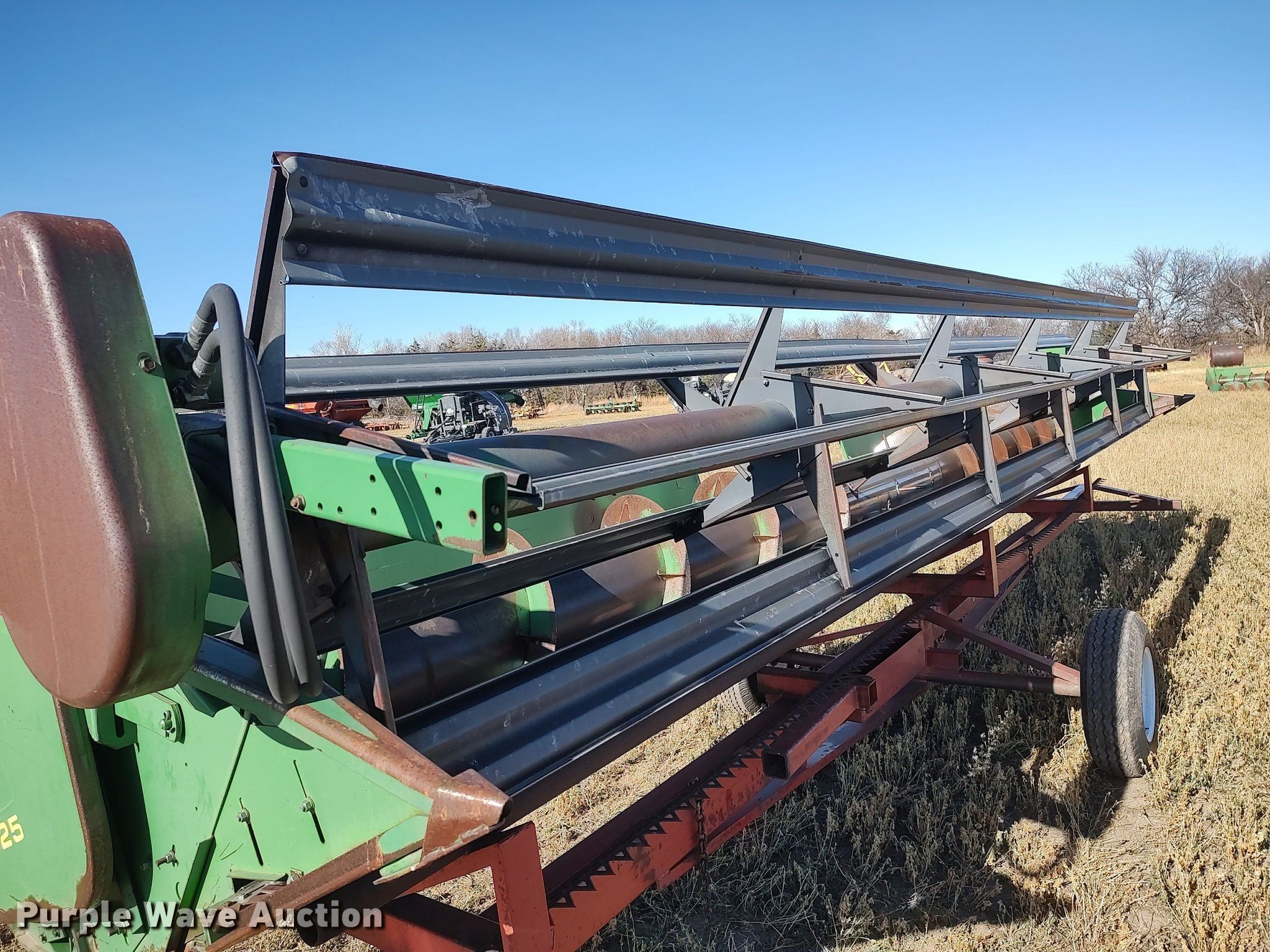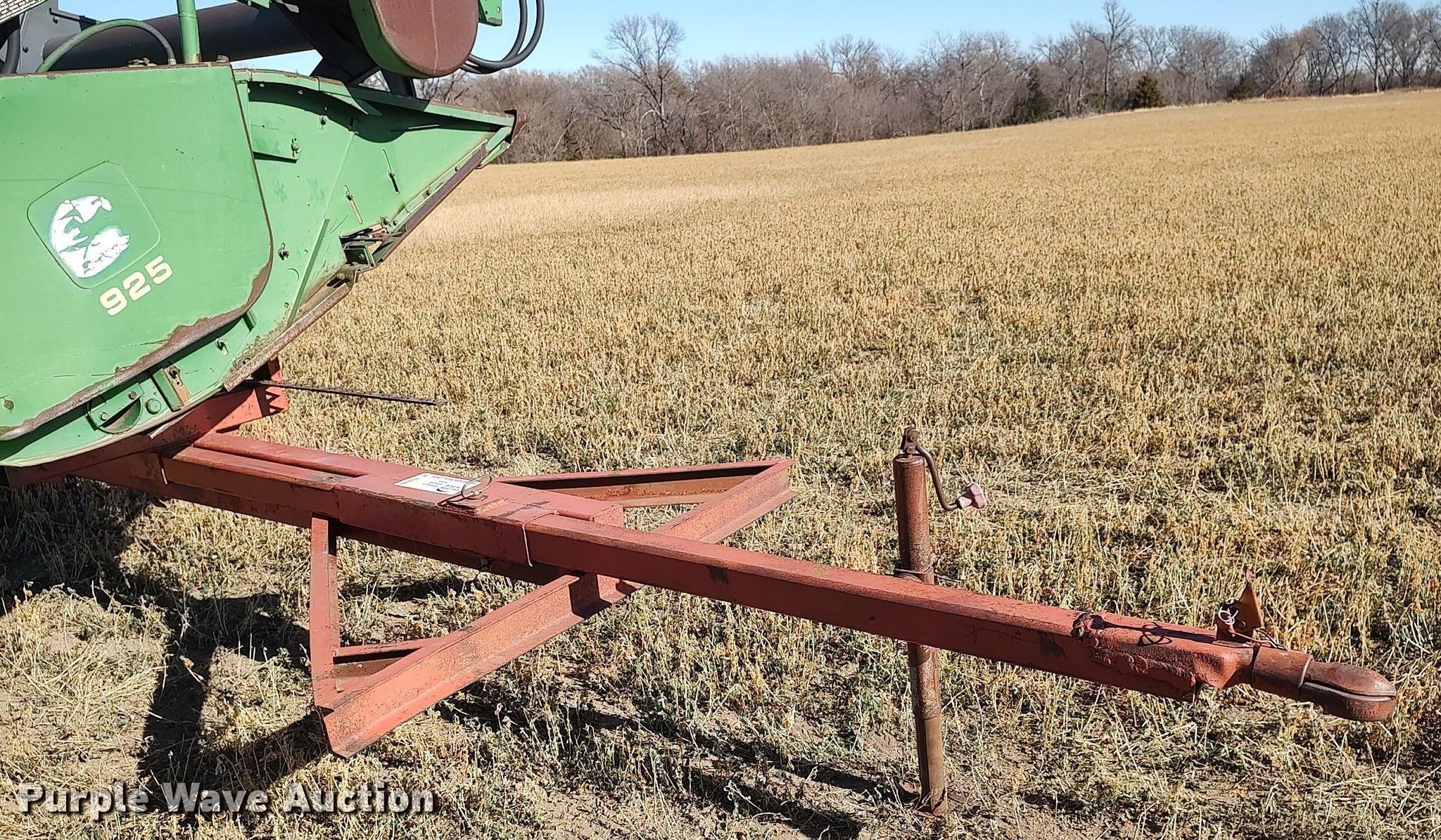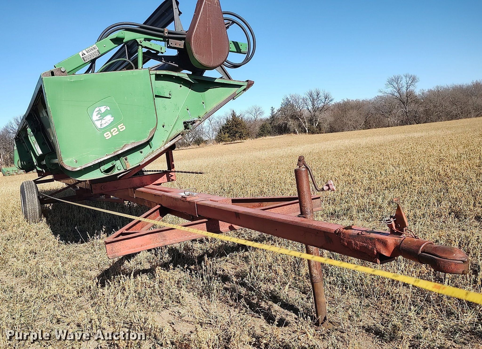 Purple Wave is selling a used Platform or Stripper Head in Kansas. This item is a 1990 John Deere 925 rigid head with the following: Serial: H00925P635896