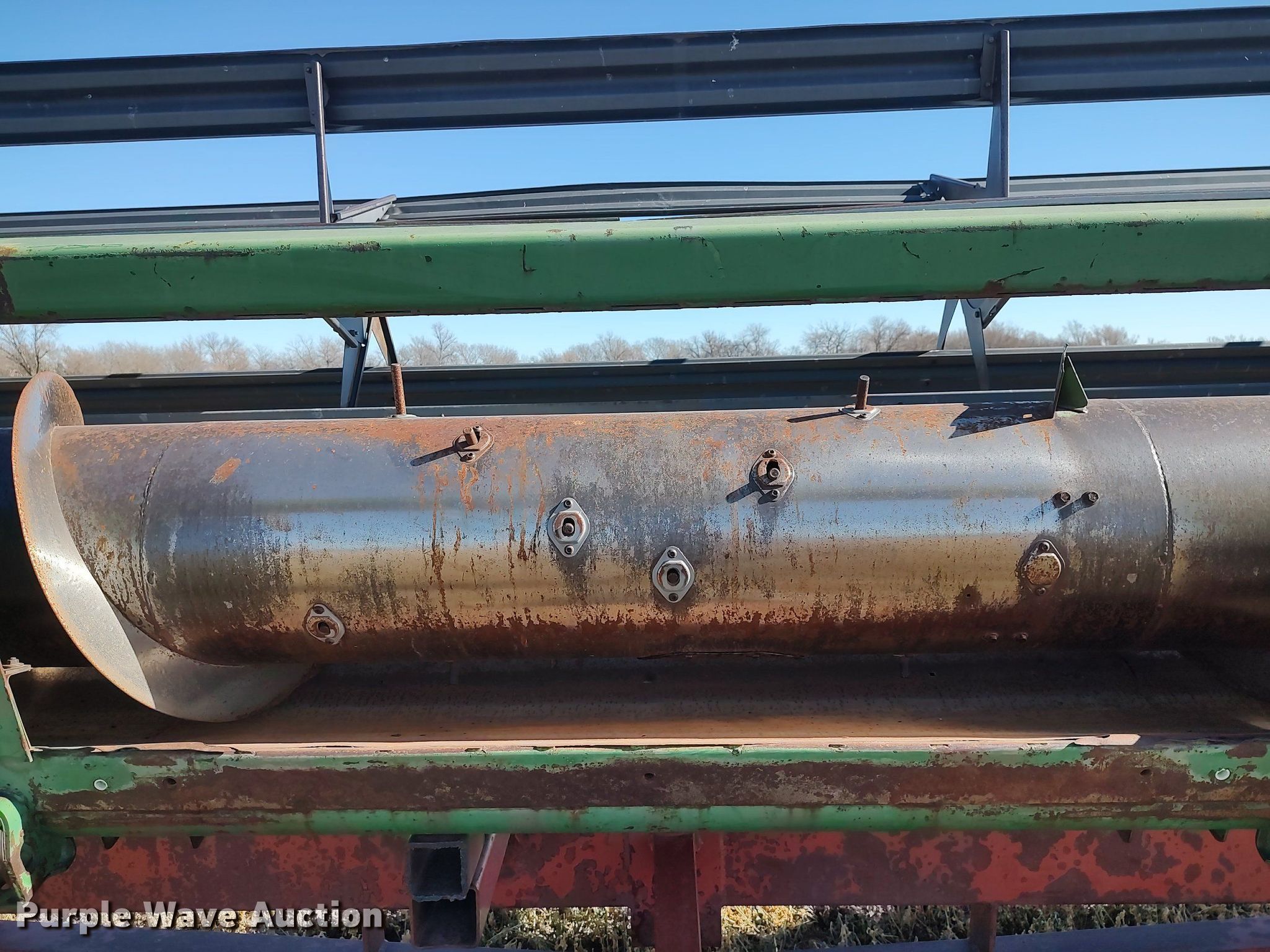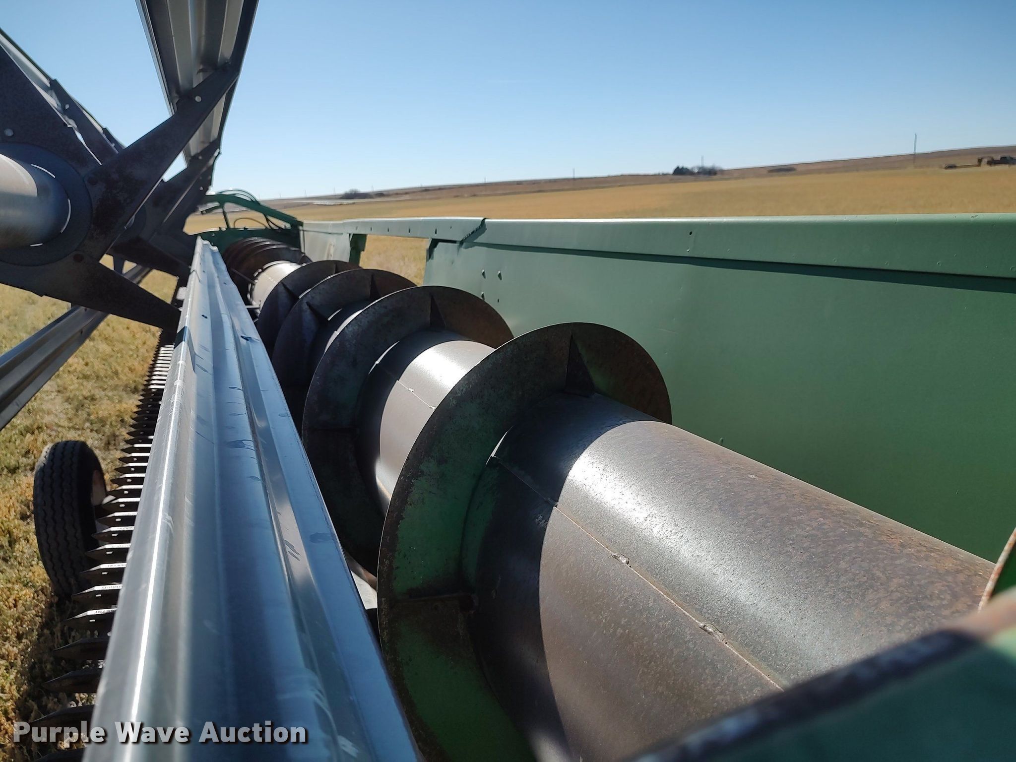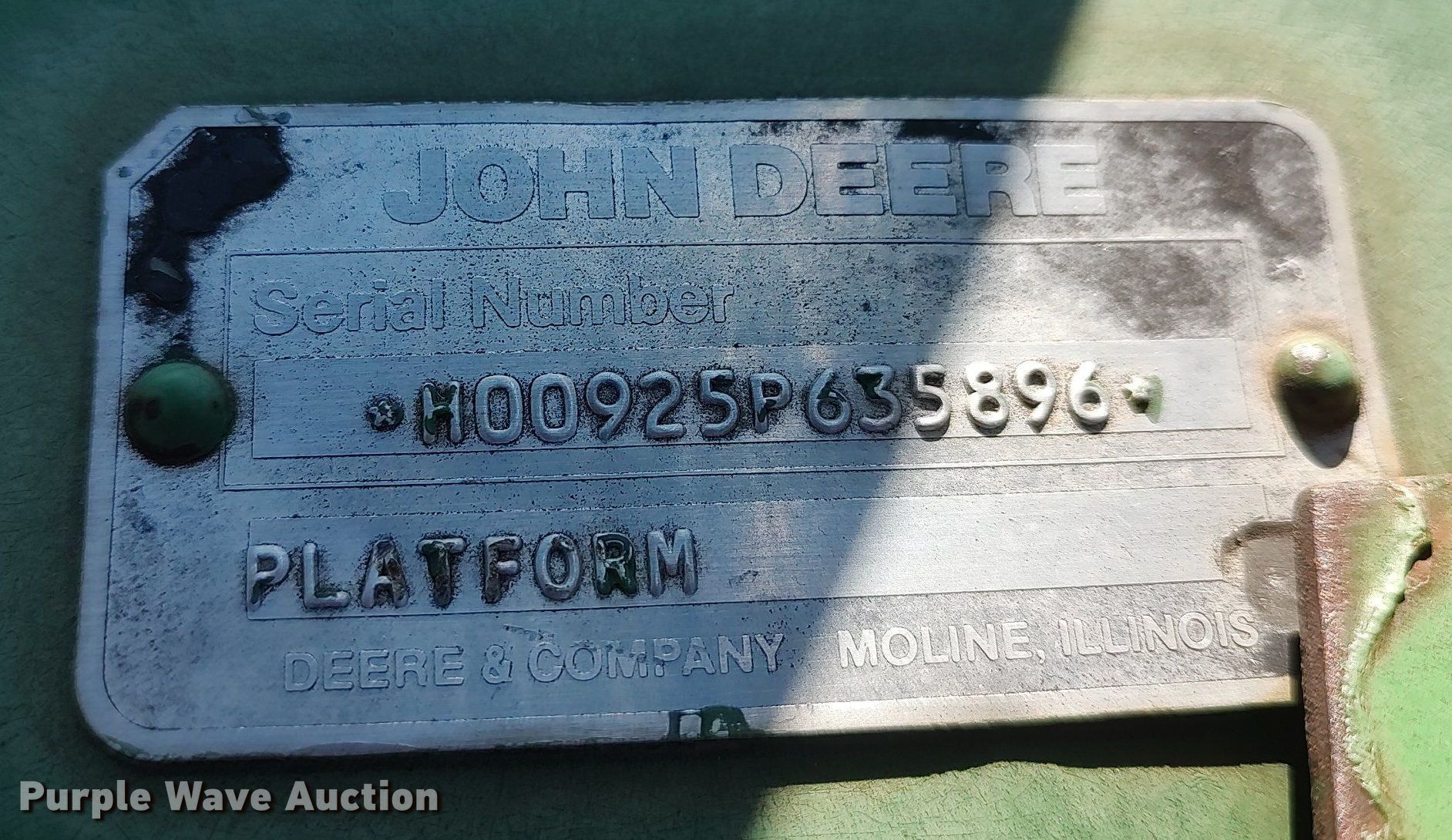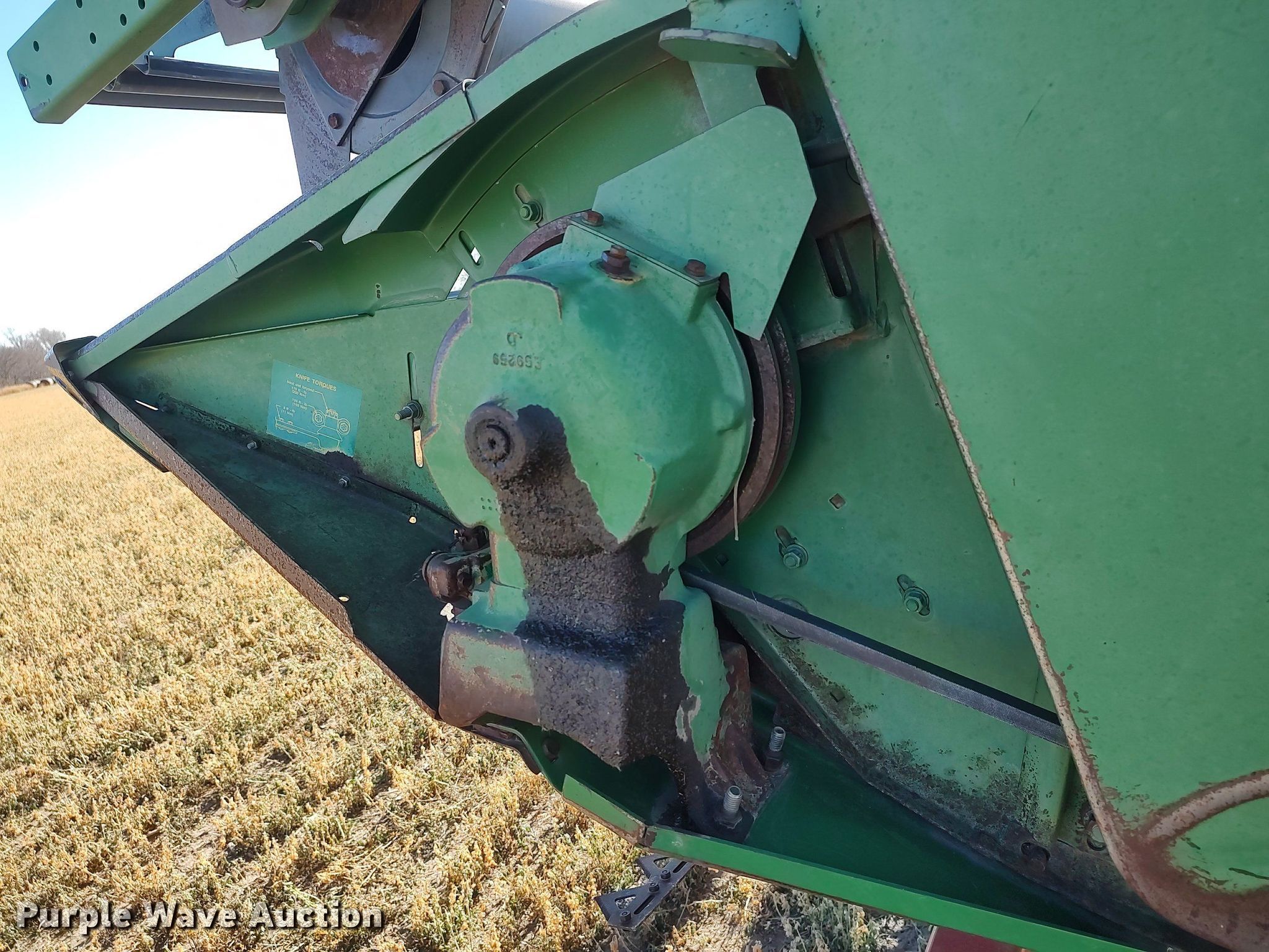 Purple Wave is selling a used Platform or Stripper Head in Kansas. This item is a 1990 John Deere 925 rigid head with the following: Serial: H00925P635896