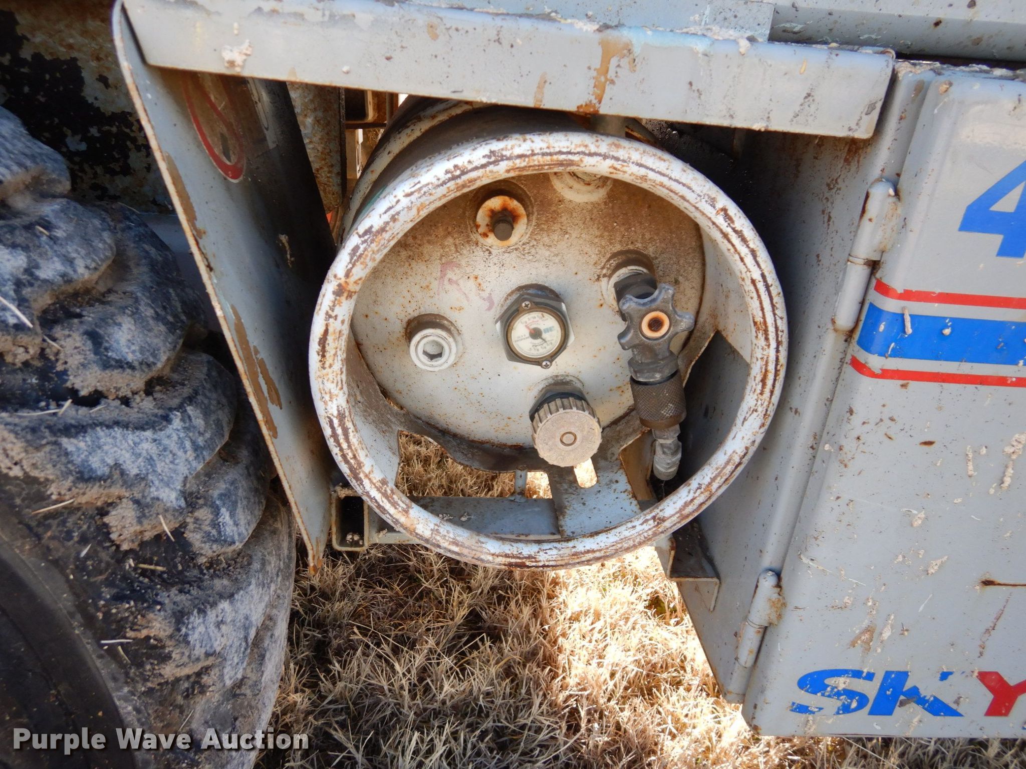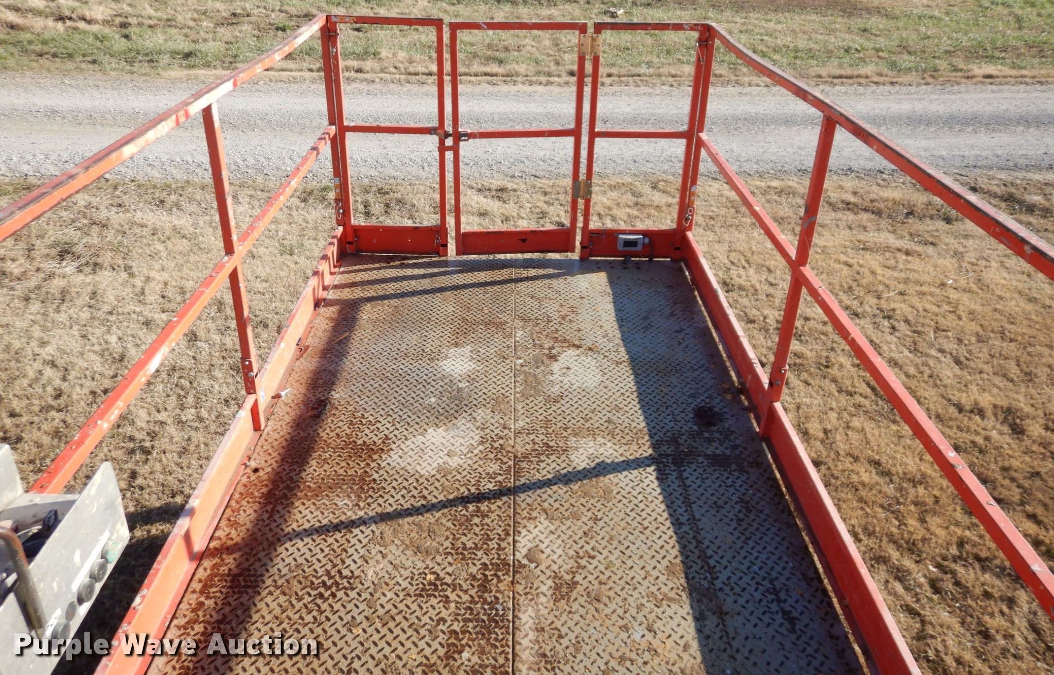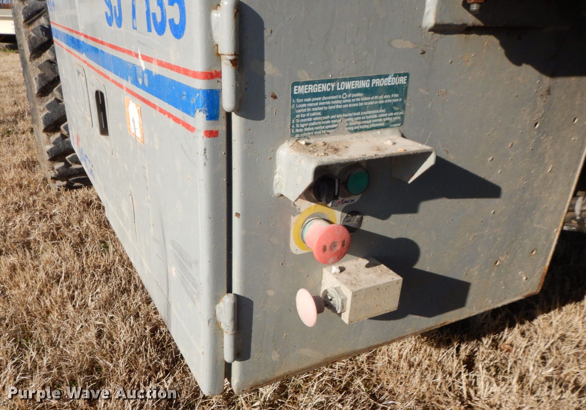 Skyjack SJ7135 scissor lift. Hours: 1,091 on meter, Serial: 34002027. Engine Kubota DF972-ES, Displacement: 962 cc, Cylinders: 3, Fuel type: Dual fuel. Chassis Four wheel drive. Features Rough terrain, Maximum lift capacity: 1,000 lbs, Maximum lift height: 35', Hydraulic outriggers, Platform: 120" L x 66" W, AC power outlet, Controls: Platform, Ground, Platform extensions: Manual. Tires Tire size: 10-16.5. Hutto Grain. 6663 SE Messer Rd. Galena, KS 66739