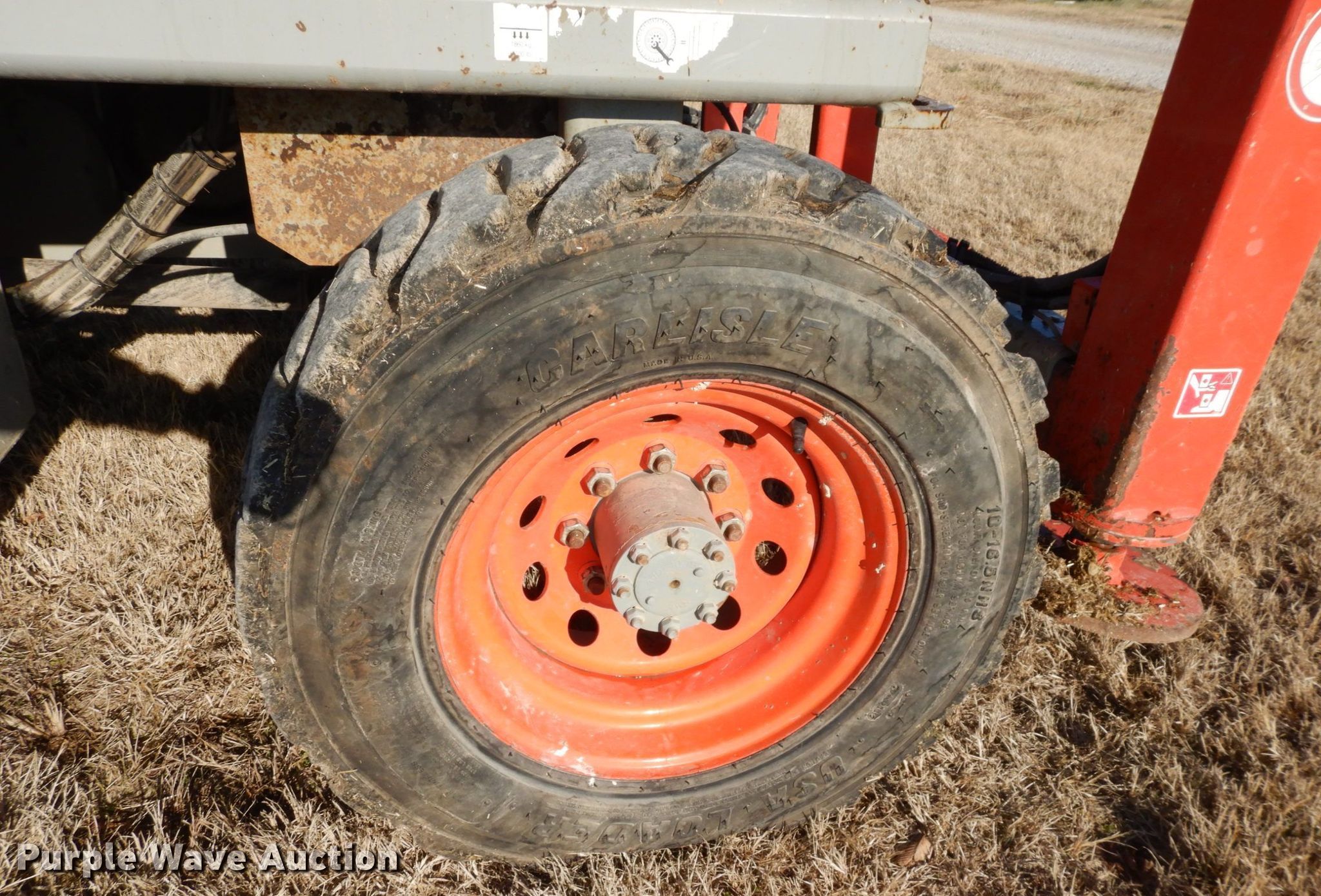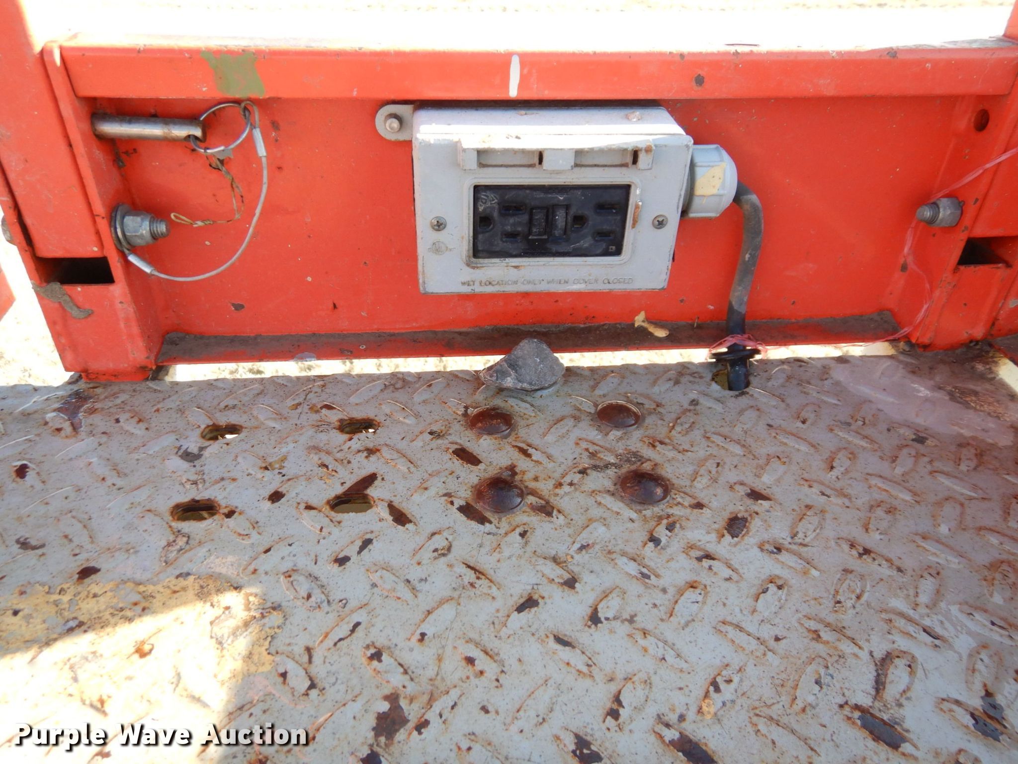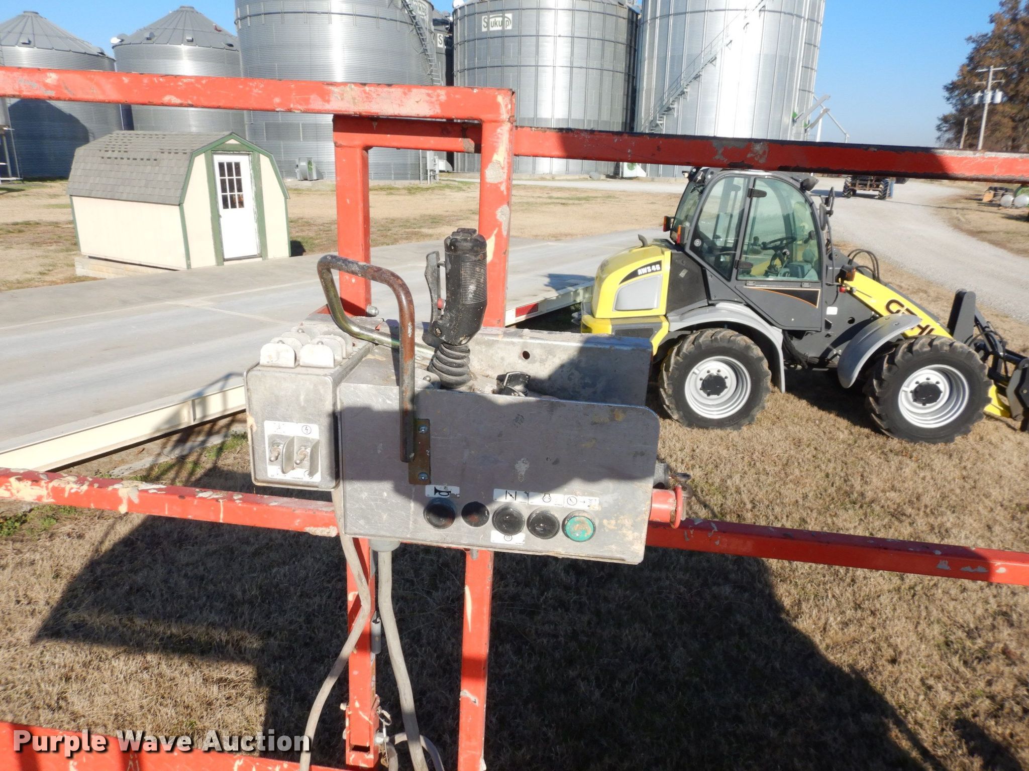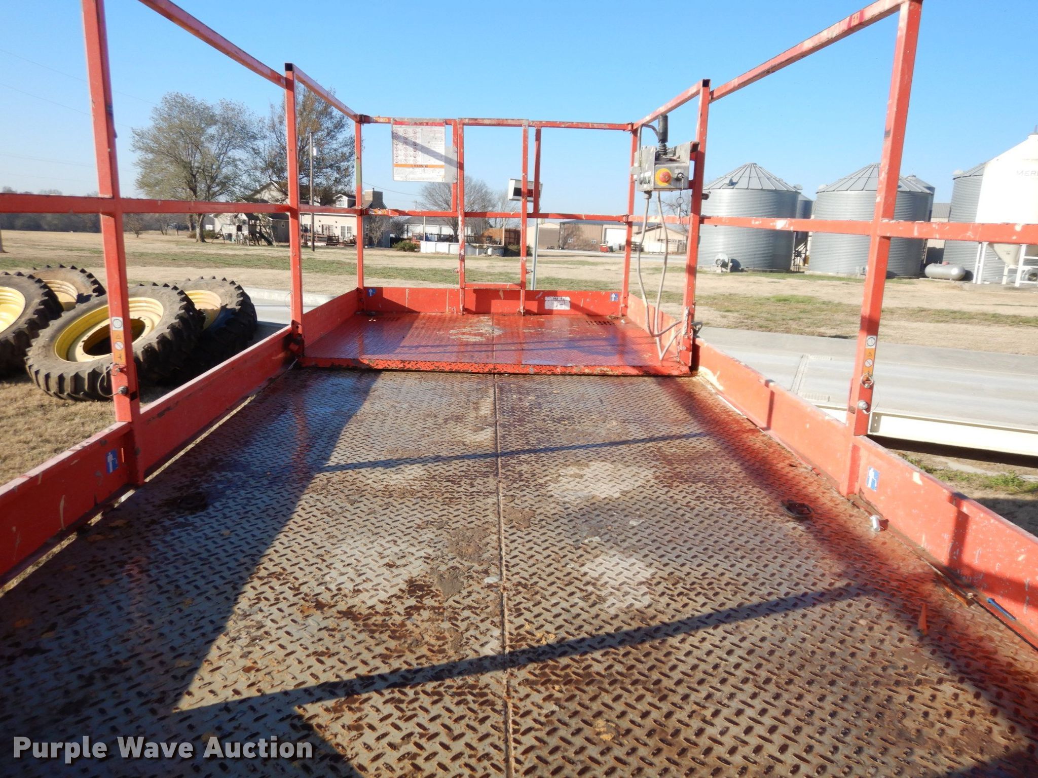 Skyjack SJ7135 scissor lift. Hours: 1,091 on meter, Serial: 34002027. Engine Kubota DF972-ES, Displacement: 962 cc, Cylinders: 3, Fuel type: Dual fuel. Chassis Four wheel drive. Features Rough terrain, Maximum lift capacity: 1,000 lbs, Maximum lift height: 35', Hydraulic outriggers, Platform: 120" L x 66" W, AC power outlet, Controls: Platform, Ground, Platform extensions: Manual. Tires Tire size: 10-16.5. Hutto Grain. 6663 SE Messer Rd. Galena, KS 66739