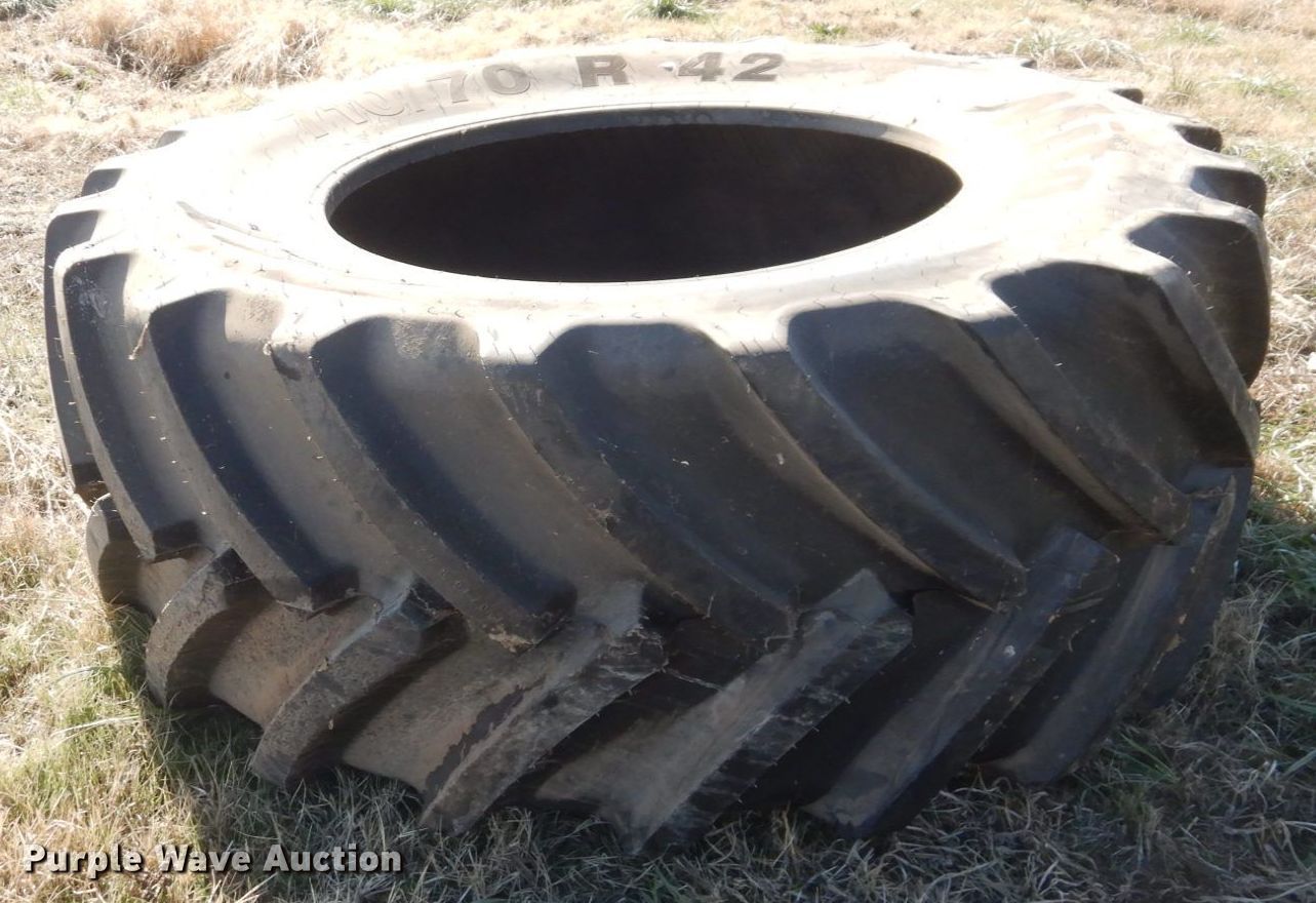 Purple Wave is selling a used Industrial Tires or Tracks in Kansas. This item is a Mitas SFT 710/70R42 tire with the following: Unused