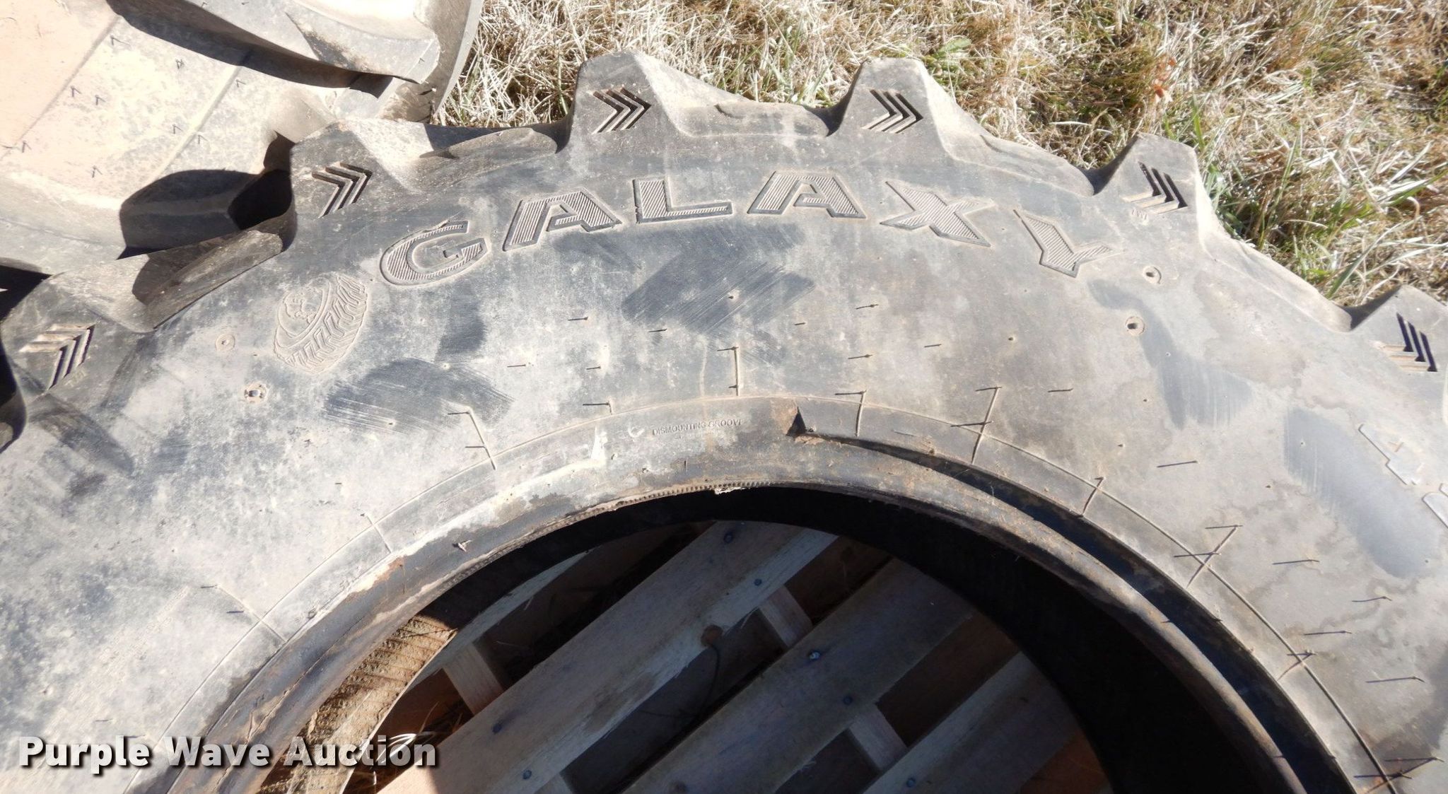 Purple Wave is selling a used Industrial Tires or Tracks in Kansas. This item is a (3) Galaxy Earth Pro tires and wheels with the following: (2) 18.4-38 tires and wheels, 420/85R28 tire
