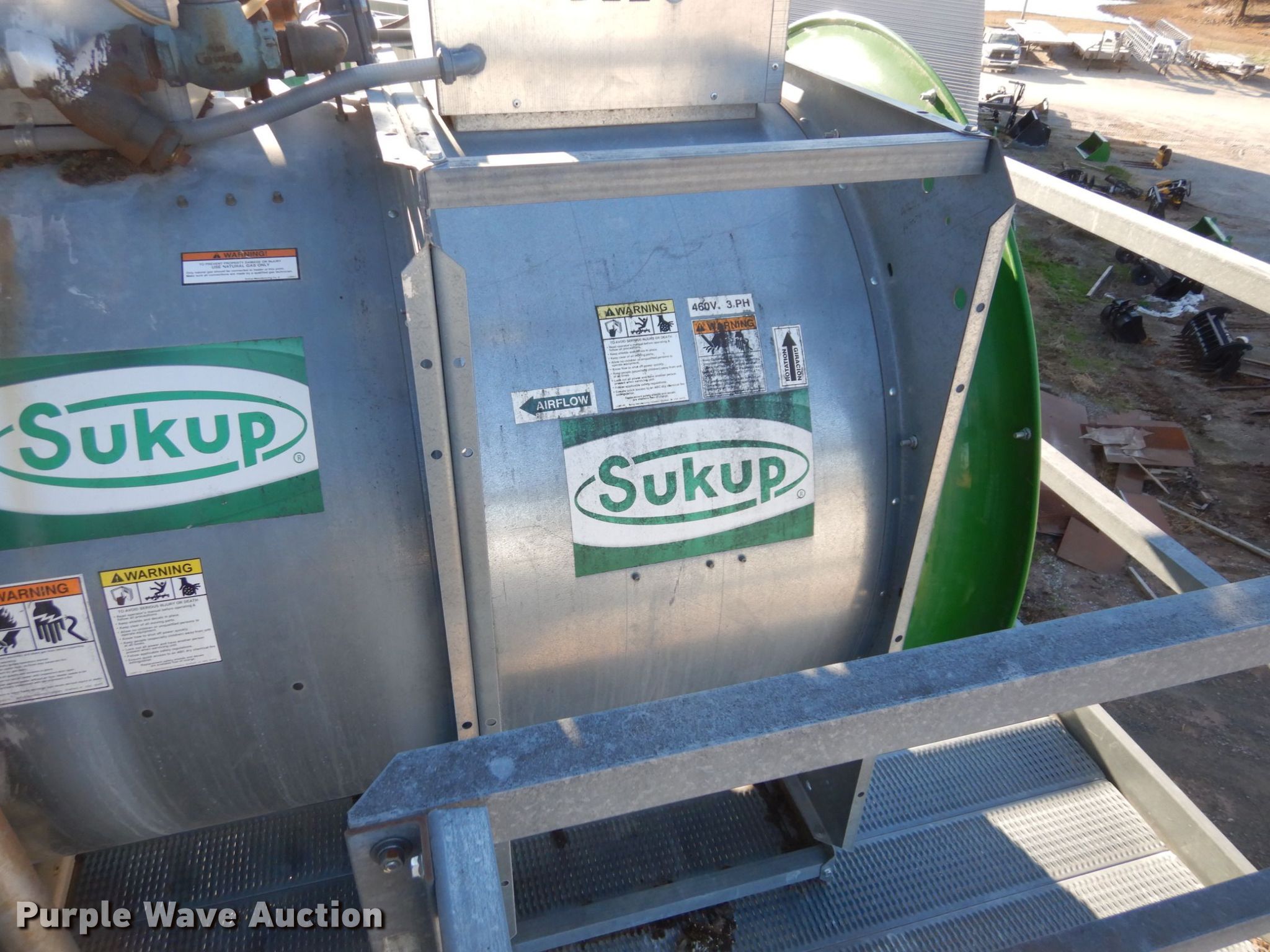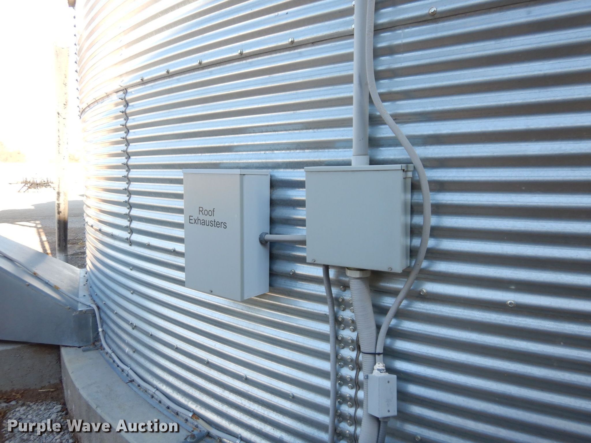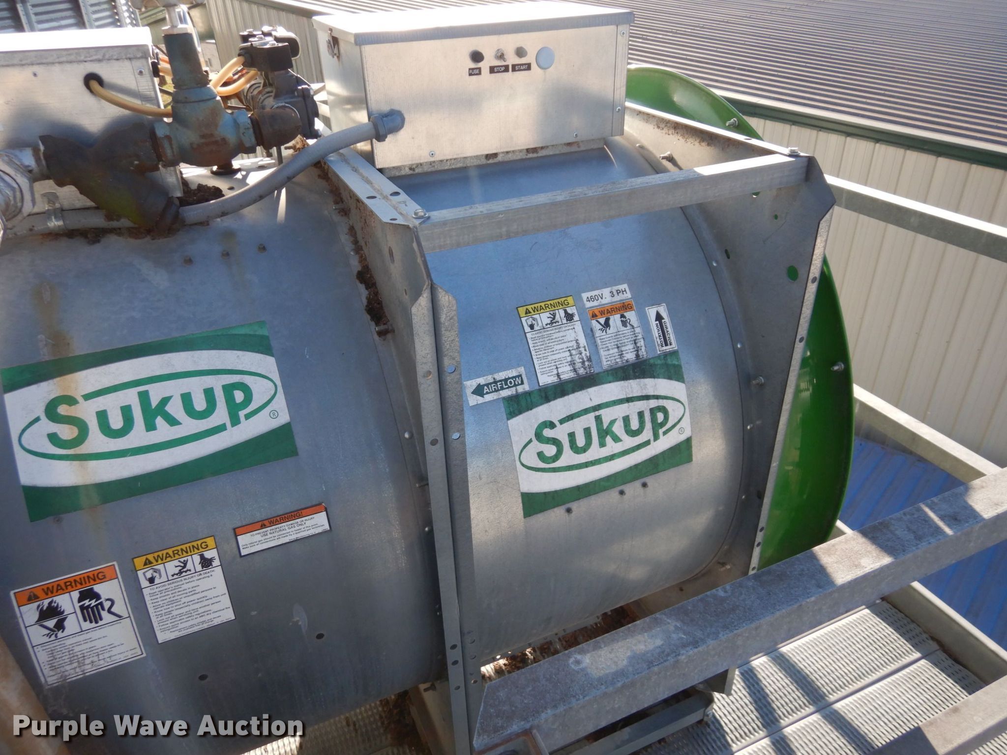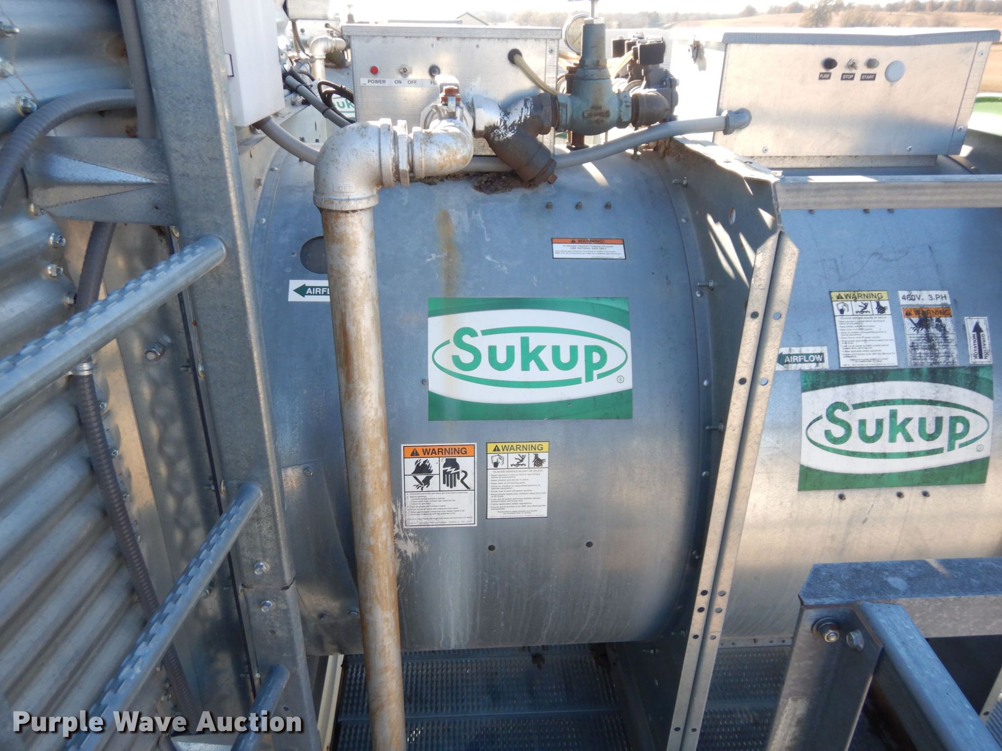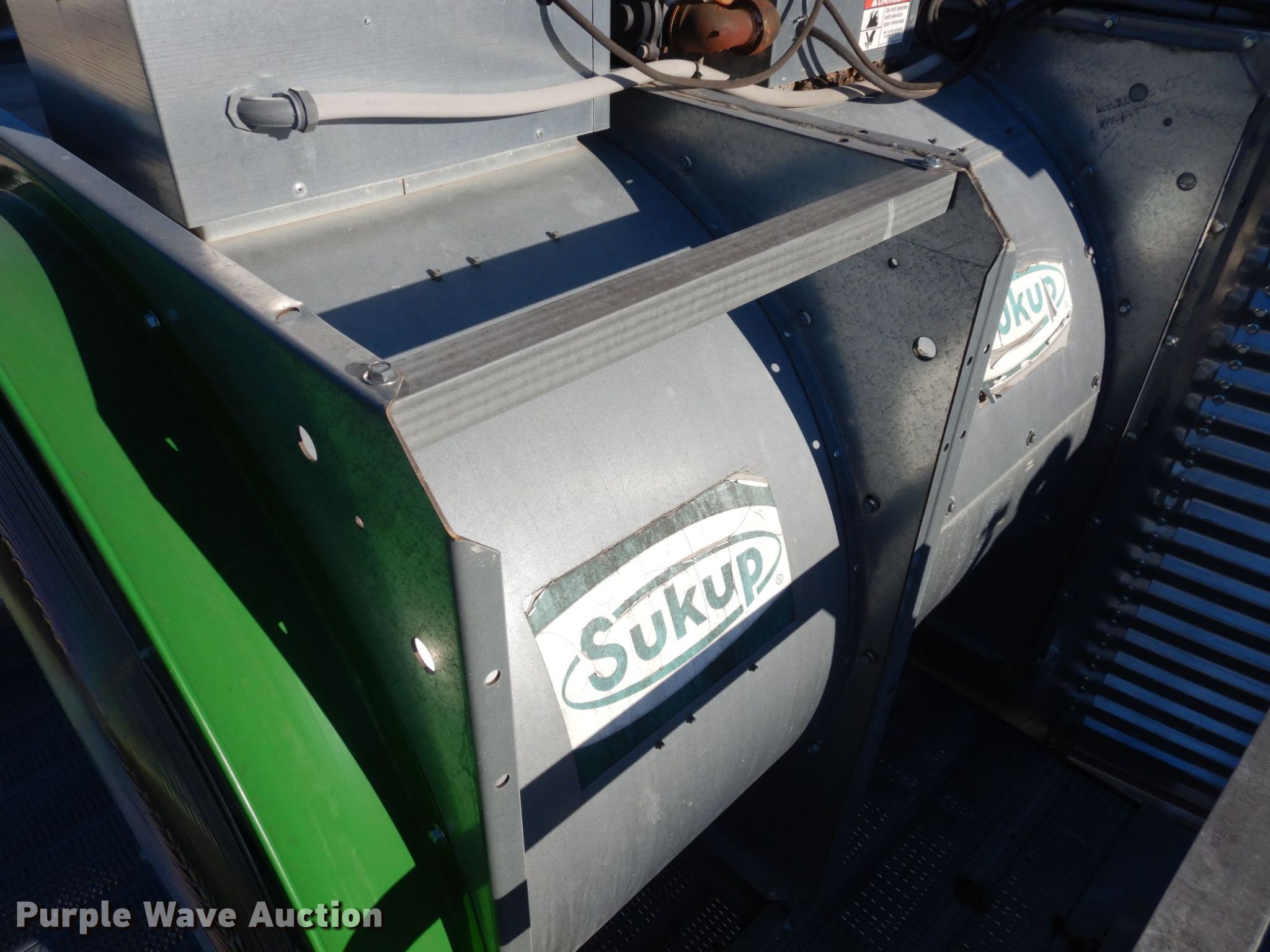 Purple Wave is selling a used Other Grain or Fertilizer Handling in Kansas. This item is a 2014 AGI Ezee-Dry grain bin drying system with the following: MFS Stormor grain bin, 36' diameter, (10) narrow rings, (2) Sukup fans, 30 HP, Driers, Natural gas fired,, Sukup controllers, Sukup U-trough unloader, Floor fan, 5 HP, Stairs, Control panel
