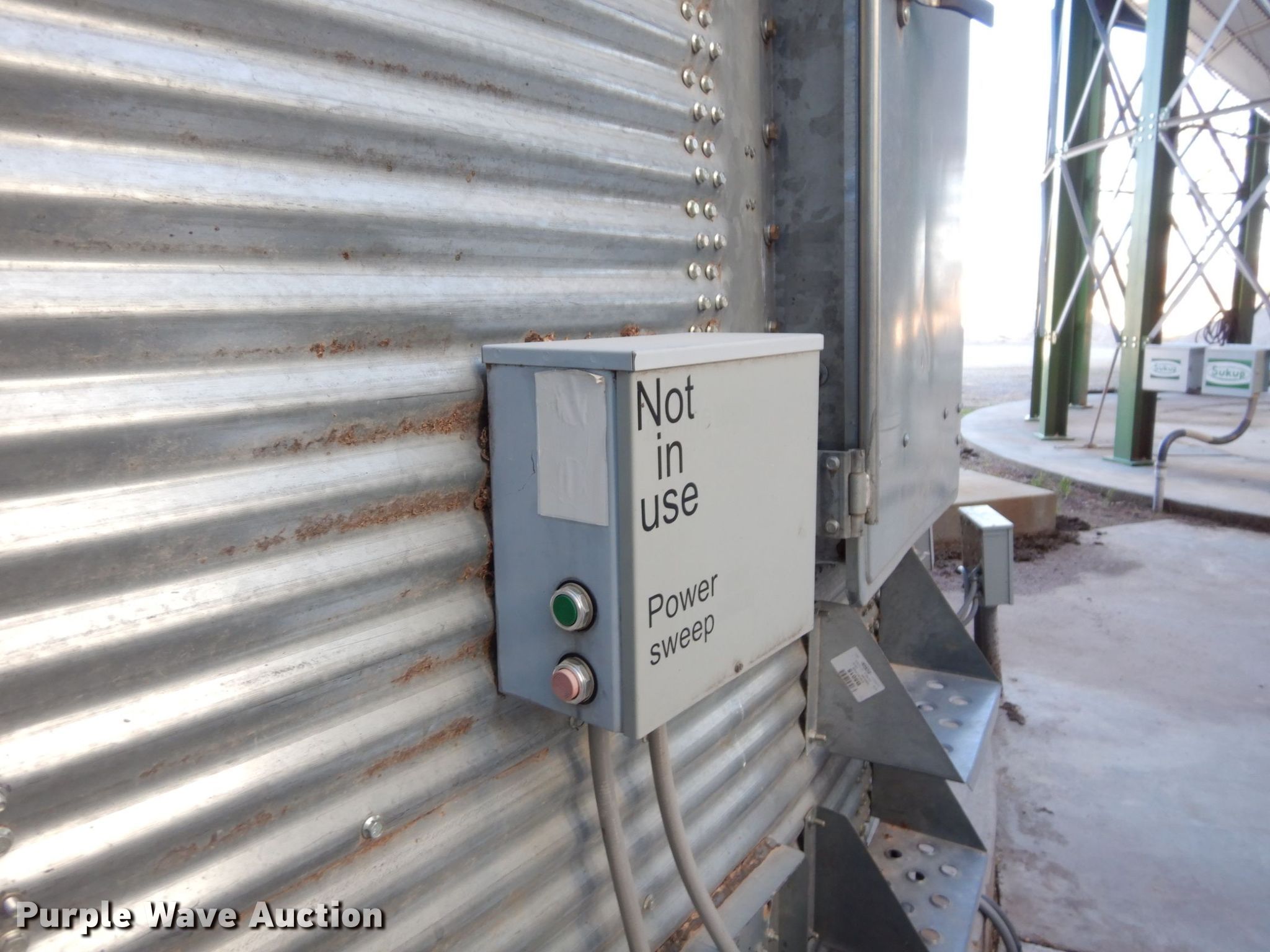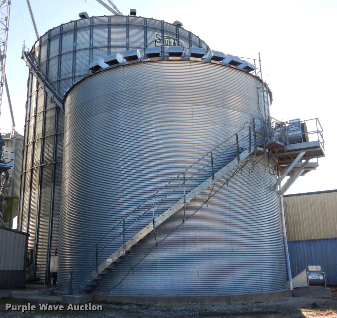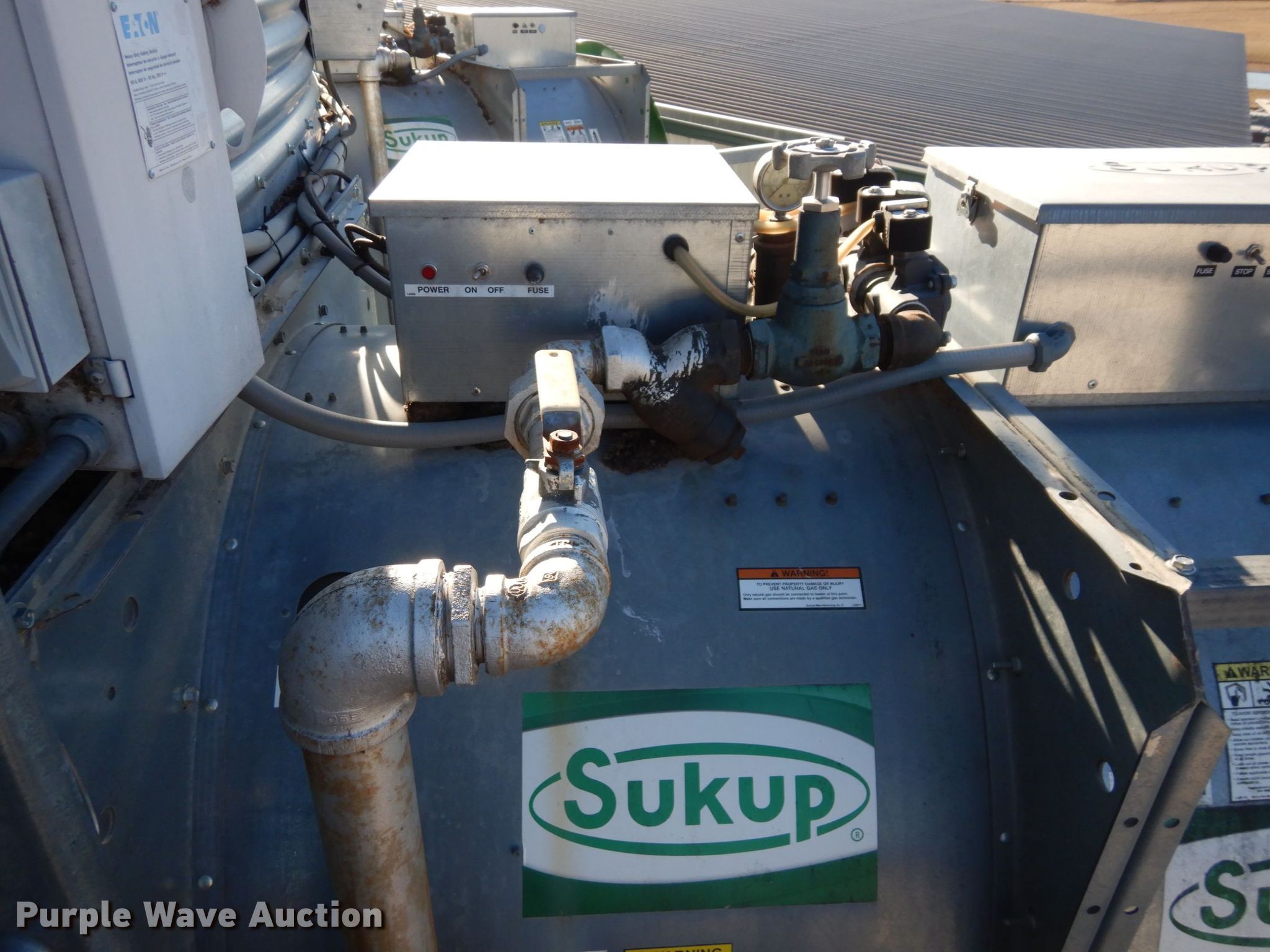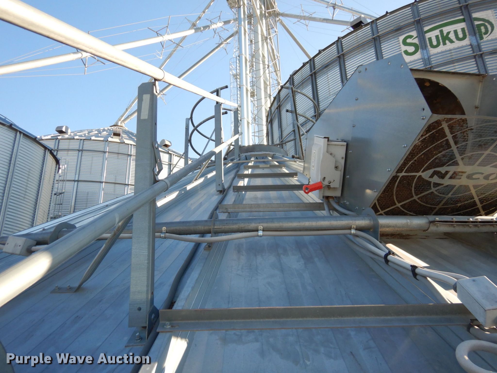 Purple Wave is selling a used Other Grain or Fertilizer Handling in Kansas. This item is a 2014 AGI Ezee-Dry grain bin drying system with the following: MFS Stormor grain bin, 36' diameter, (10) narrow rings, (2) Sukup fans, 30 HP, Driers, Natural gas fired,, Sukup controllers, Sukup U-trough unloader, Floor fan, 5 HP, Stairs, Control panel