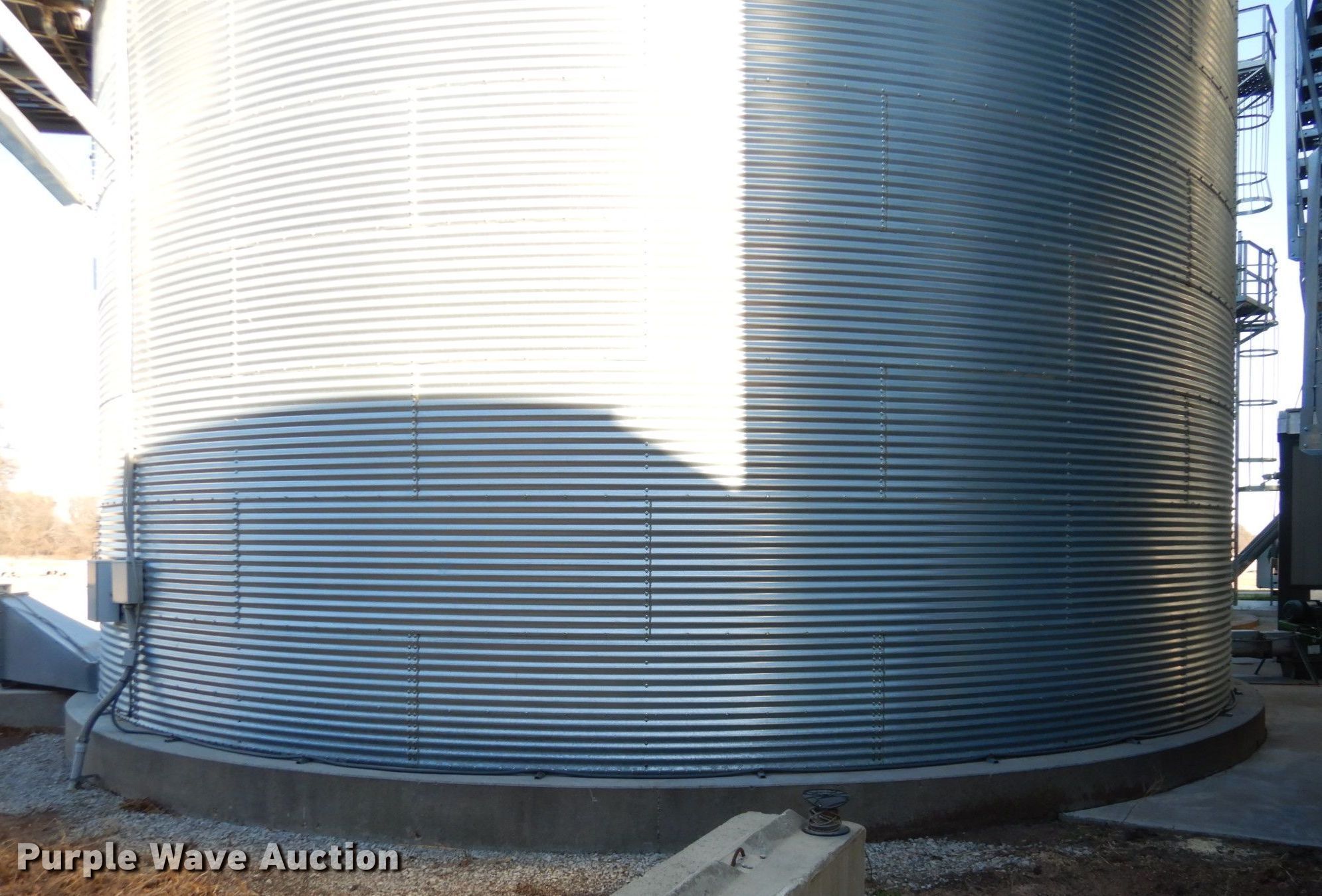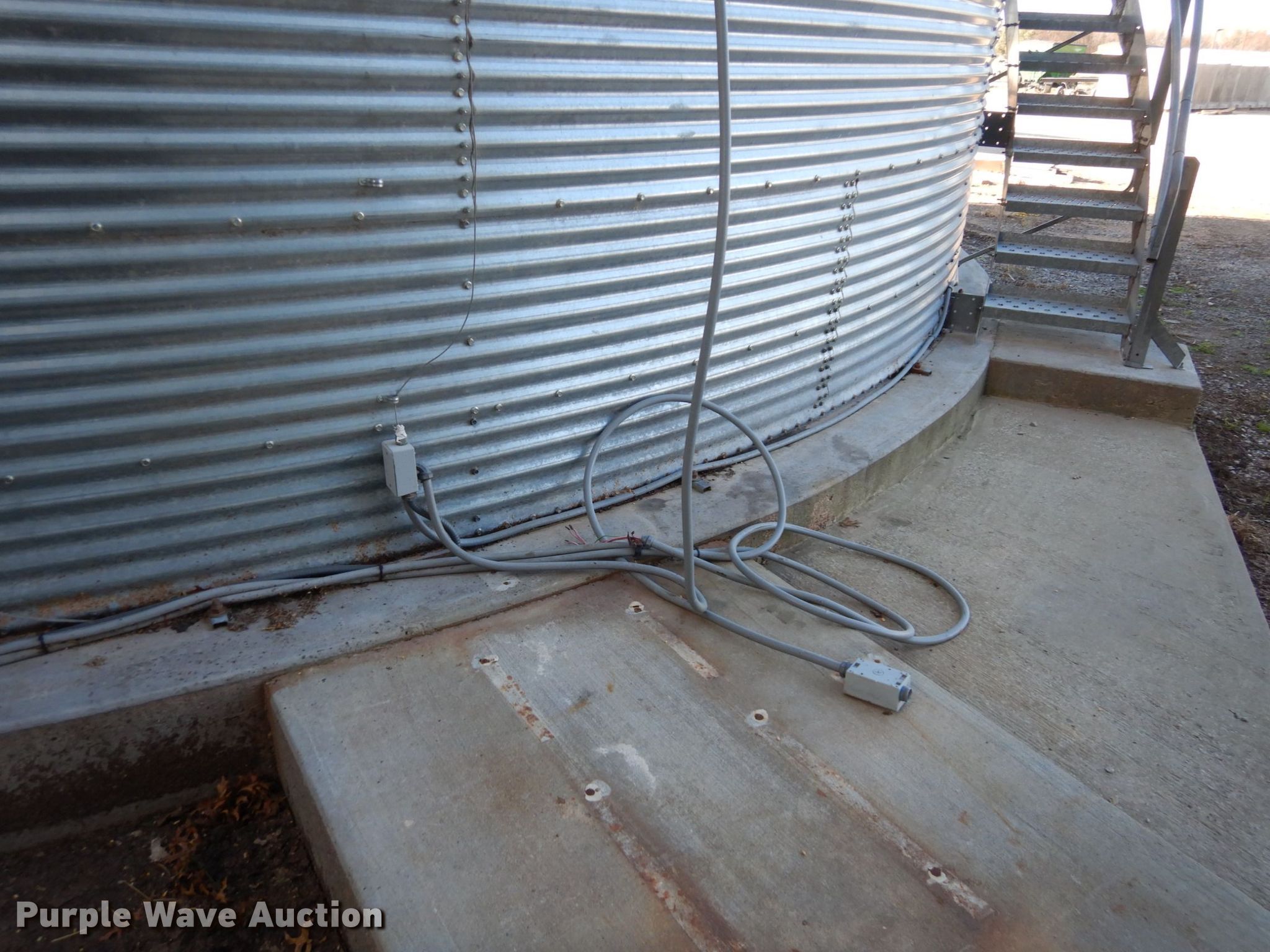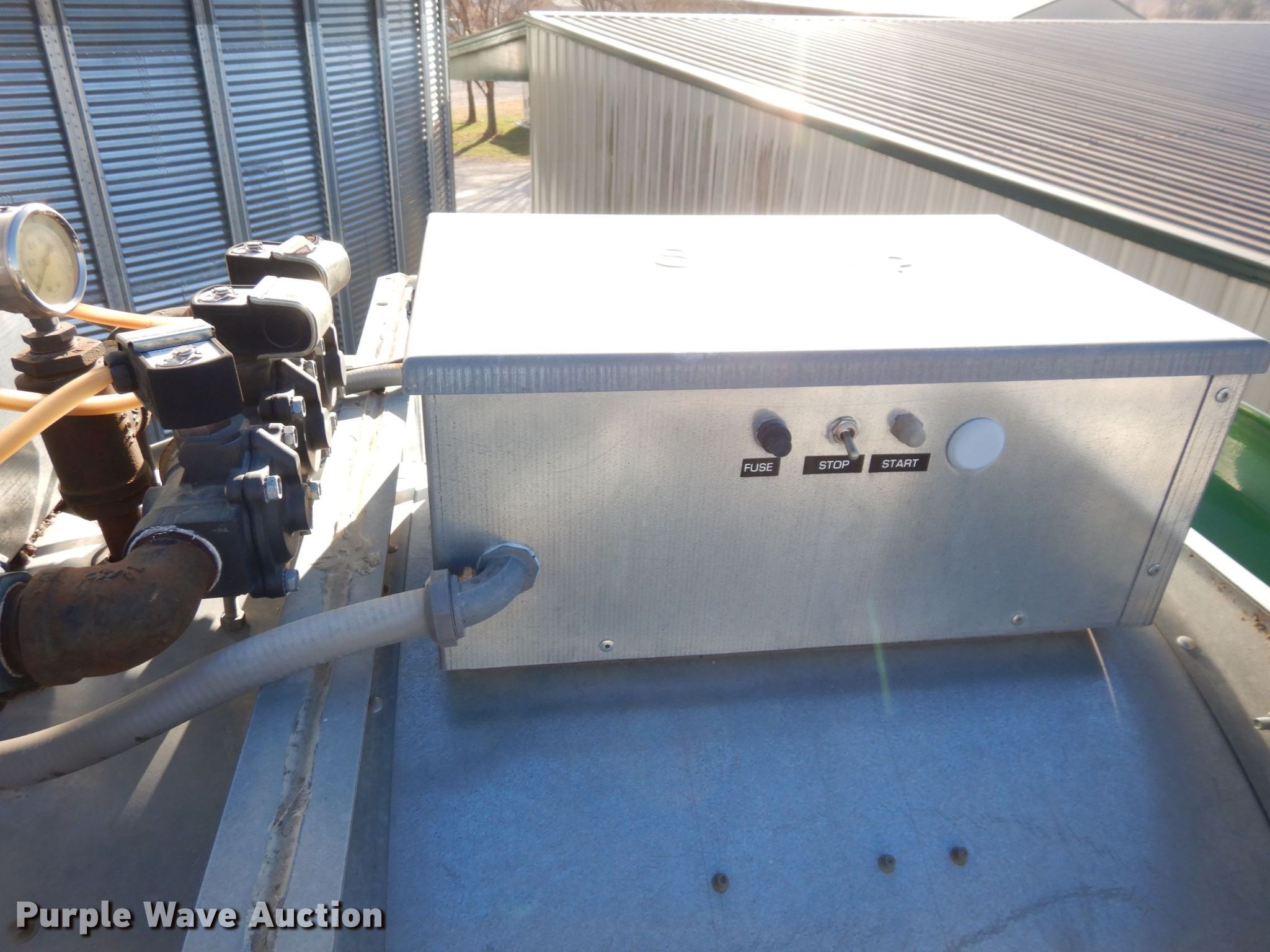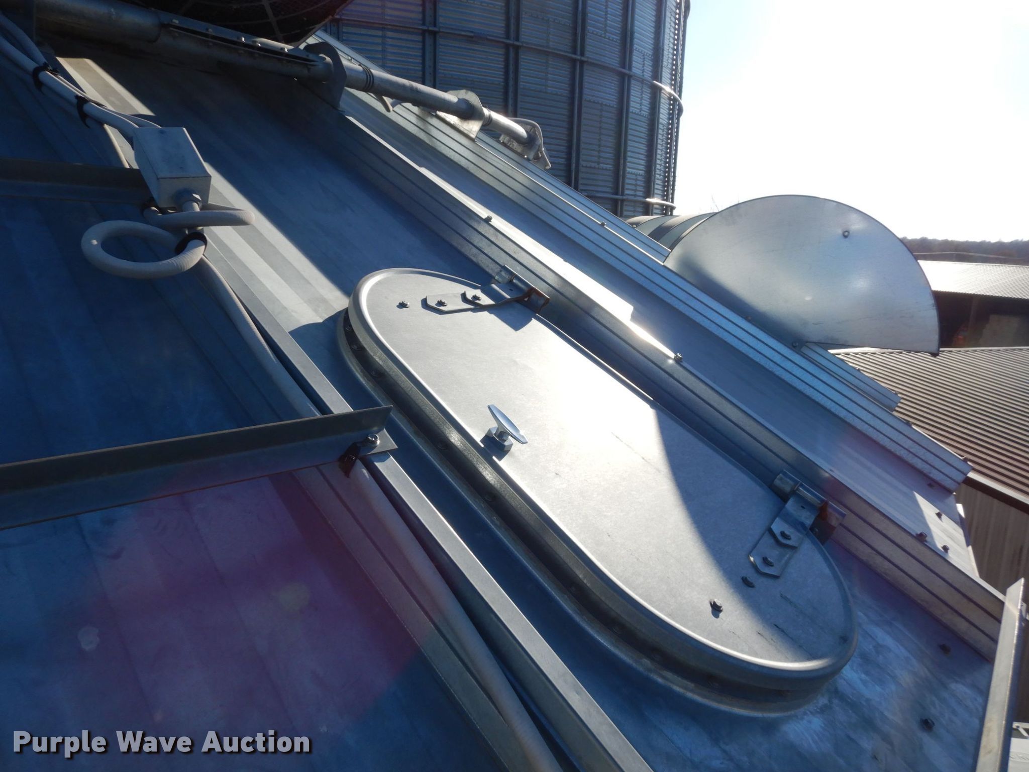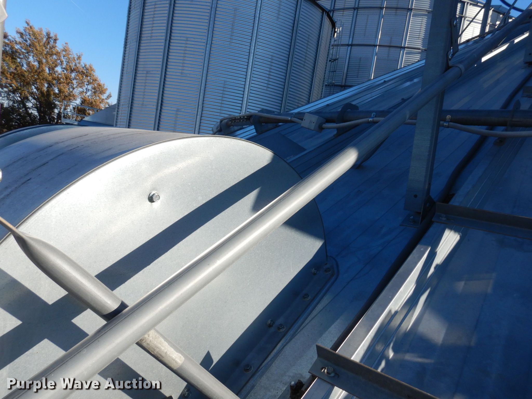Purple Wave is selling a used Other Grain or Fertilizer Handling in Kansas. This item is a 2014 AGI Ezee-Dry grain bin drying system with the following: MFS Stormor grain bin, 36' diameter, (10) narrow rings, (2) Sukup fans, 30 HP, Driers, Natural gas fired,, Sukup controllers, Sukup U-trough unloader, Floor fan, 5 HP, Stairs, Control panel