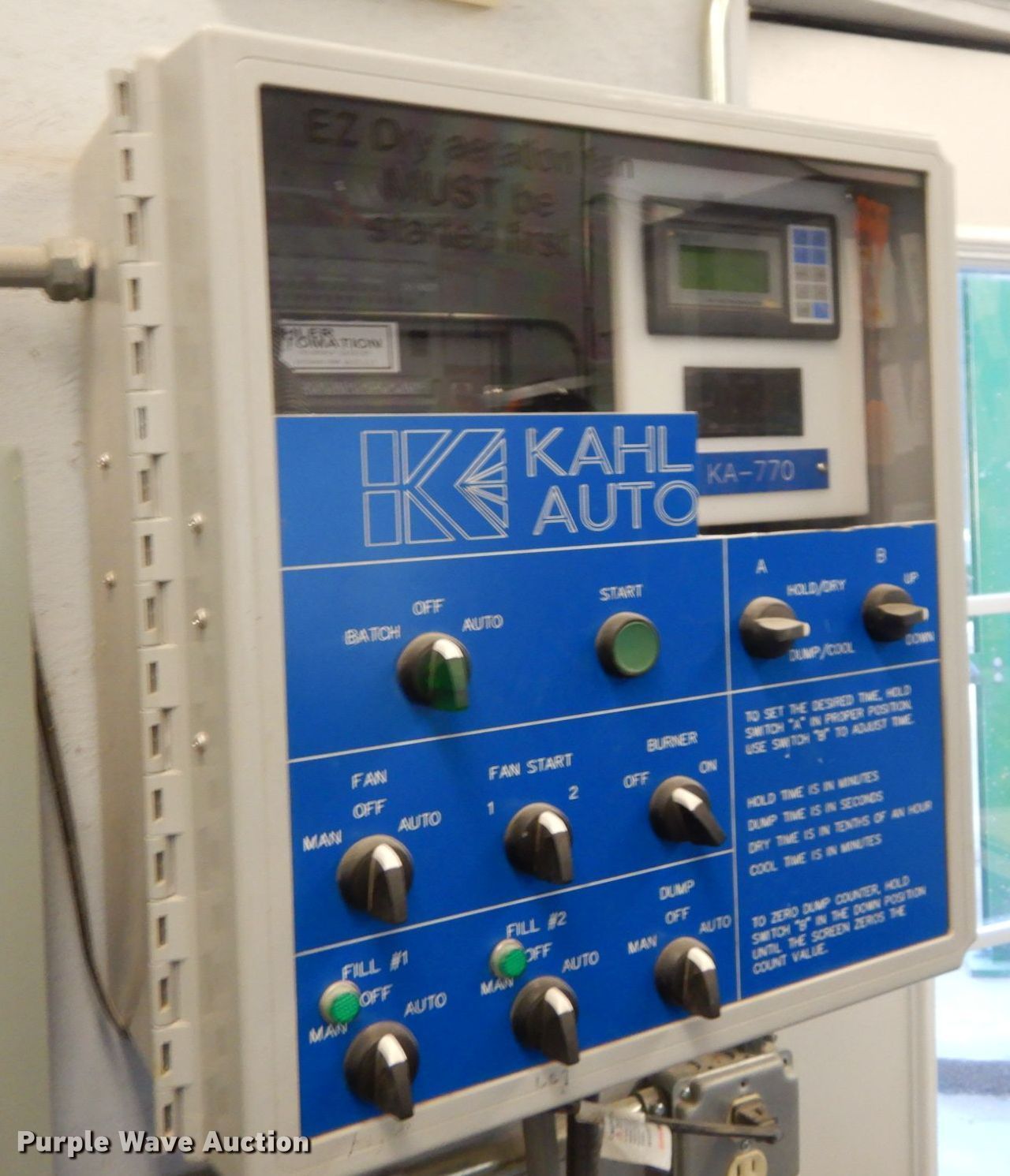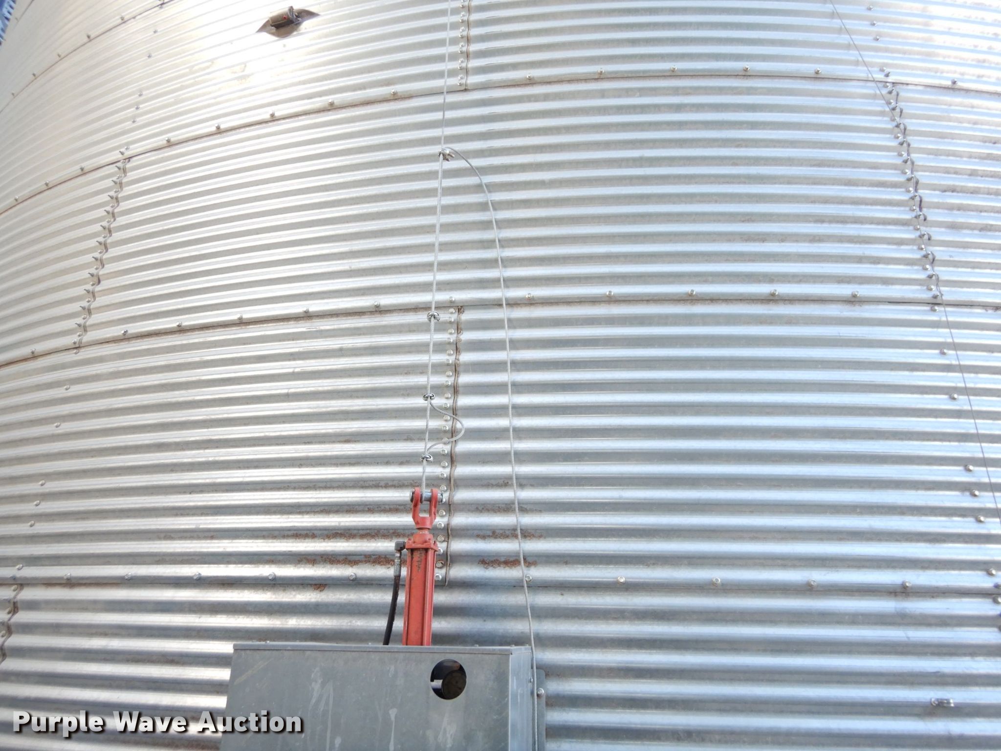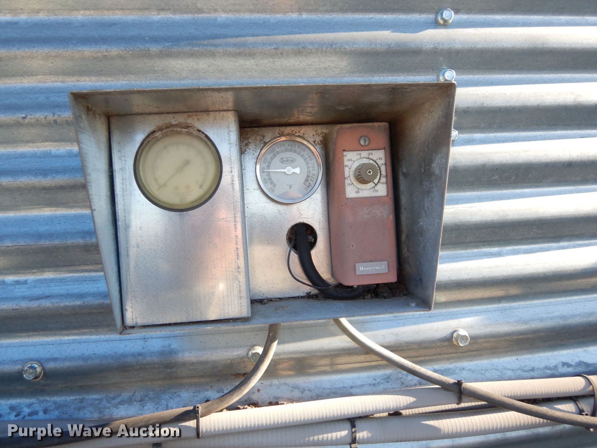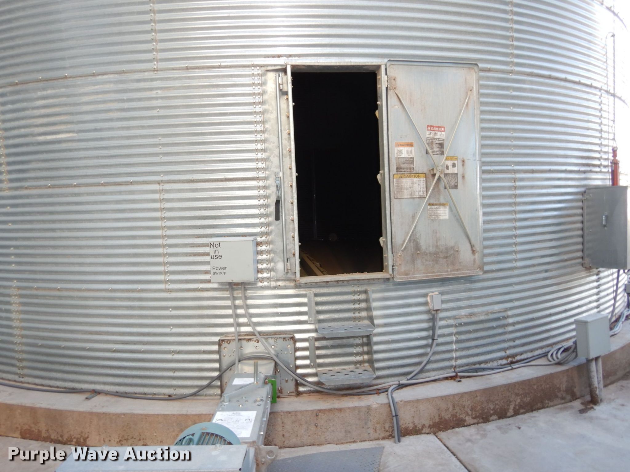 Purple Wave is selling a used Other Grain or Fertilizer Handling in Kansas. This item is a 2014 AGI Ezee-Dry grain bin drying system with the following: MFS Stormor grain bin, 36' diameter, (10) narrow rings, (2) Sukup fans, 30 HP, Driers, Natural gas fired,, Sukup controllers, Sukup U-trough unloader, Floor fan, 5 HP, Stairs, Control panel