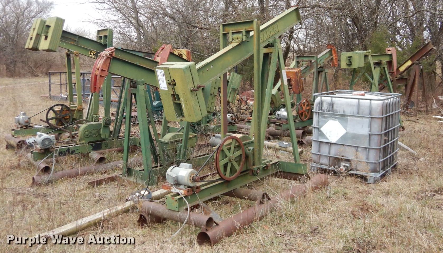 Purple Wave is selling a used Other Industrial or Business in Kansas. This item is a (13) pump jacks with the following: Genuine, (2) Churchill, (2) Cook, (5) Baker, Terrell, Jensen, Whitaker, No engine, IBC tote, Approx. 275 gallon capacity