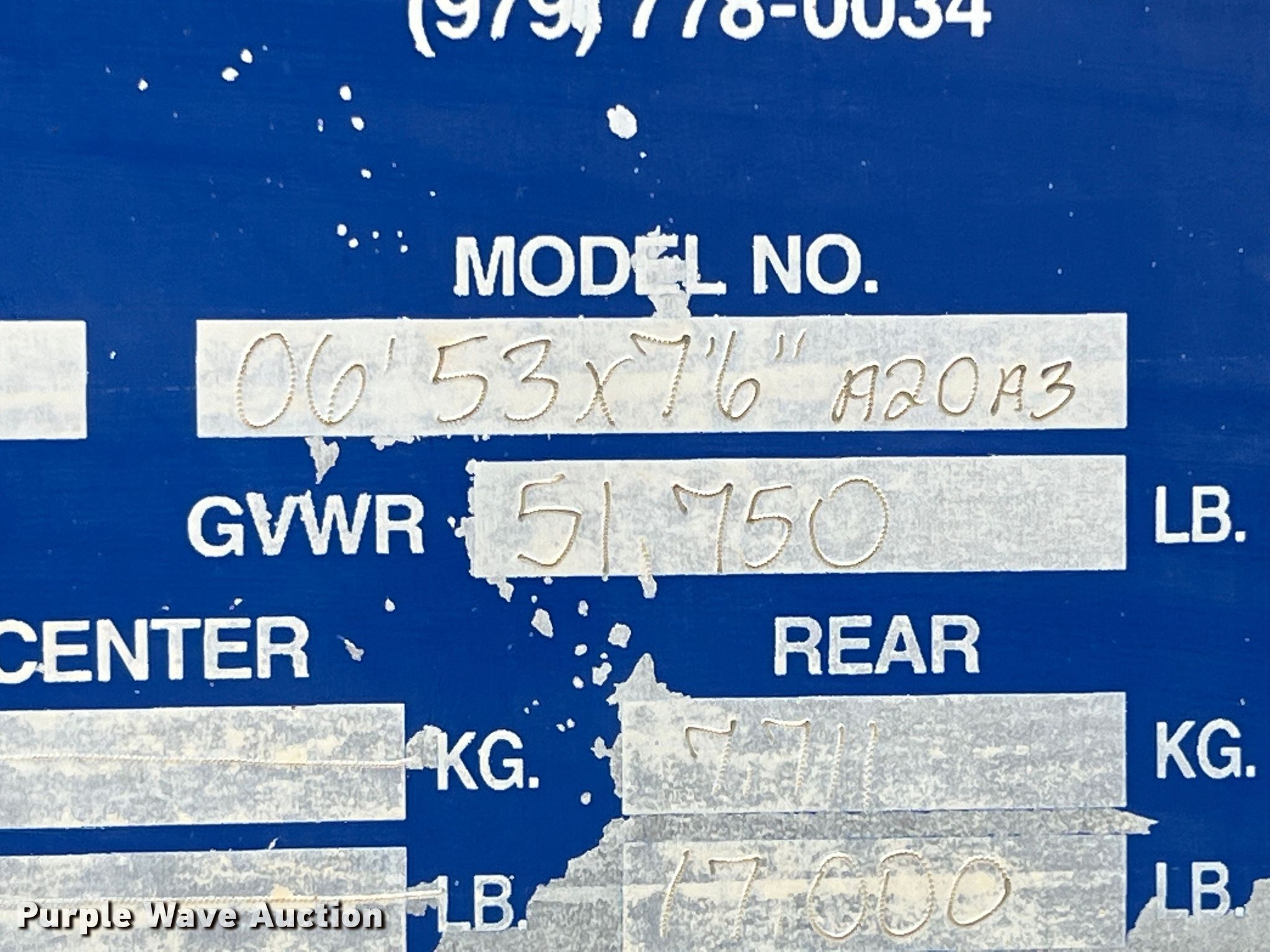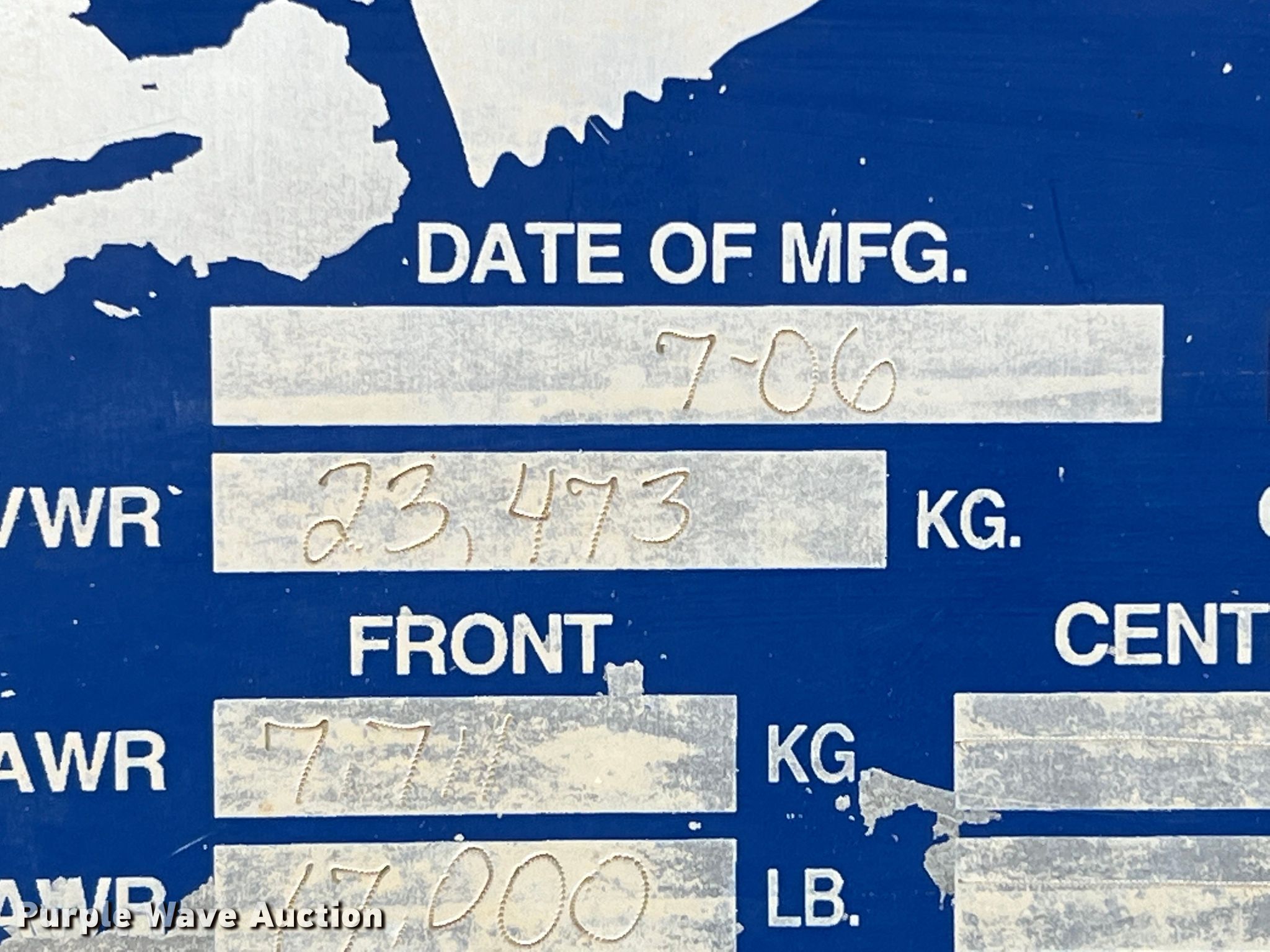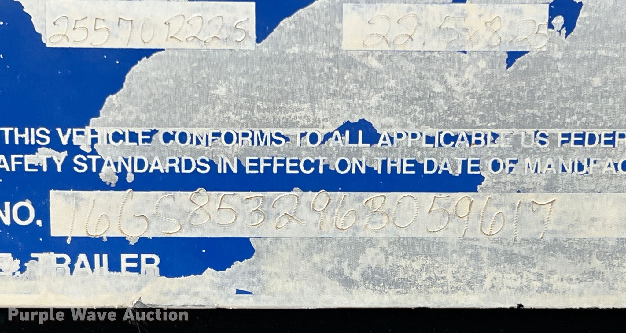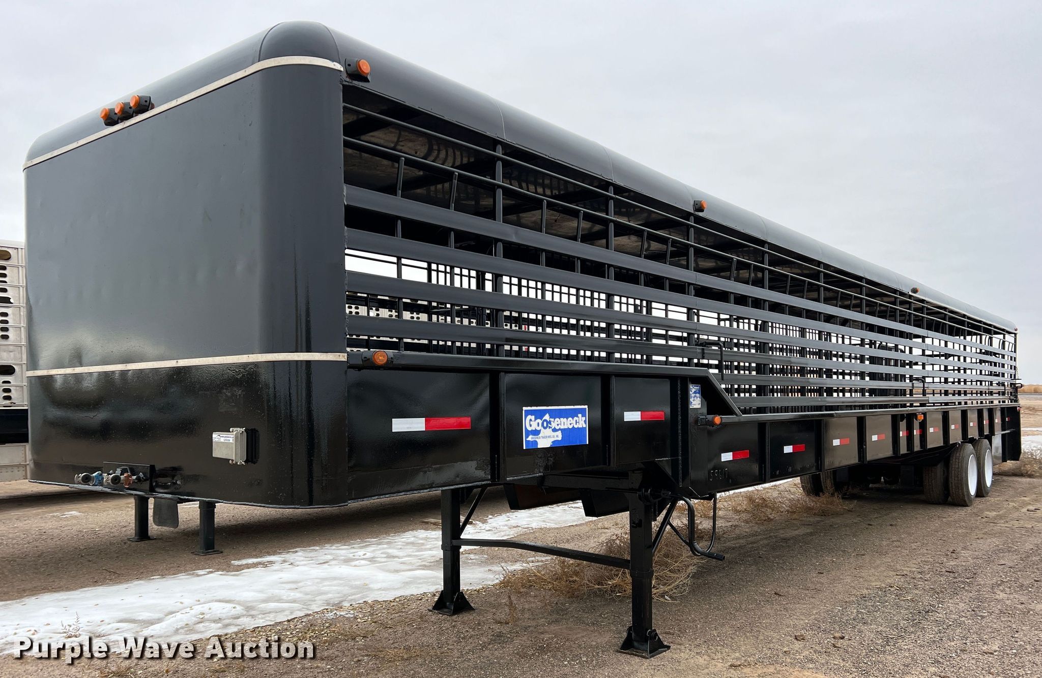 2006 Gooseneck livestock trailer. VIN: 16GS853296B059617. Dimensions Overall: 53' L x 96" W. Features Center gates: 2, Ground load. Chassis Landing gear: Single, Two speed, Suspension: Air, Brakes: Air, Axles: Tandem, GVWR: 51,750 lbs. Tires Steel wheels, Size: 255/70R22.5. Kansas title. Title distribution may be delayed up to 14 days from verification of funds. Premier Alfalfa Inc.. 319 W City Limits St. Hugoton, KS 67951