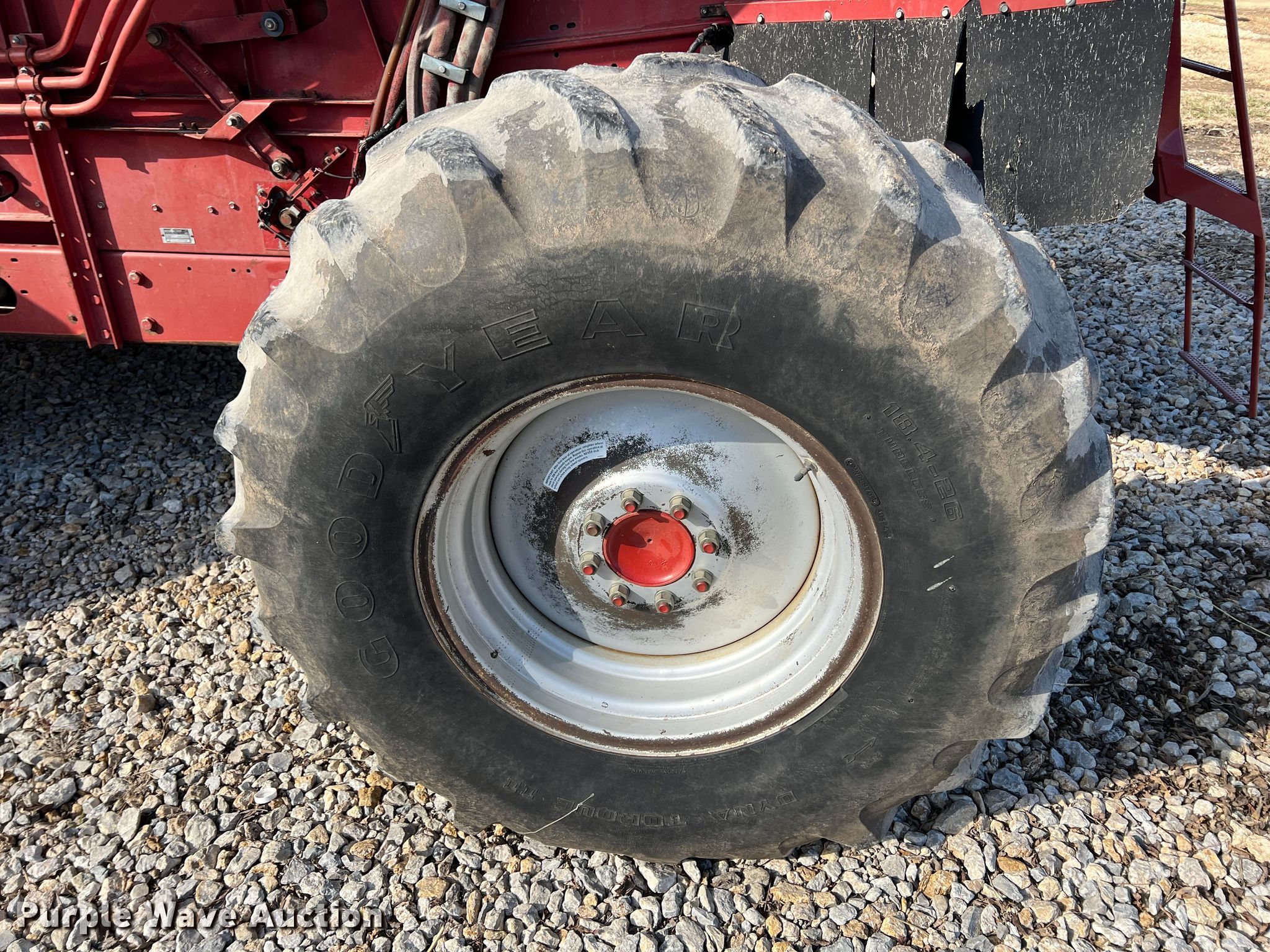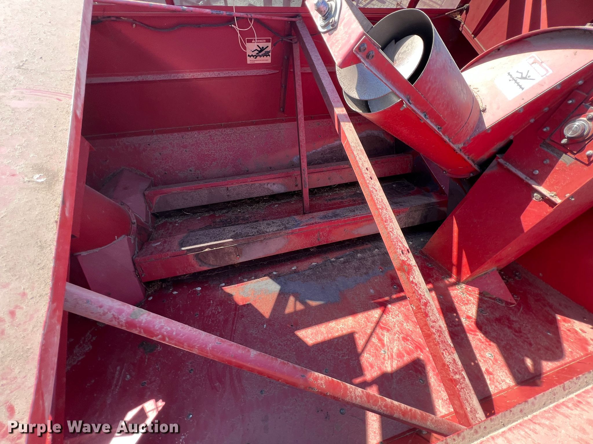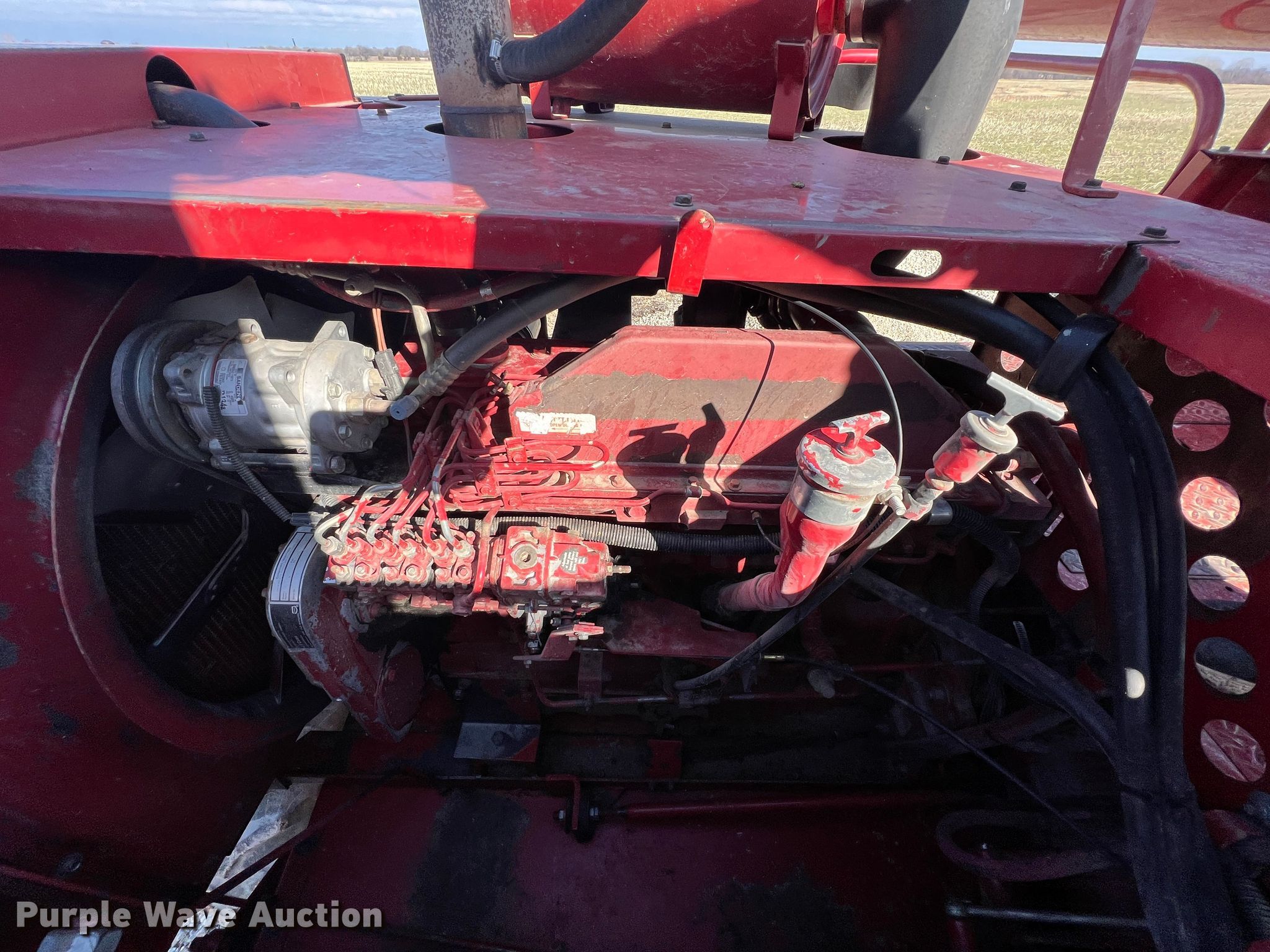1994 Case IH 1688 RWA combine. Engine hours: 5,704 on meter, Serial: JJC0122260. Engine Cylinders: 6, Fuel type: Diesel. Transmission Hydrostatic, 3F - 3R. Interior AC, Heat. Features Feederhouse: Reverser , Lateral tilt, Variable speed, Concaves: Small wire, Large wire, Rotor speeds: 2, Chaff spreader, Straw chopper, Bin: Extensions, Unloading auger length: 18'. Tires Front: 800/65R32, Rear: 18.4-26. 22530 Irving Rd. Chanute, KS 66720