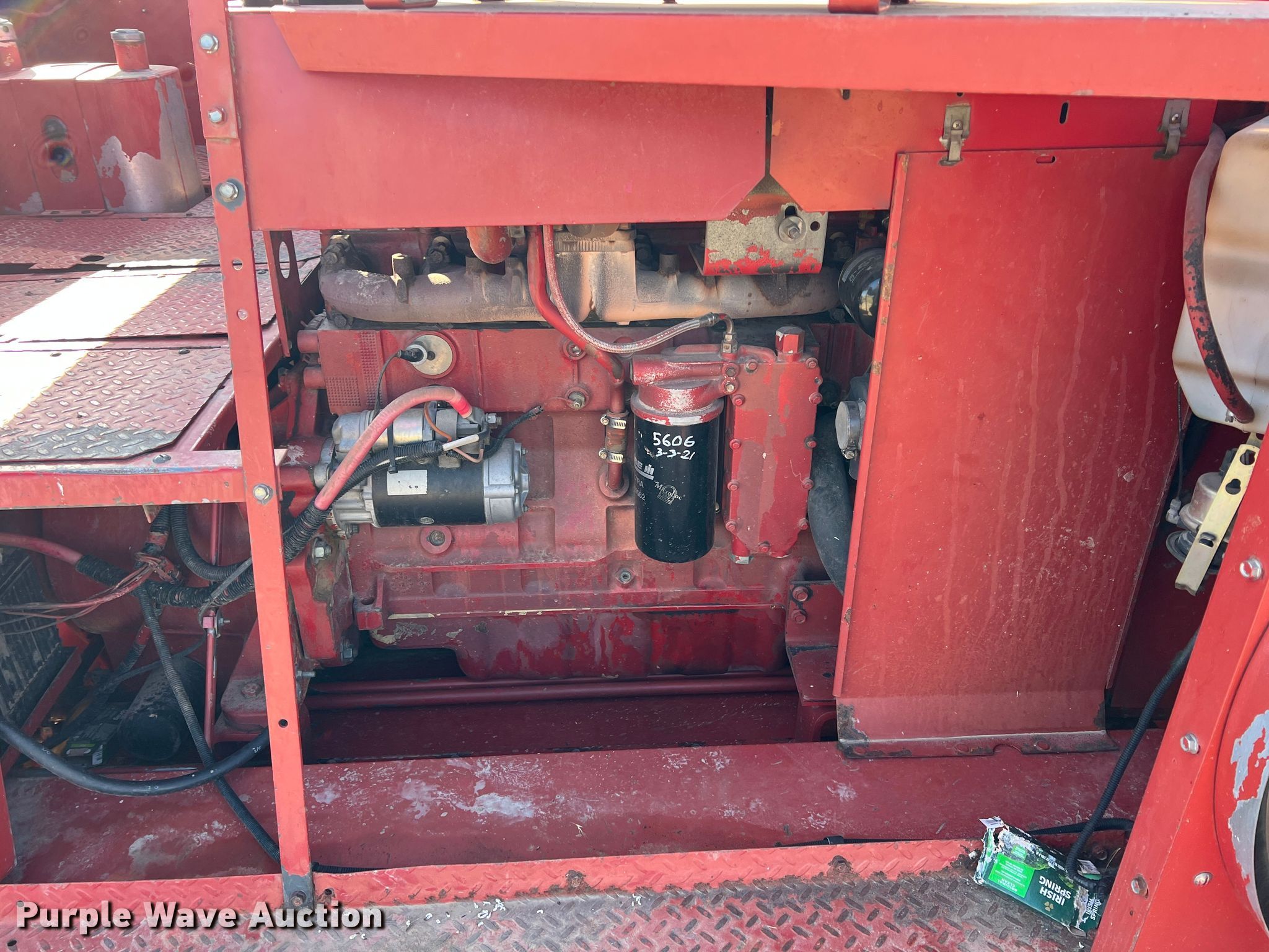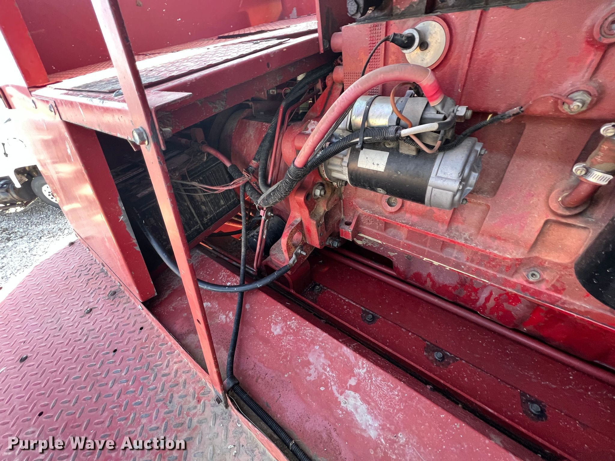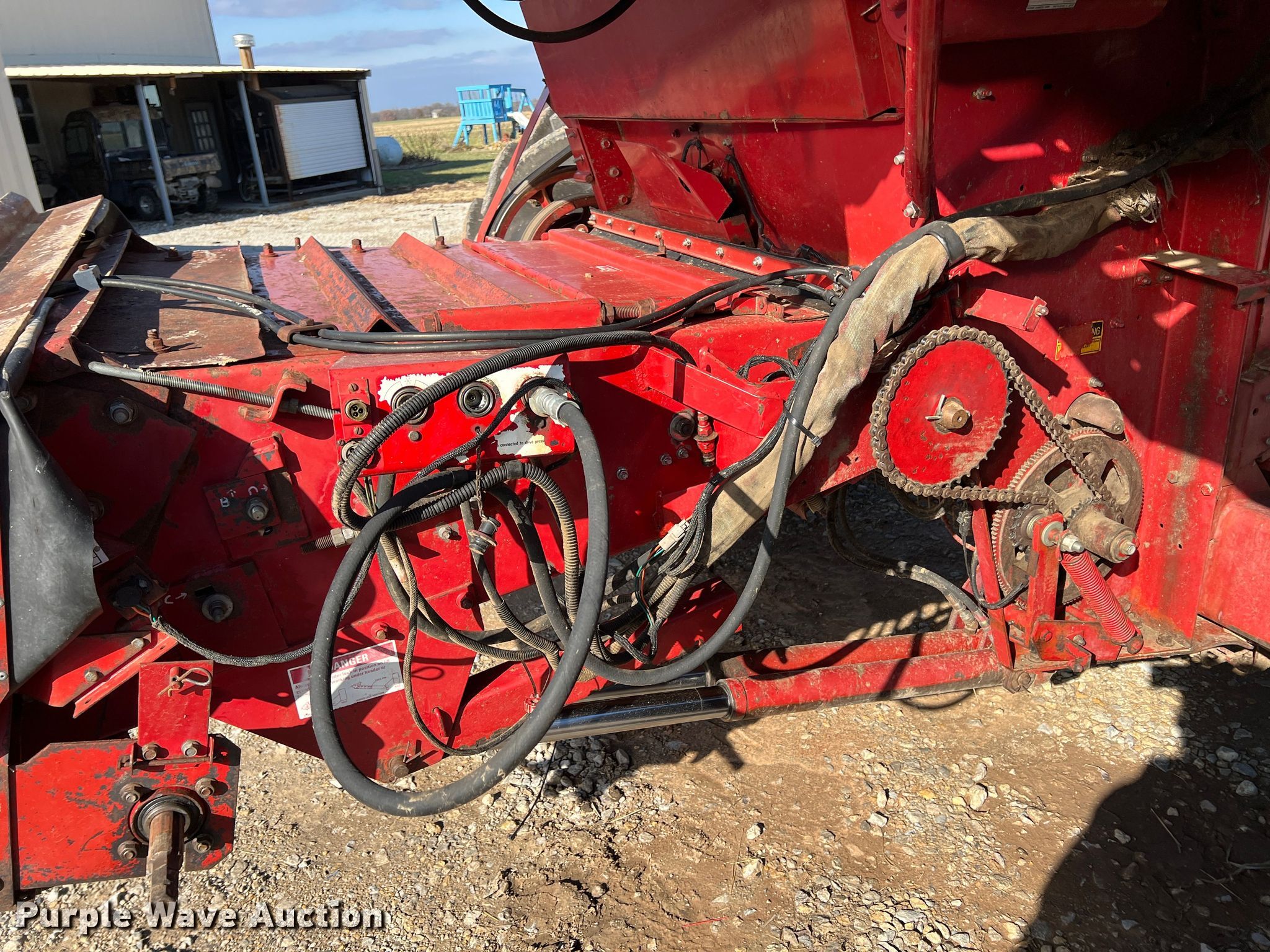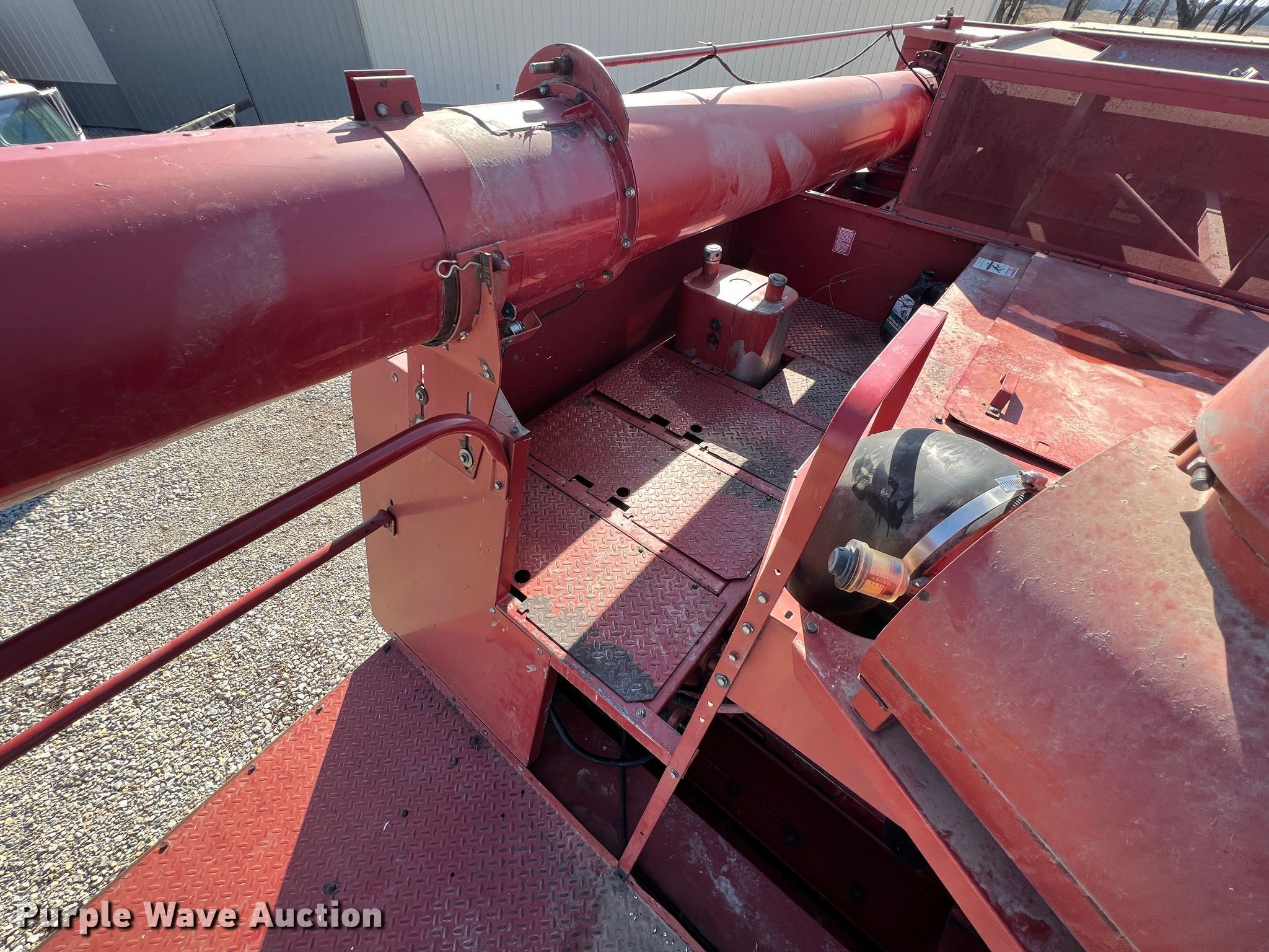 1994 Case IH 1688 RWA combine. Engine hours: 5,704 on meter, Serial: JJC0122260. Engine Cylinders: 6, Fuel type: Diesel. Transmission Hydrostatic, 3F - 3R. Interior AC, Heat. Features Feederhouse: Reverser , Lateral tilt, Variable speed, Concaves: Small wire, Large wire, Rotor speeds: 2, Chaff spreader, Straw chopper, Bin: Extensions, Unloading auger length: 18'. Tires Front: 800/65R32, Rear: 18.4-26. 22530 Irving Rd. Chanute, KS 66720