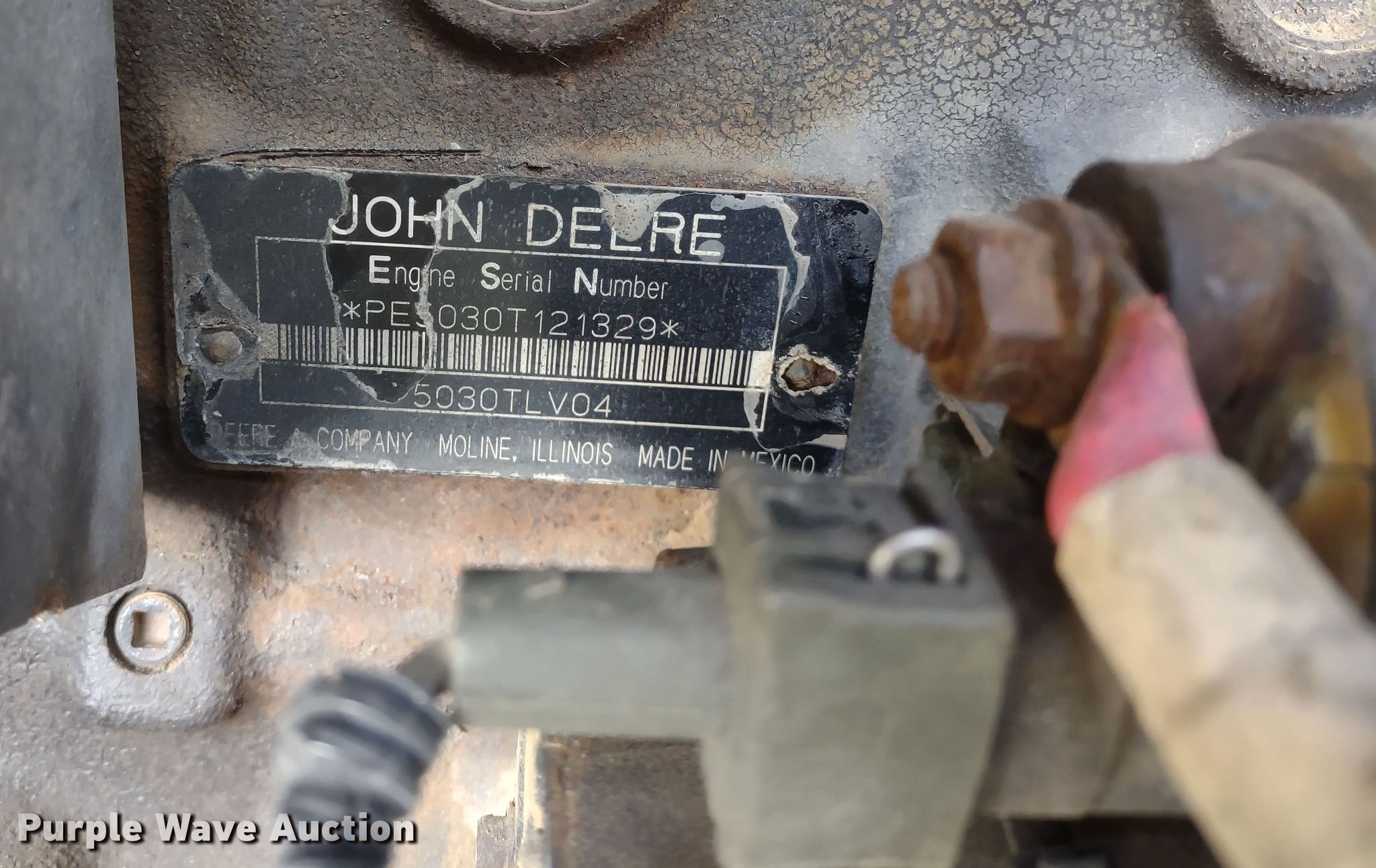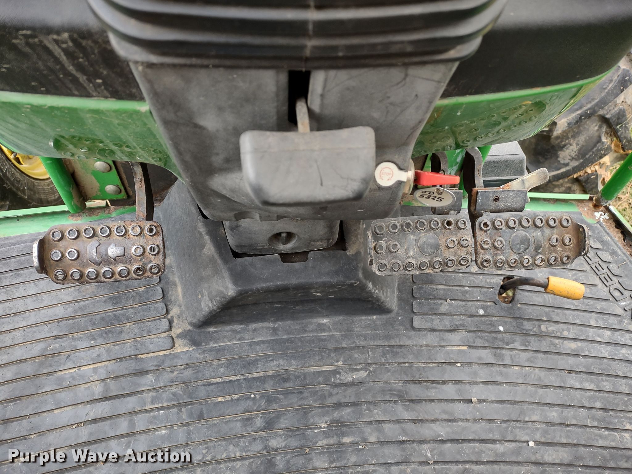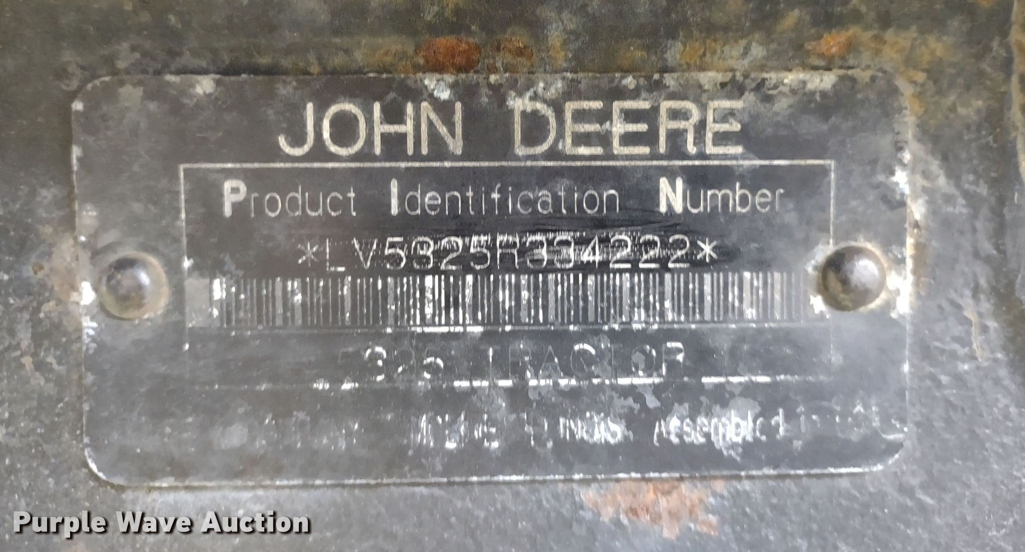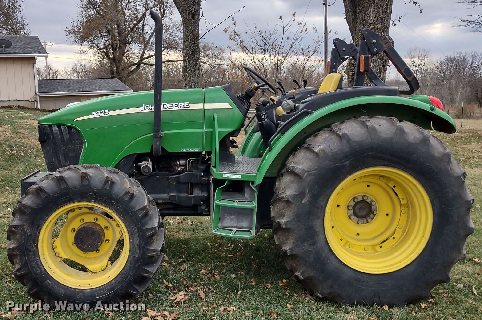 2006 John Deere 5325 MFWD tractor. Hours: 6,879 on meter, Serial: LV5325R334222. Engine John Deere 5030TLV04, Serial: PE5030T121329, Displacement: 3.0L, Cylinders: 5, Fuel type: Diesel. Transmission Synchro, 12F - 12R, Left-hand reverser, Differential lock. Features PTO: 540, Three point, Seven pin outlet, Hydraulic remote sets Front: 2, Rear: 2. Tires Front: 12.4-24, Rear: 18.4-30. 17000 East 215th Street. Peculiar, MO 64078