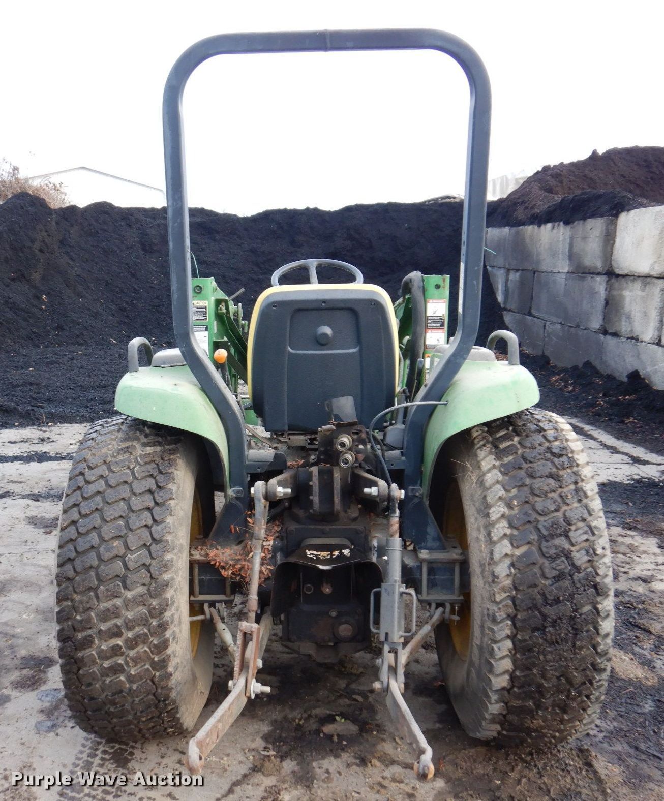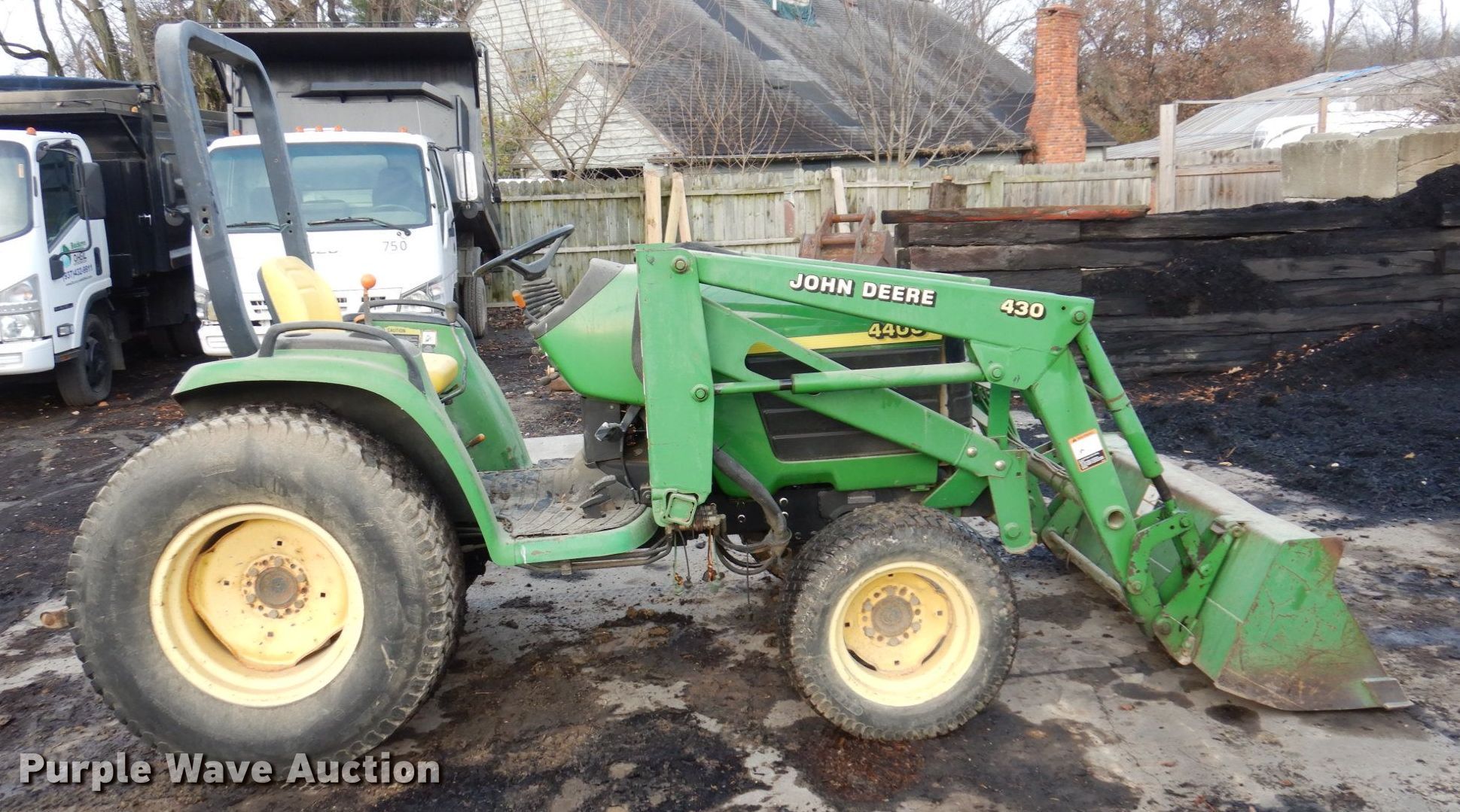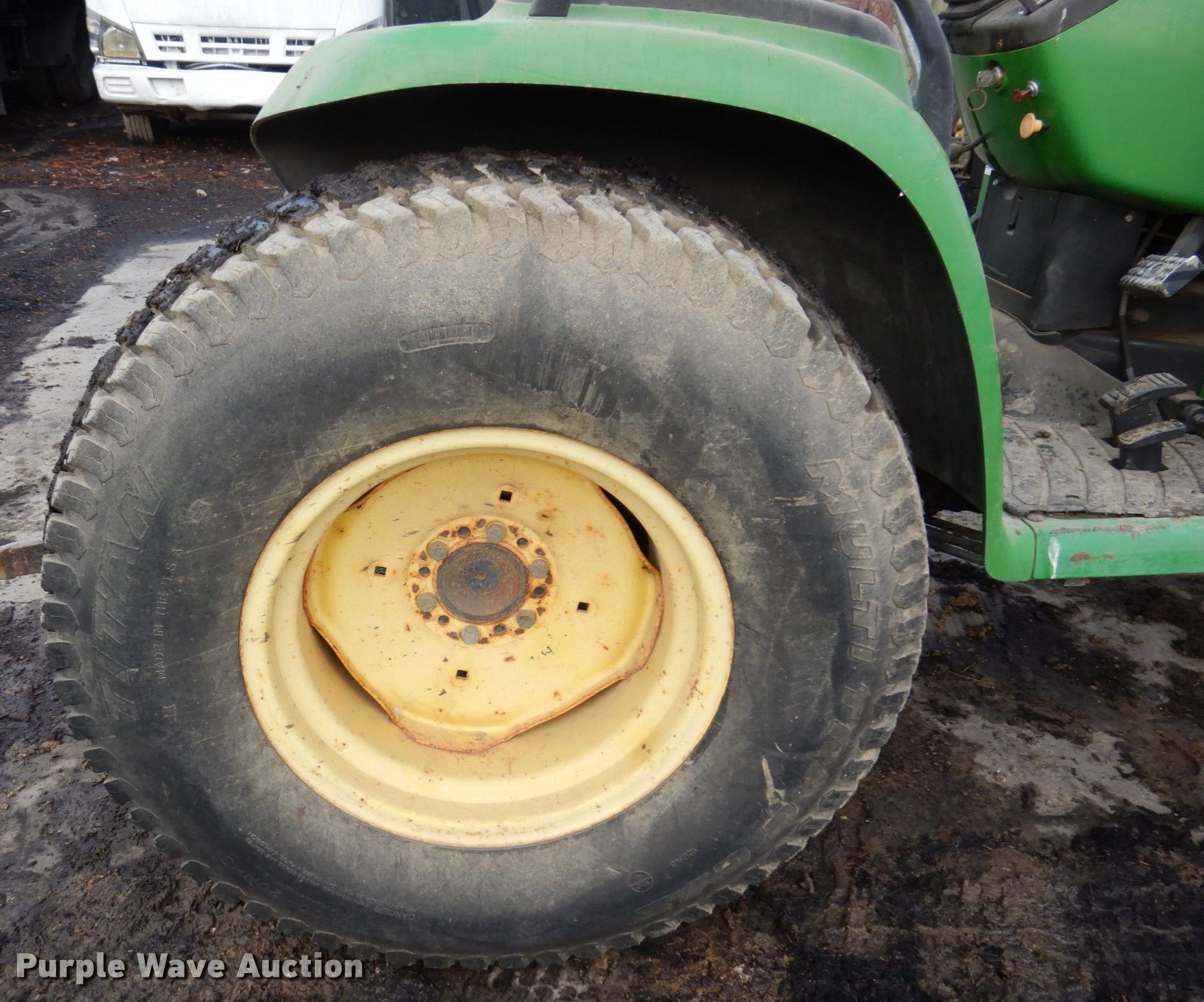 2000 John Deere 4400 MFWD tractor. Hours: 2,194 on meter, Serial: LV4400H341697. Engine Yanmar 3TN84, Cylinders: 3, Fuel type: Diesel. Transmission Hydrostatic, 3F - 3R, Differential lock. Features PTO: 540, Three point, Hydraulic remote sets Rear: 1, Loader John Deere 430, Quick attach, Controls: Joystick, Bucket Width: 62".. Tires Front: 27x8.5-15, Rear: 41x14-20. Oheil Irrigation Company. 2109 East Social Row Road. Dayton, OH 45458