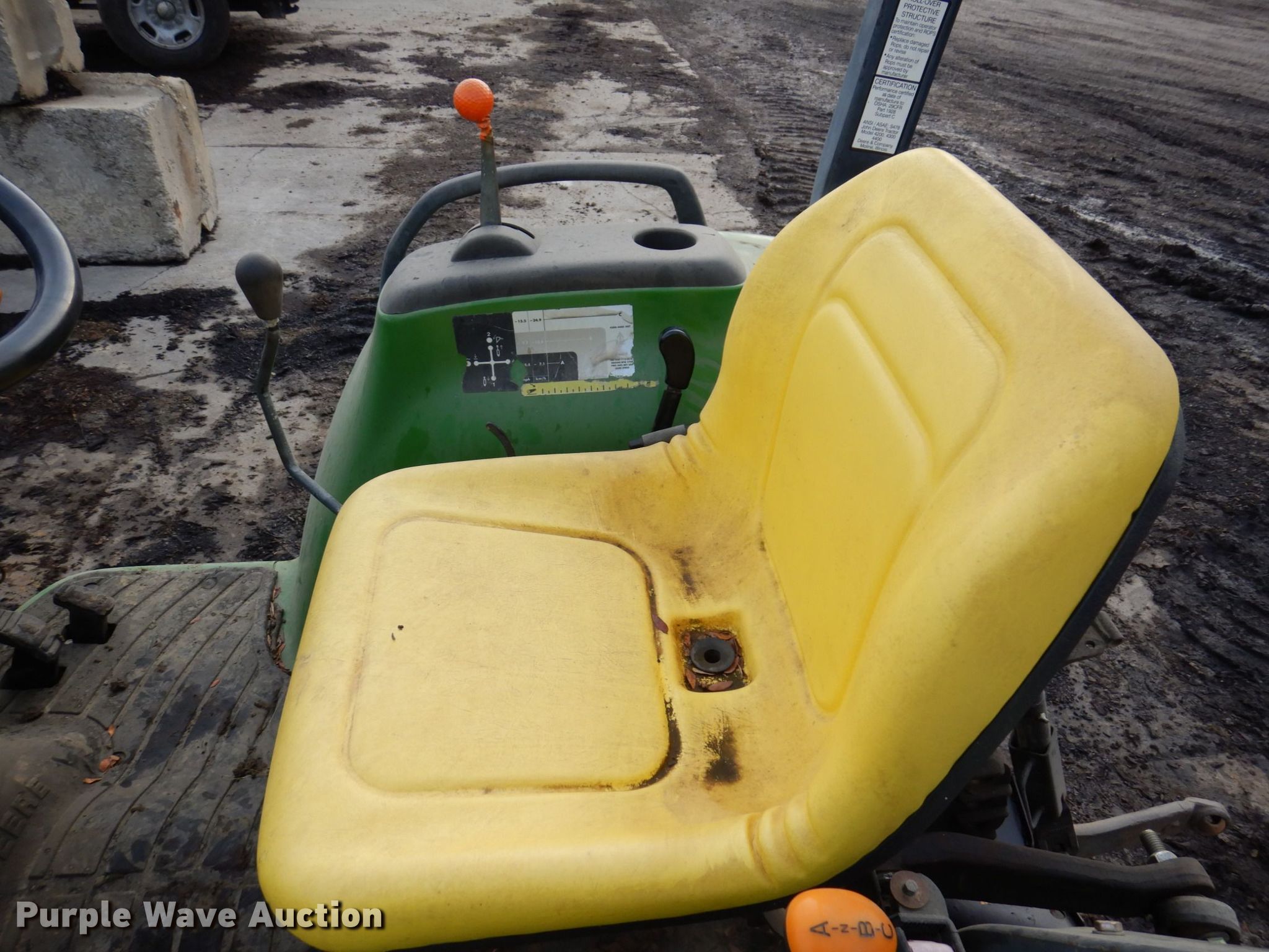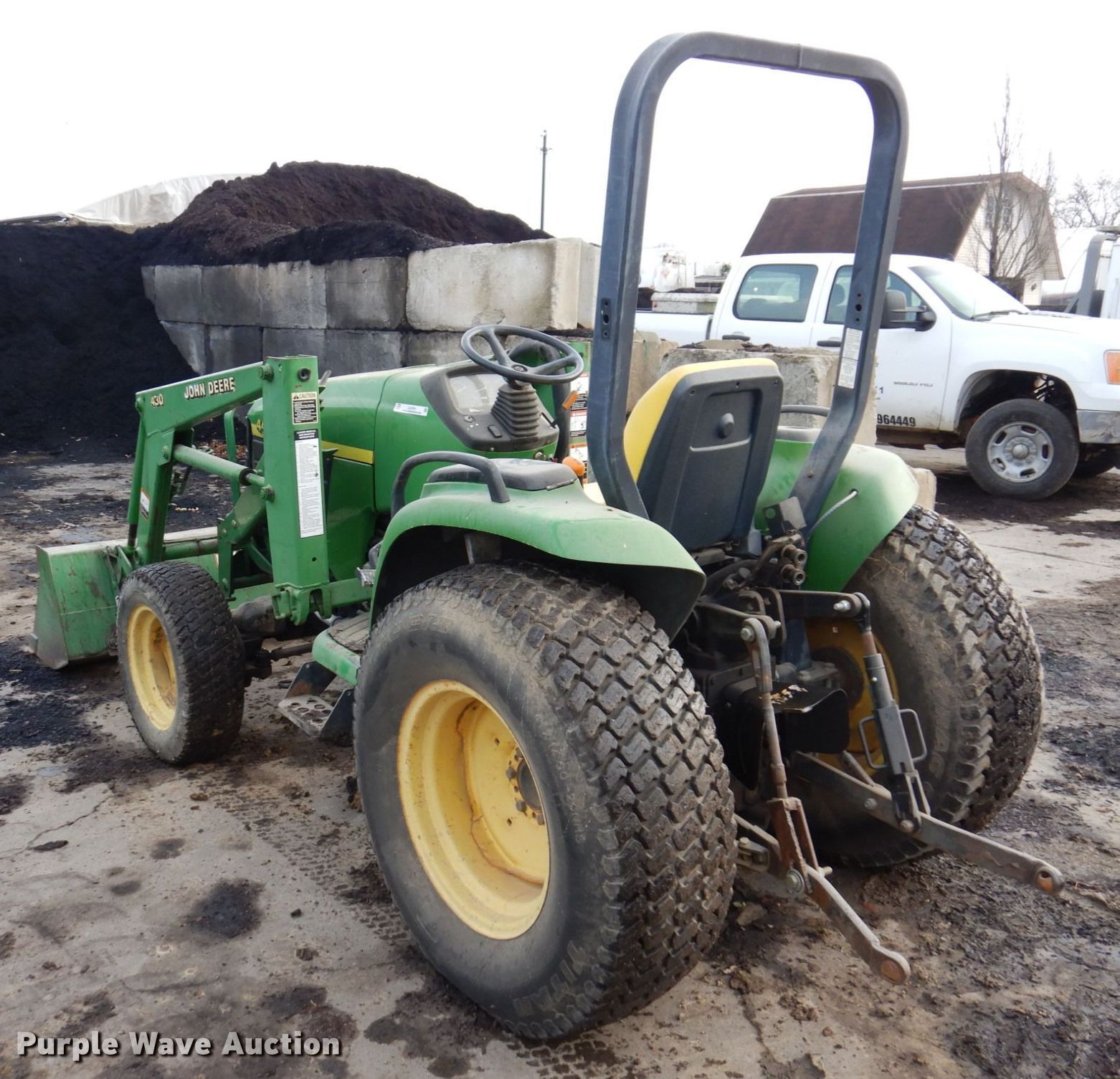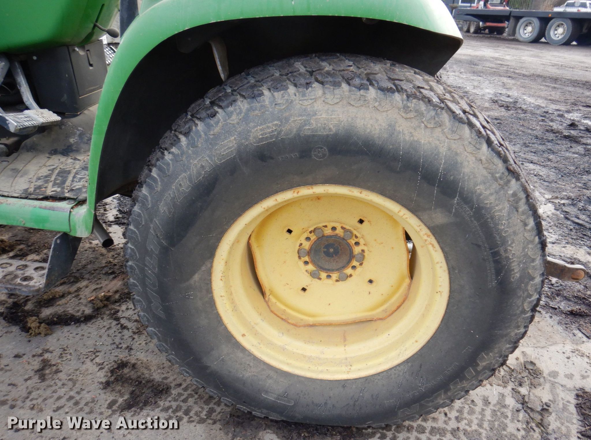 2000 John Deere 4400 MFWD tractor. Hours: 2,194 on meter, Serial: LV4400H341697. Engine Yanmar 3TN84, Cylinders: 3, Fuel type: Diesel. Transmission Hydrostatic, 3F - 3R, Differential lock. Features PTO: 540, Three point, Hydraulic remote sets Rear: 1, Loader John Deere 430, Quick attach, Controls: Joystick, Bucket Width: 62".. Tires Front: 27x8.5-15, Rear: 41x14-20. Oheil Irrigation Company. 2109 East Social Row Road. Dayton, OH 45458