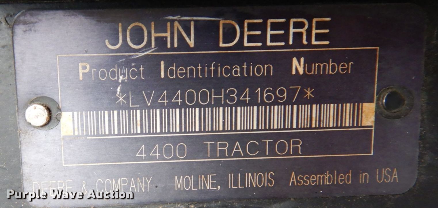 Purple Wave is selling a used Tractor in Ohio. This item is a 2000 John Deere 4400 MFWD tractor with the following: Hours: 2,194 on meter, Serial: LV4400H341697