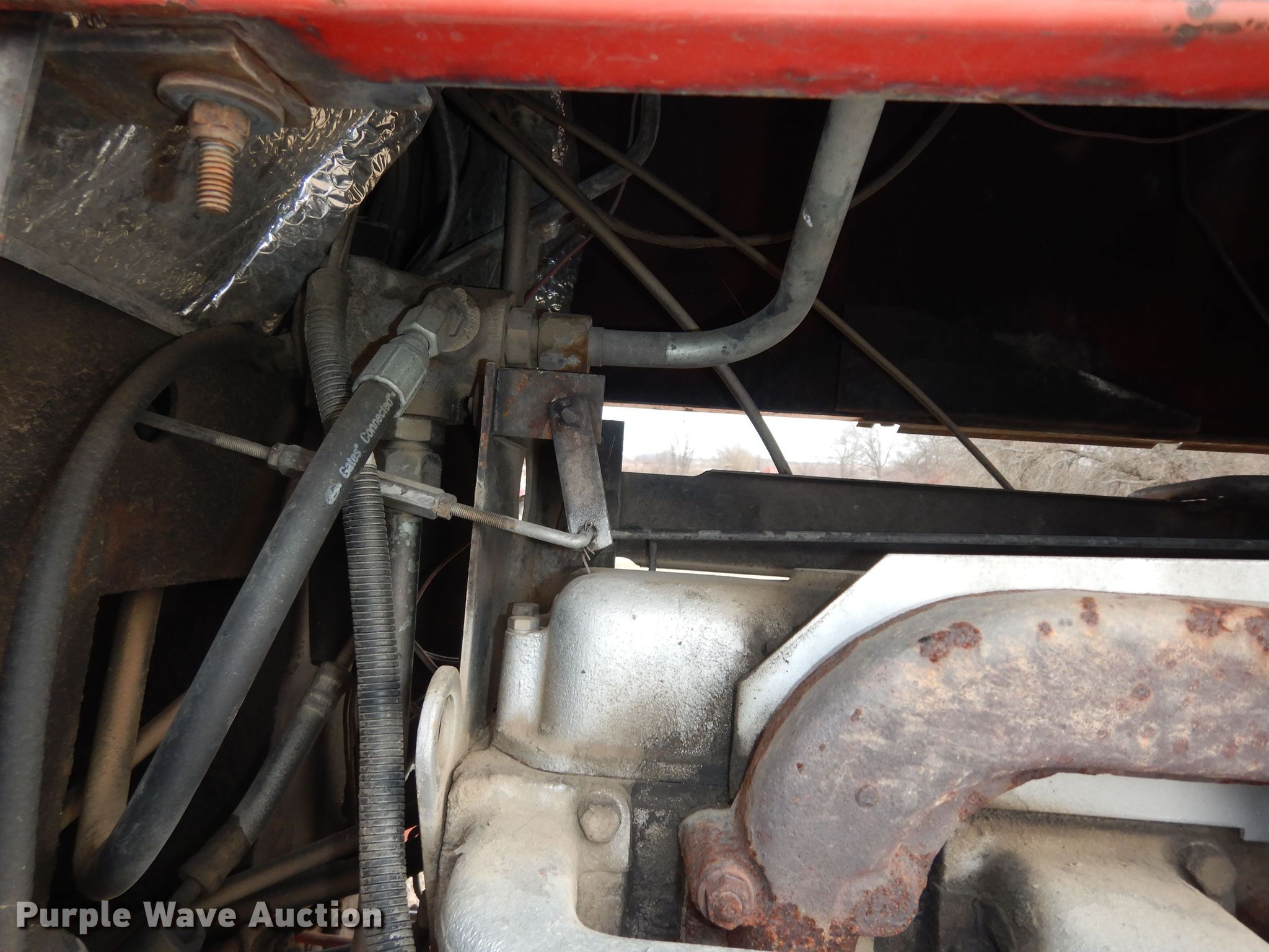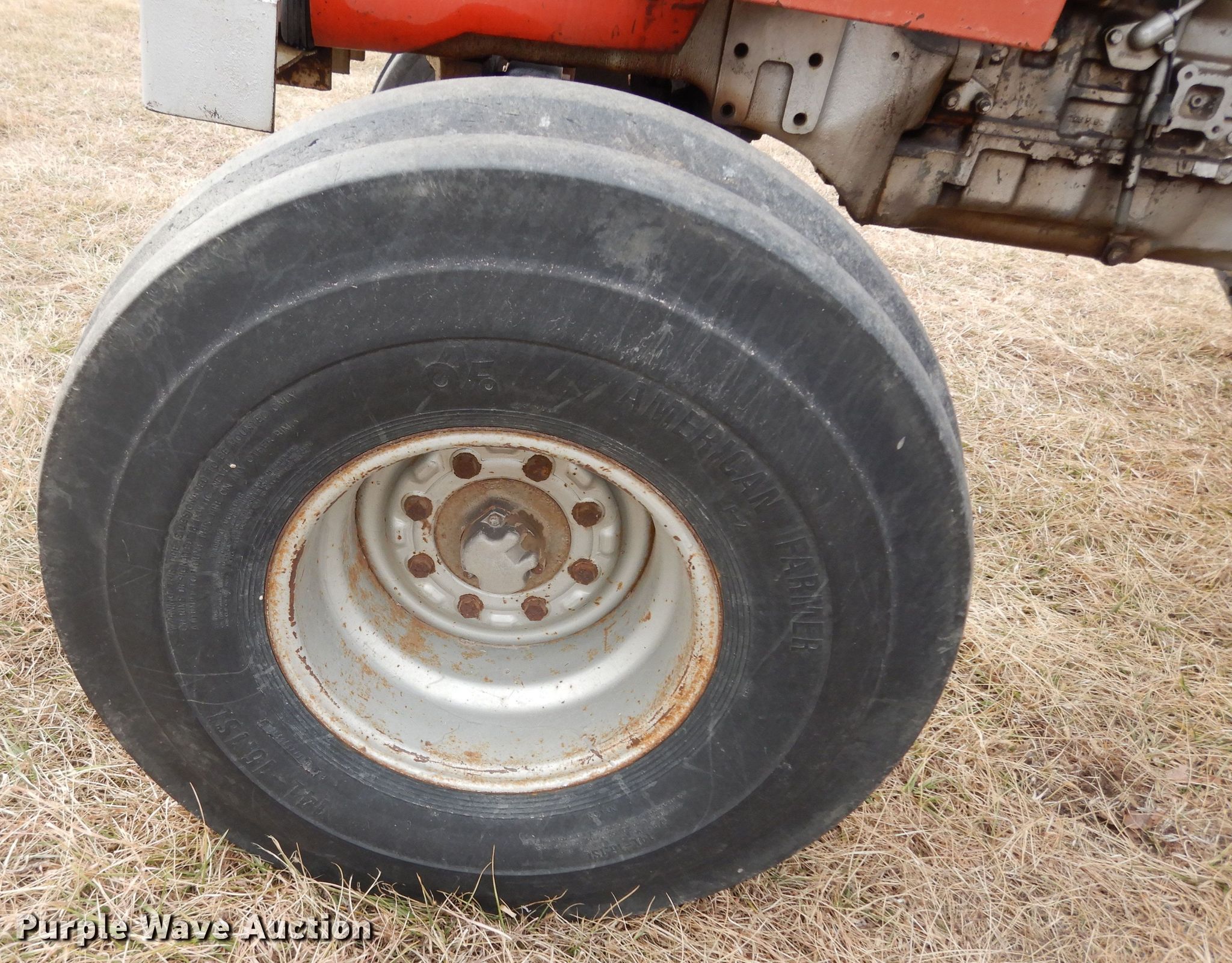 1977 Massey Ferguson 1105 tractor. Hours: 5,839 on meter, Serial: 9B68440. Engine Cylinders: 6, Fuel type: Diesel. Transmission Manual, 8F - 2R. Operators station AC, Heat. Features PTO: 540, Three point, Hydraulic remote sets Rear: 2. Tires Front: 14L-16.1, Rear: 18.4-38, Duals. Notes Non-operational three point, Non-operational Multi-power. Carbondale, KS 66414