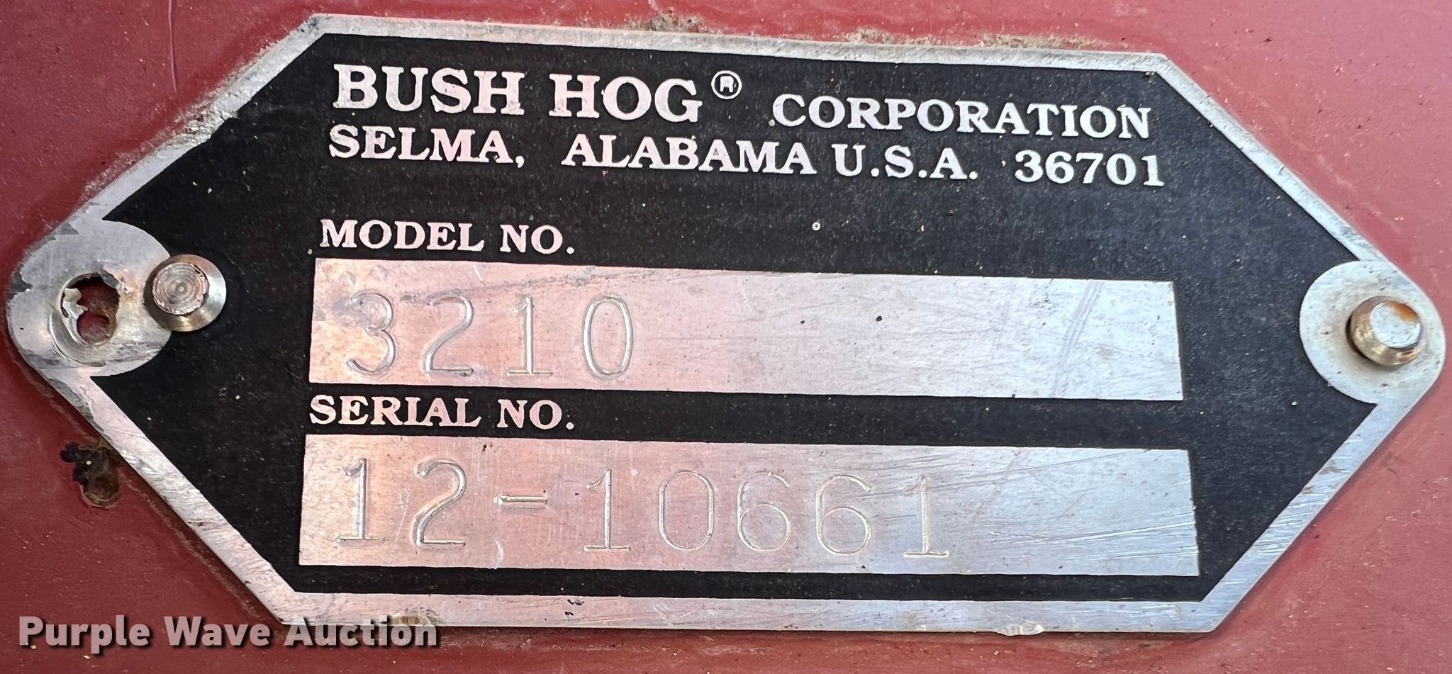 Purple Wave is selling a used Mower, Cutter, Shredder in Missouri. This item is a Bush Hog 3210 rotary mower with the following: Serial: 12-10661