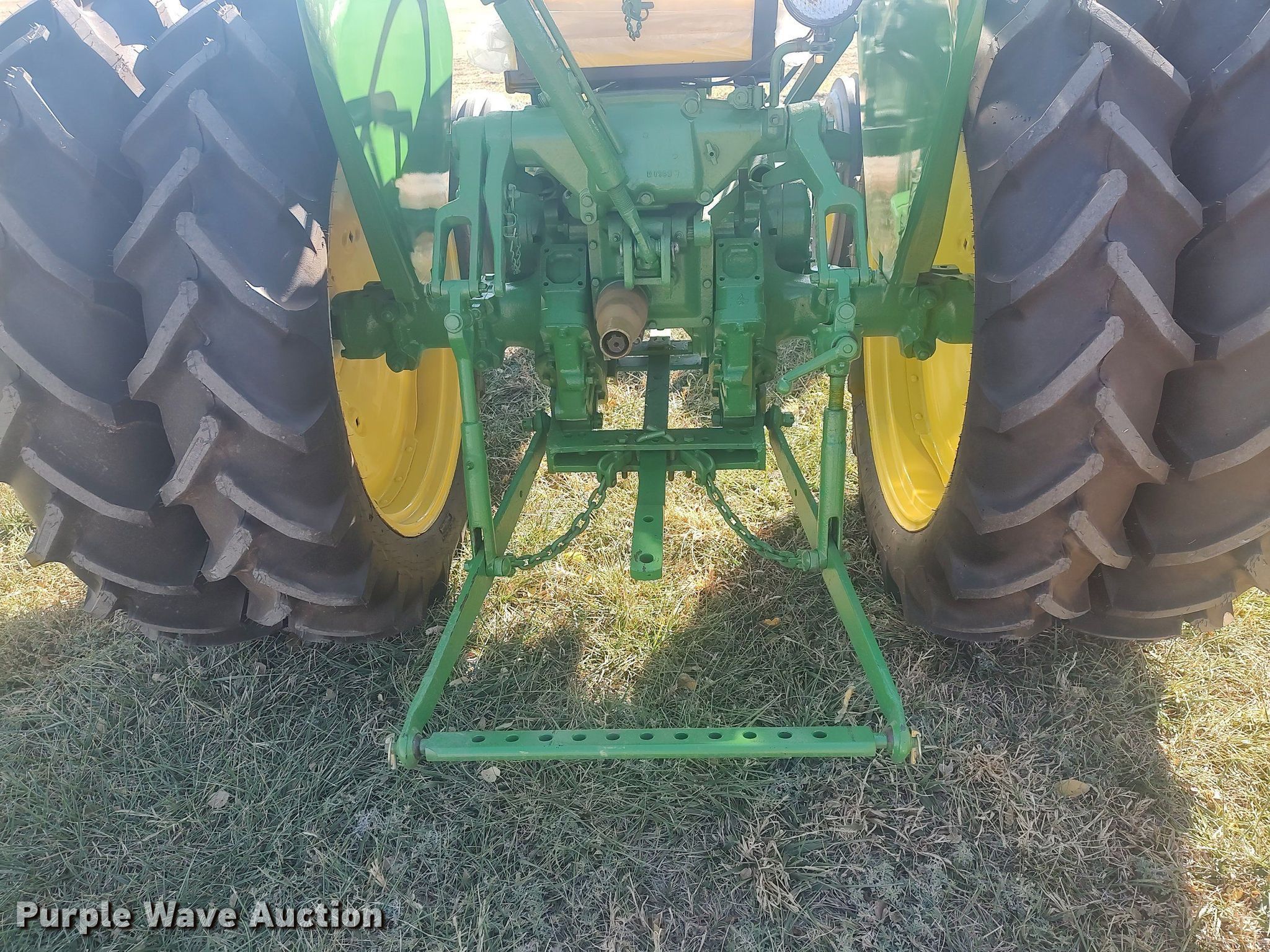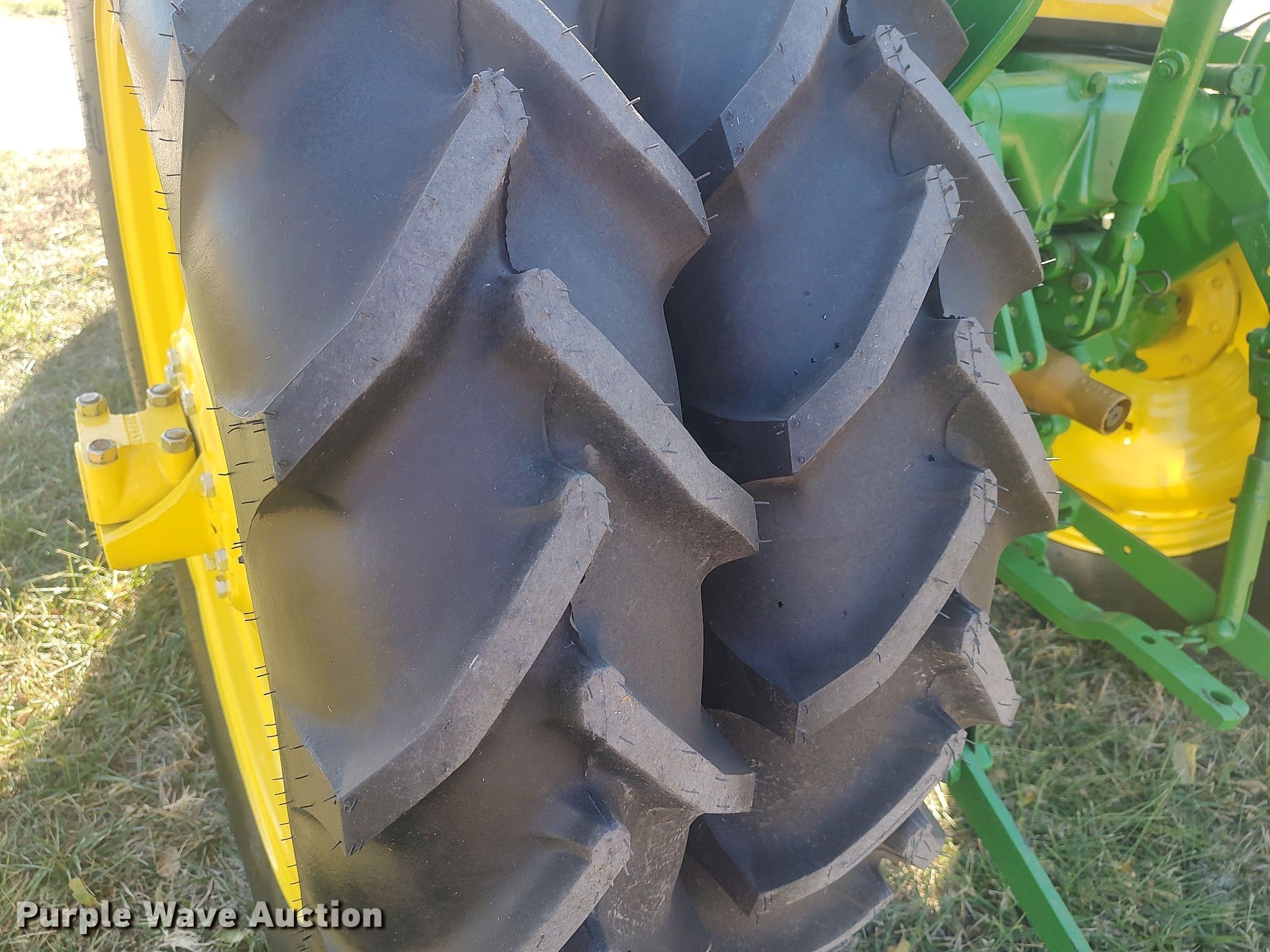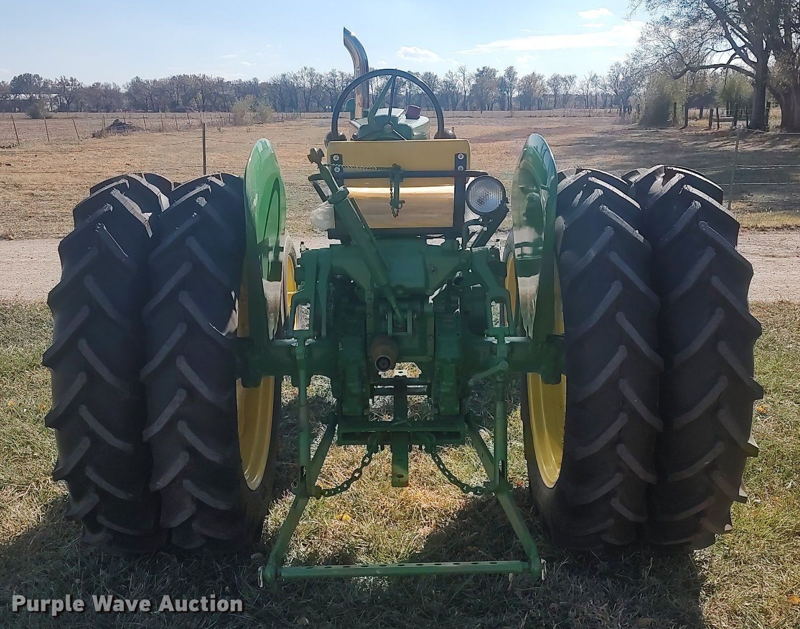 1953 John Deere 40 tractor. Serial: 62163. Engine Cylinders: 2, Fuel type: Gas. Transmission Manual, 4F - 1R. Features PTO: 540, Three point Top link. Tires Front: 7.50-18, Rear: 11.2/10-34, Duals. Notes 6V battery system. Goessel, KS 67053