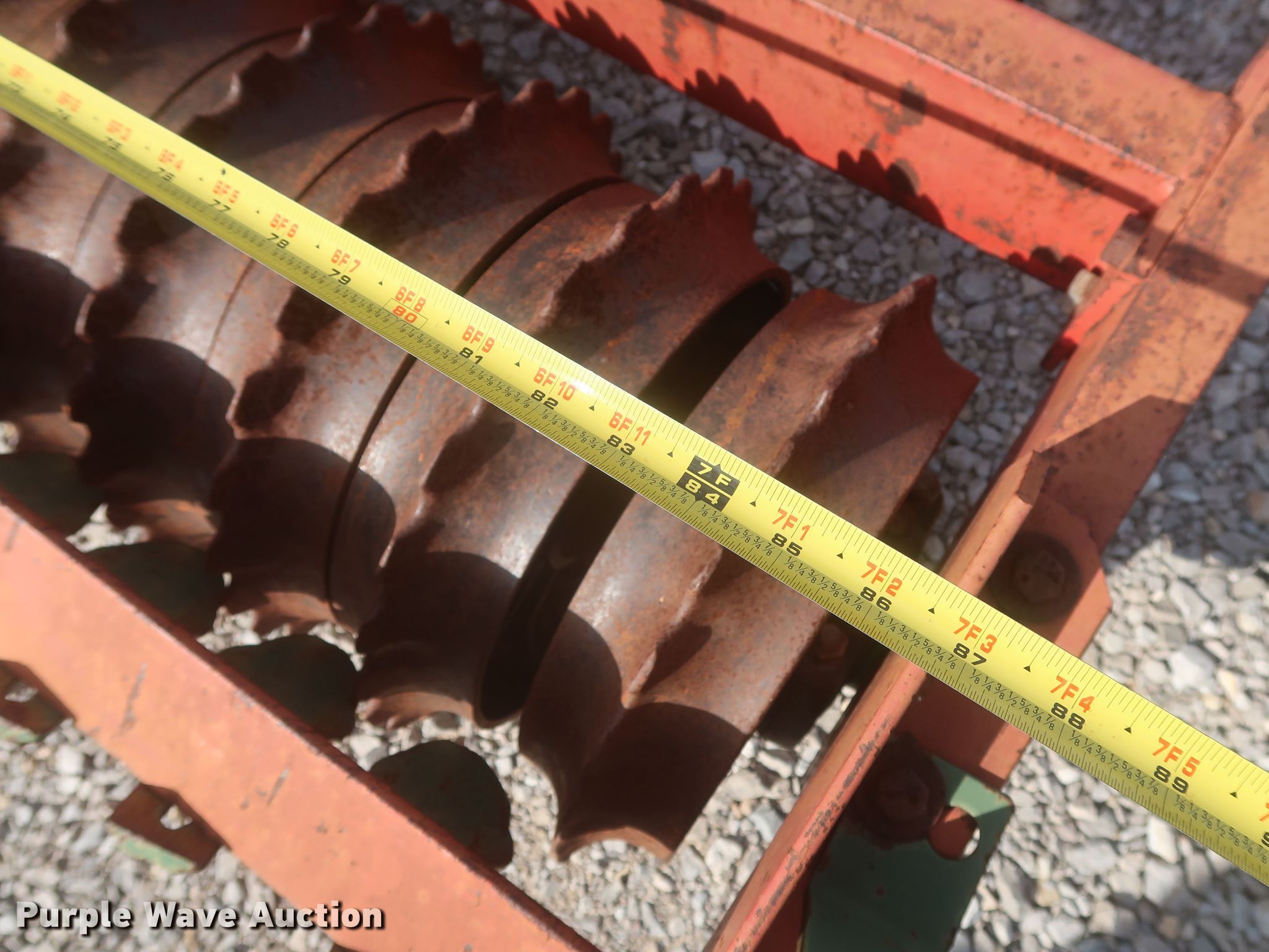 Brillion M-881 cultipacker. Overall width: 7' 4", Serial: 79104. Features Shanks: 12, Packer wheel diameter: 16.25", Operation Hydraulic lift. Tires Tire size: ST205/75R15. Noble Research Institute - Open inspection Dec 21. 2510 Sam Noble Parkway. Ardmore, OK 73401