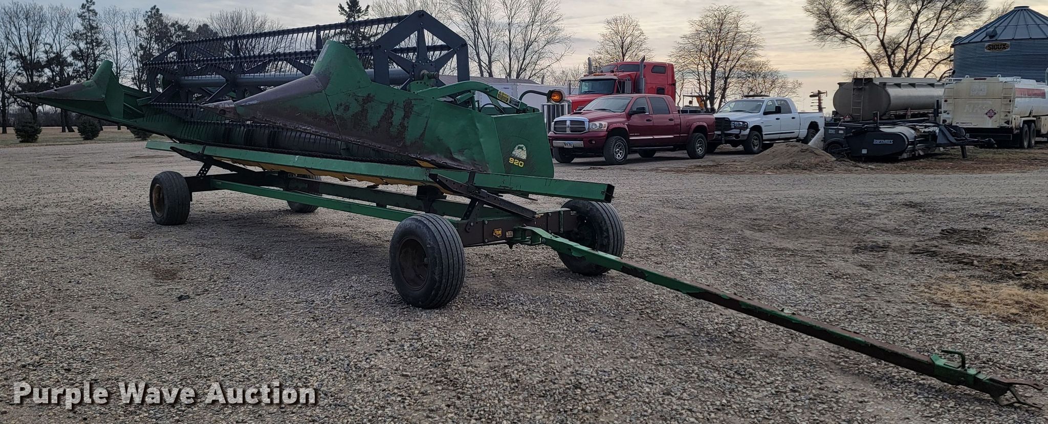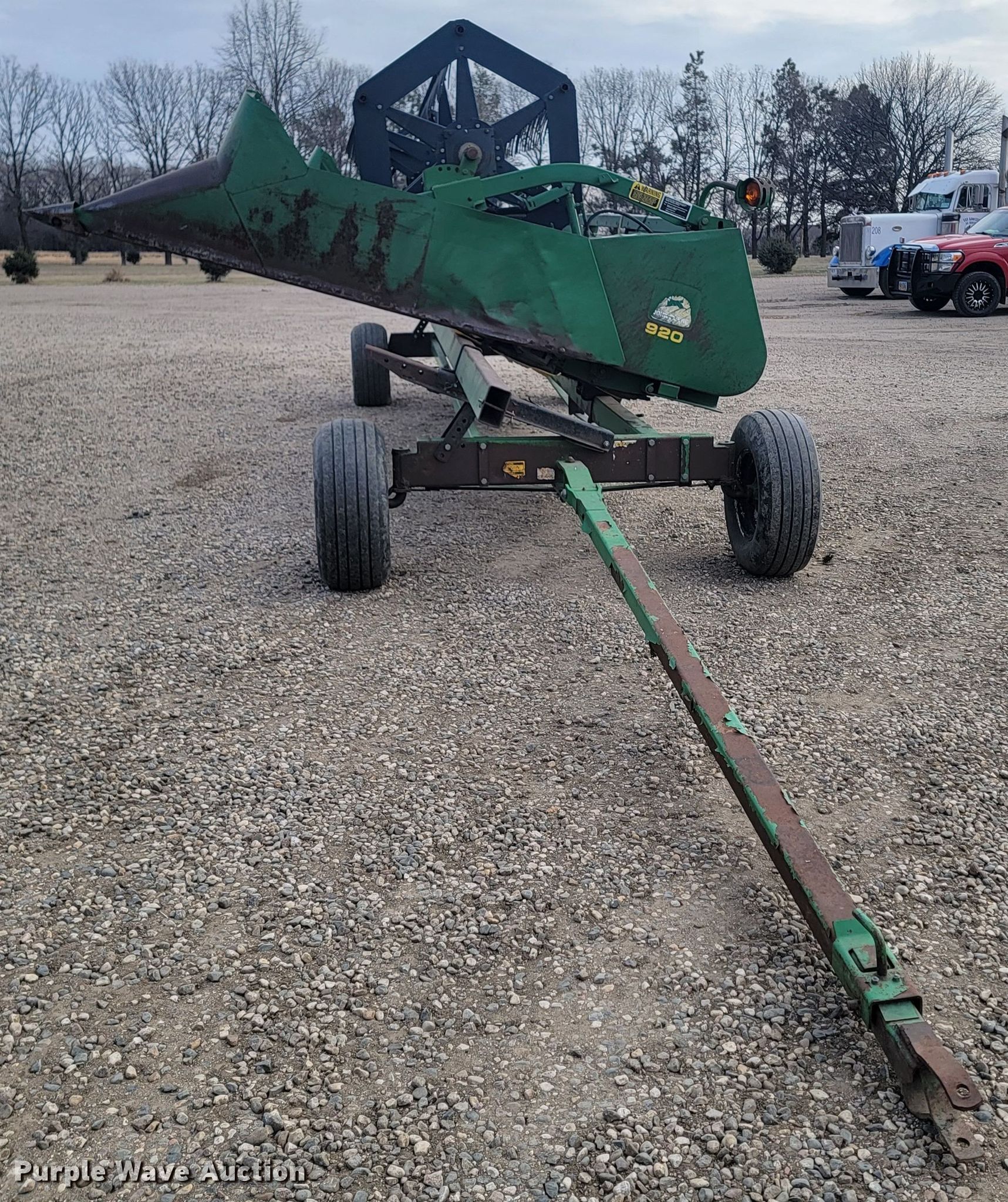 1992 John Deere 920 flex head has sold in Volga, South Dakota for $1265. Item ME9605 sold on December 28th, 2022.