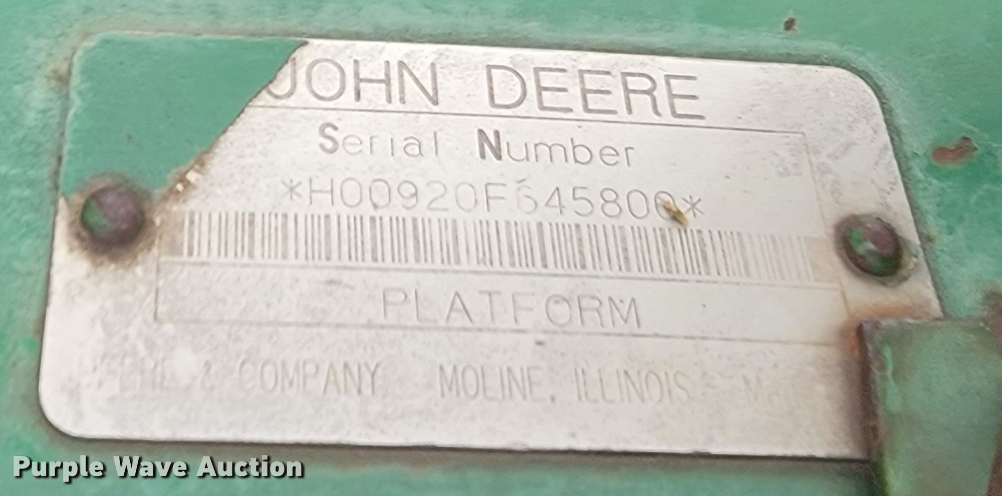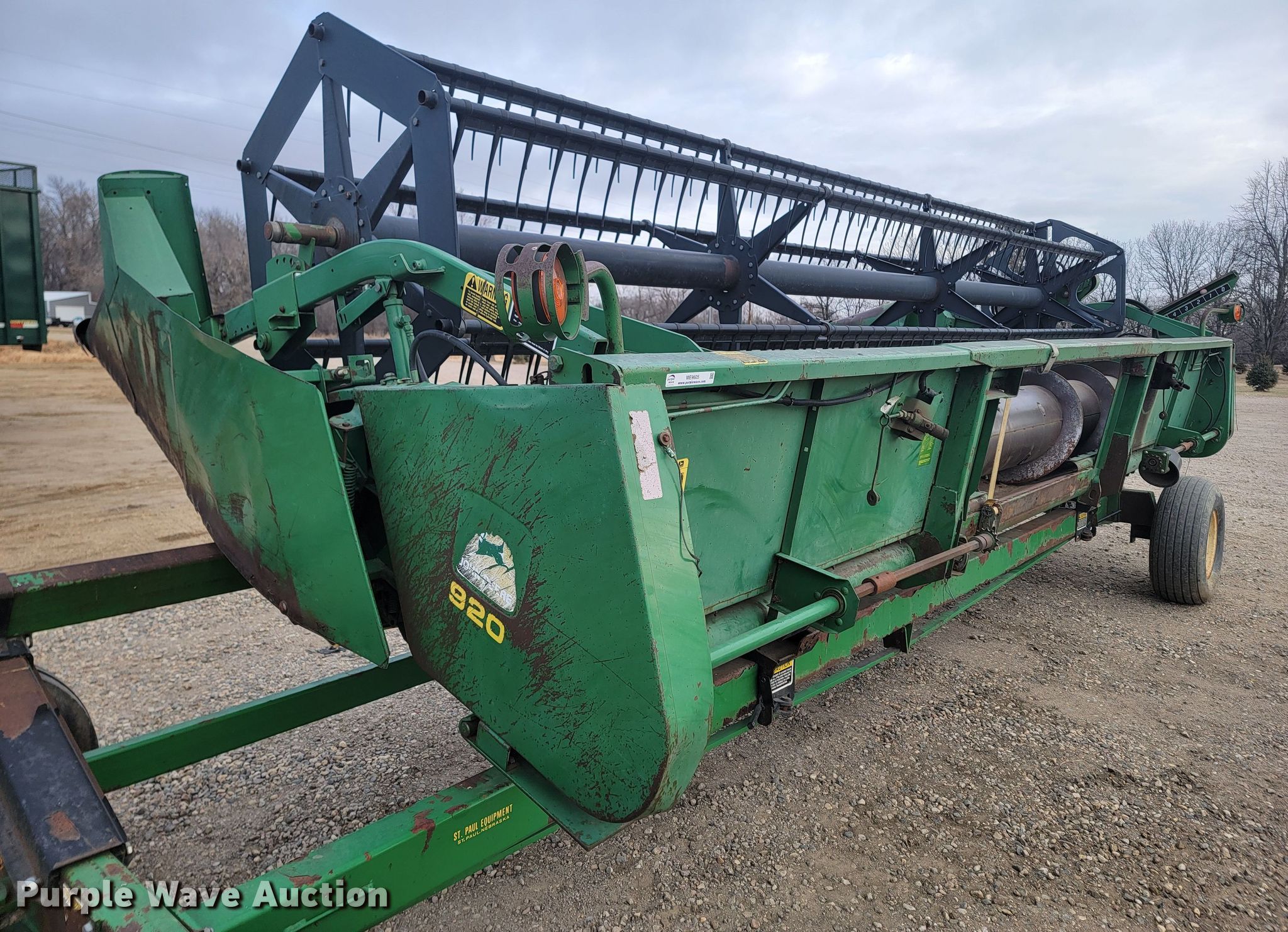 Purple Wave is selling a used Platform or Stripper Head in South Dakota. This item is a 1992 John Deere 920 flex head with the following: Serial: H00920F645800