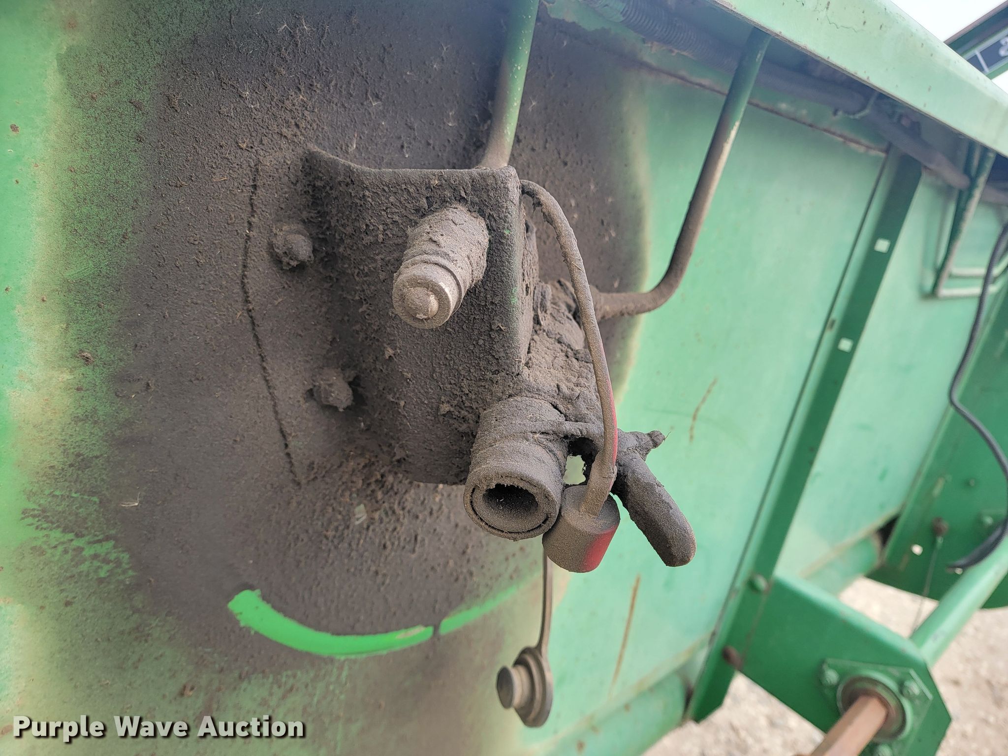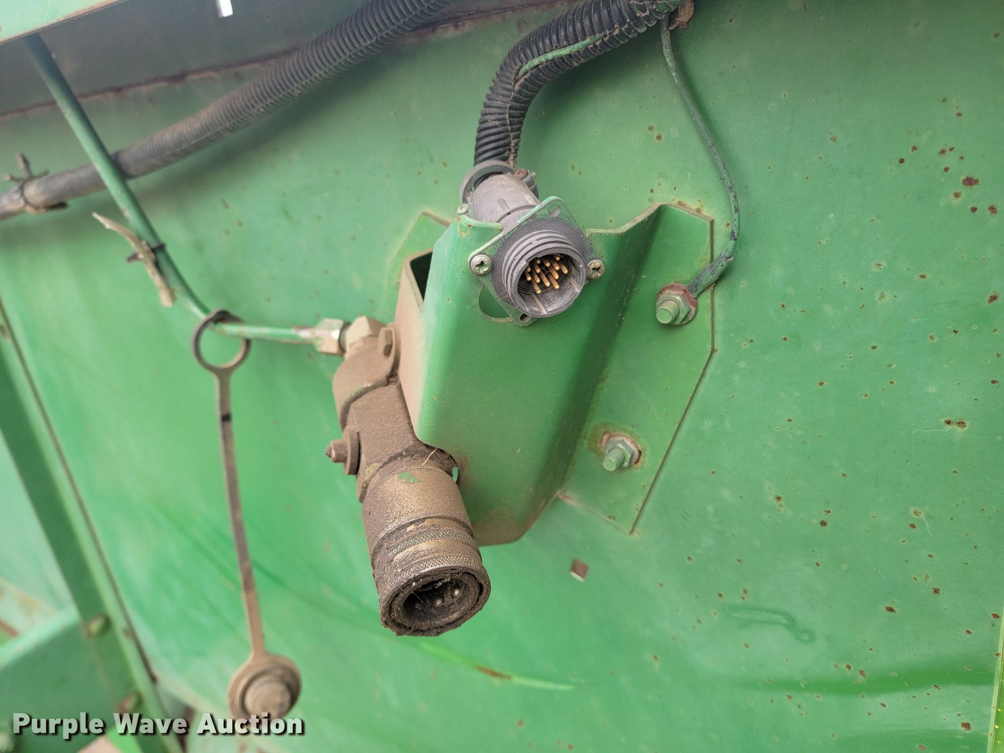 1992 John Deere 920 flex head. Serial: H00920F645800. Features Width: 20', Reel: Finger Hydraulic reel height control, Skid plates: Poly, Drivelines: Dual. Trailer 37' L x 84" W, Head capacity: 30', Ball hitch size: 2", Axles: Tandem, Tire size: 11L-15. Notes Holes in floor. Van Kooten Ag. 46287 209th St. Volga, SD 57071