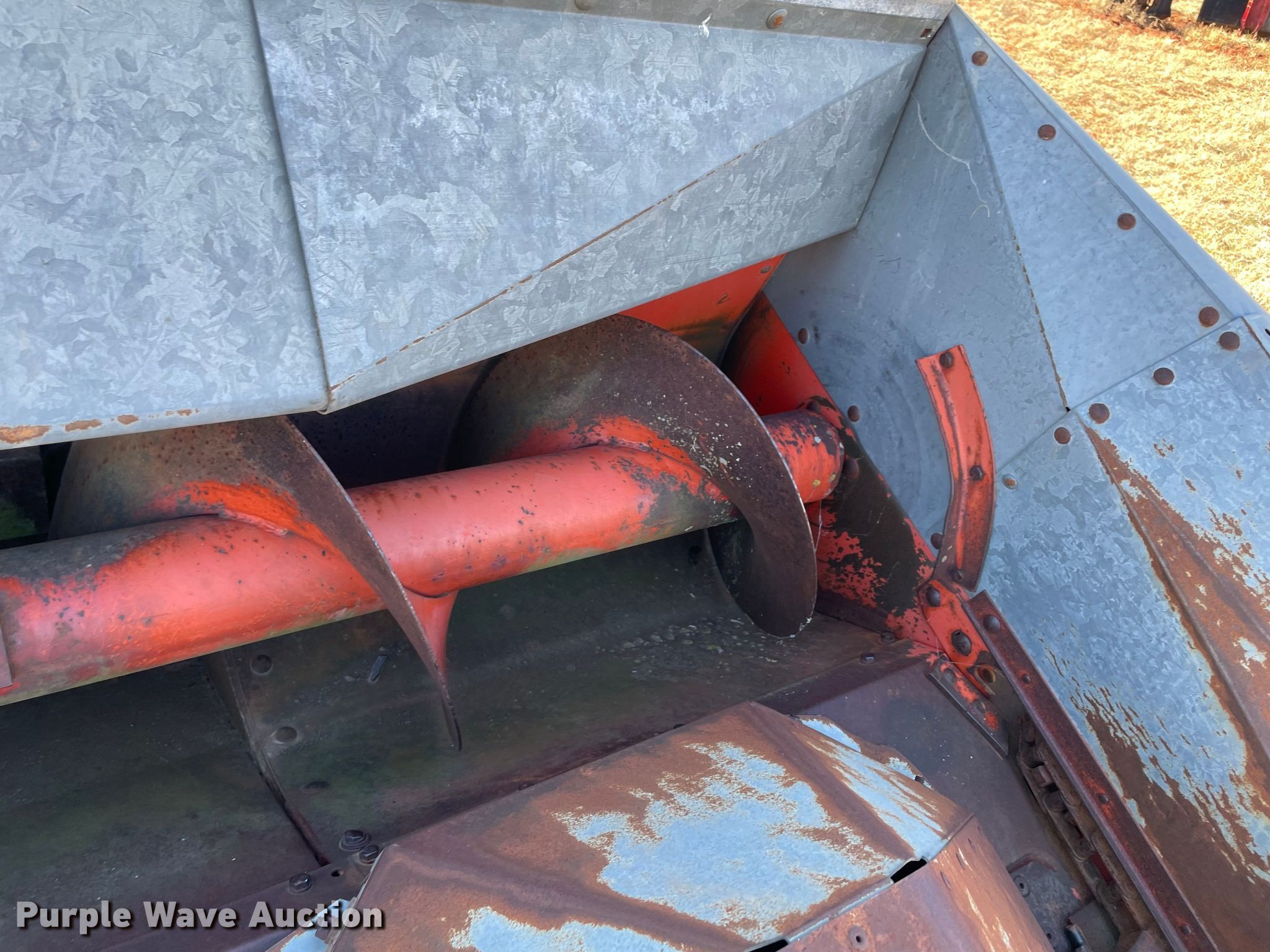 1965 Gleaner C combine. Hours: Unknown, Serial: C-8204. Engine Allis Chalmers C-262, Cylinders: 6, Fuel type: Diesel. Transmission Manual. Features Unloading auger length: 10', Corn head Rows: 4, Row spacing: 30". Tires Front: 18.4-26, Rear: 7.50-16. Notes Non-operational unit. Double E Farms. Wellston, OK 74881