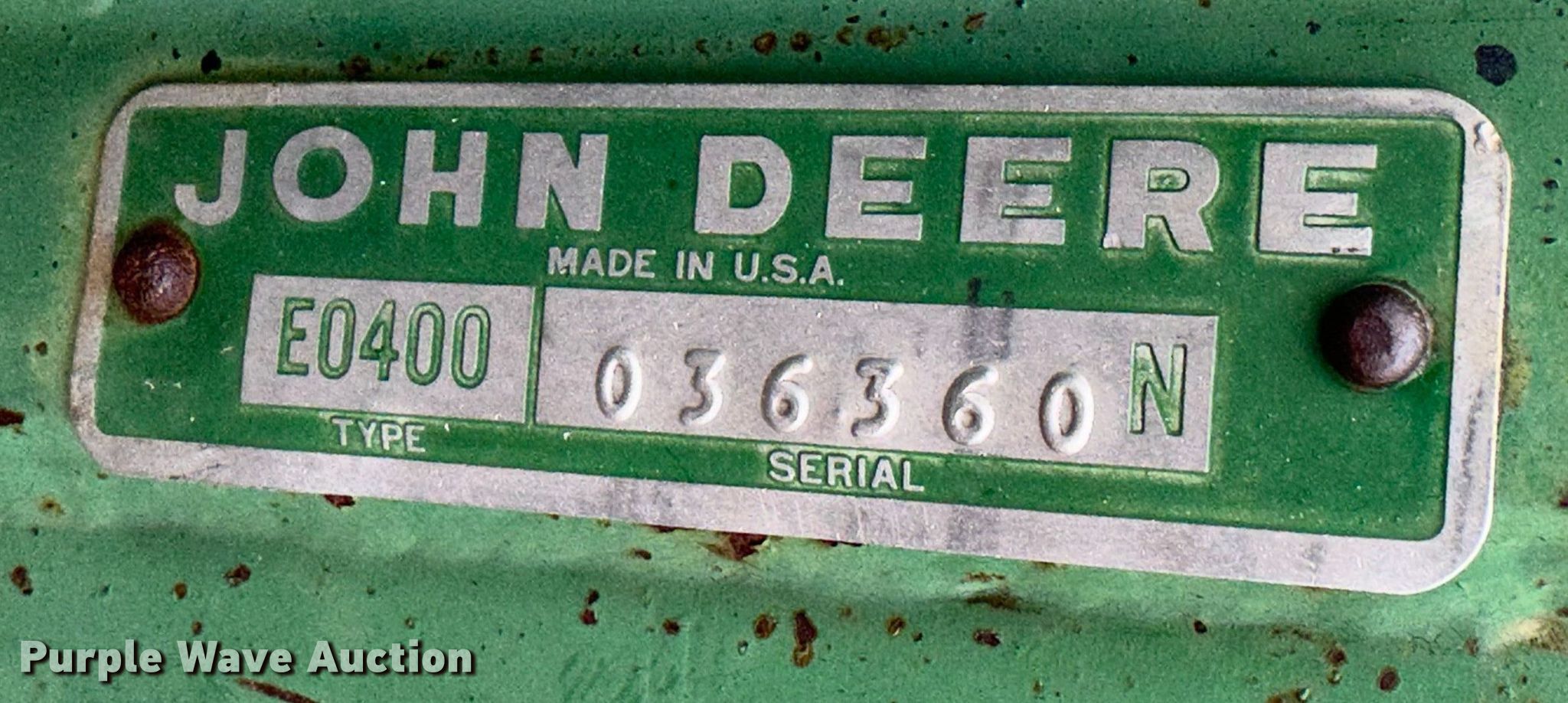 Purple Wave is selling a used Rotary Tillage in Kansas. This item is a John Deere 400 rotary hoe with the following: Overall width: 32', Serial: 036360N